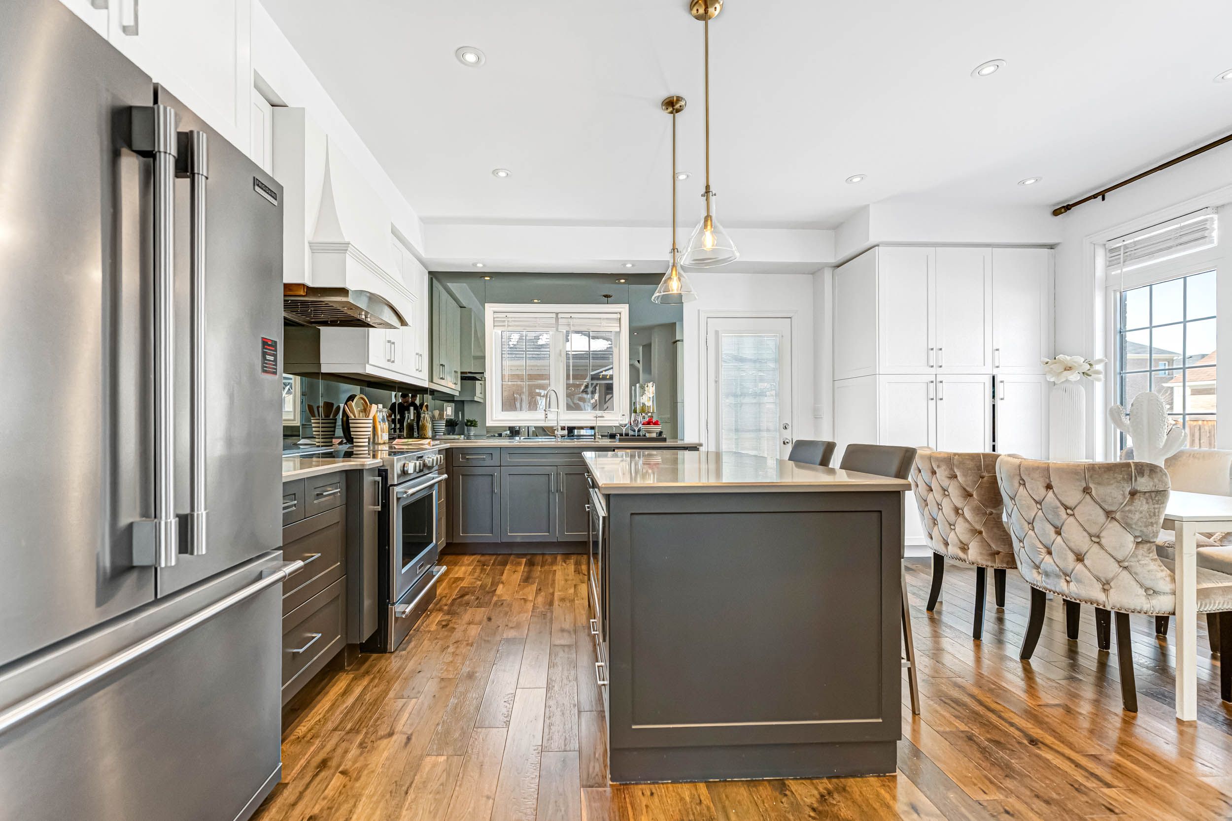• Open-concept kitchen with stainless steel appliances and easy outdoor access.
