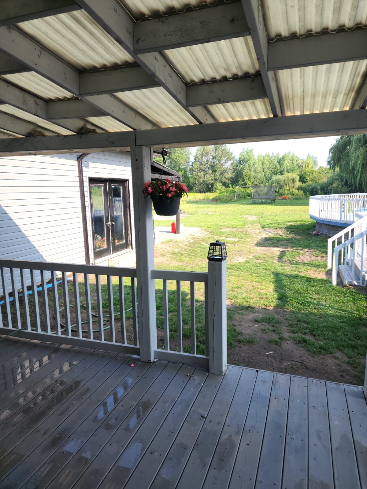 • Outdoor features include a deck, above ground pool, and covered patio.