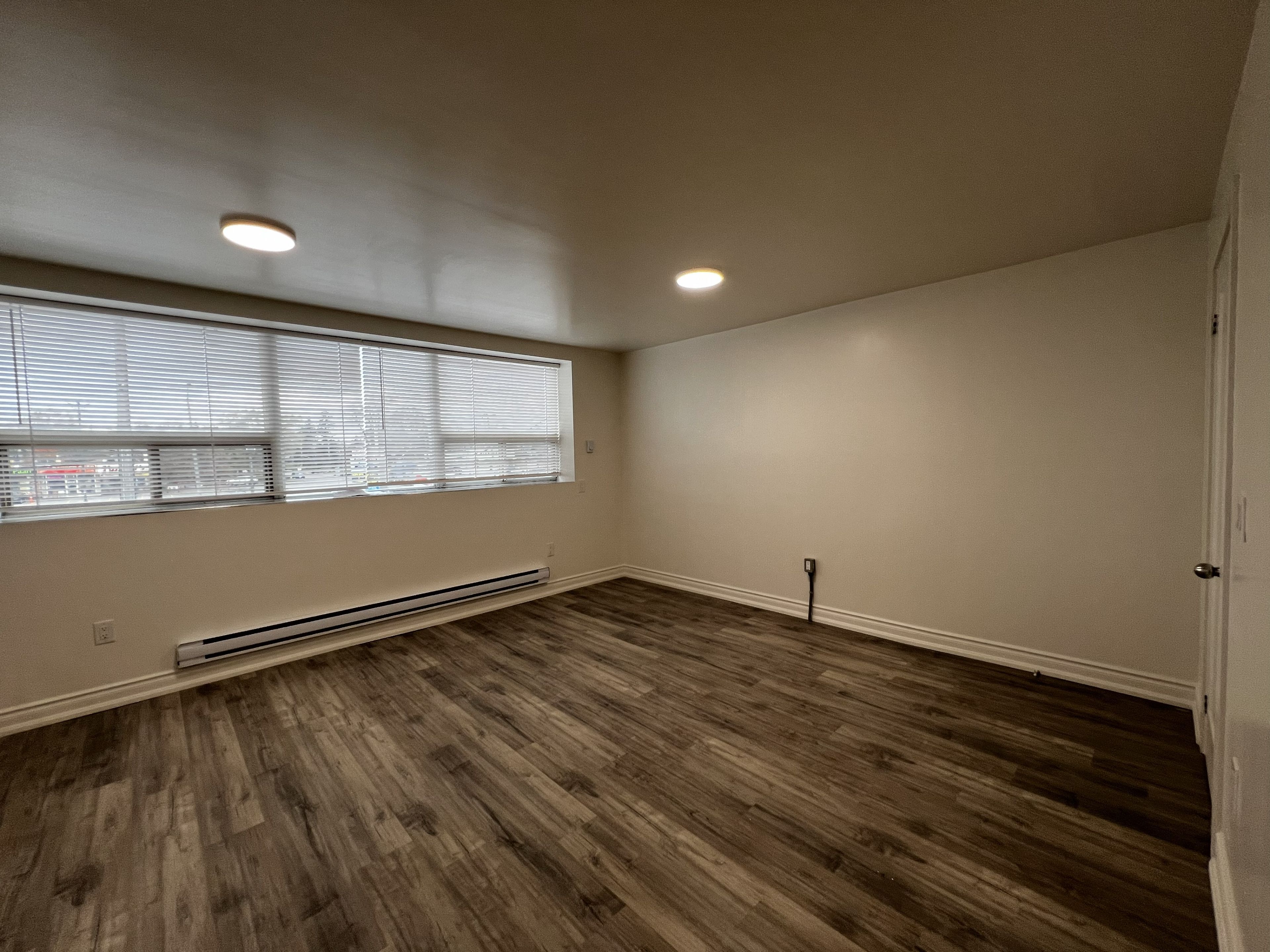 • Completely renovated bachelor apartment above a store, ready for move-in.