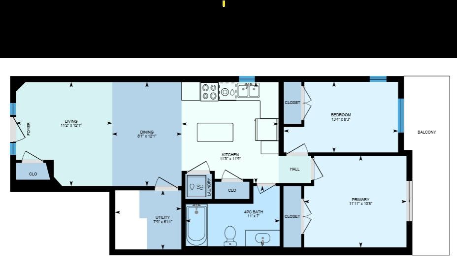 • Spacious open-concept layout with 2 bedrooms and 1 bath.
