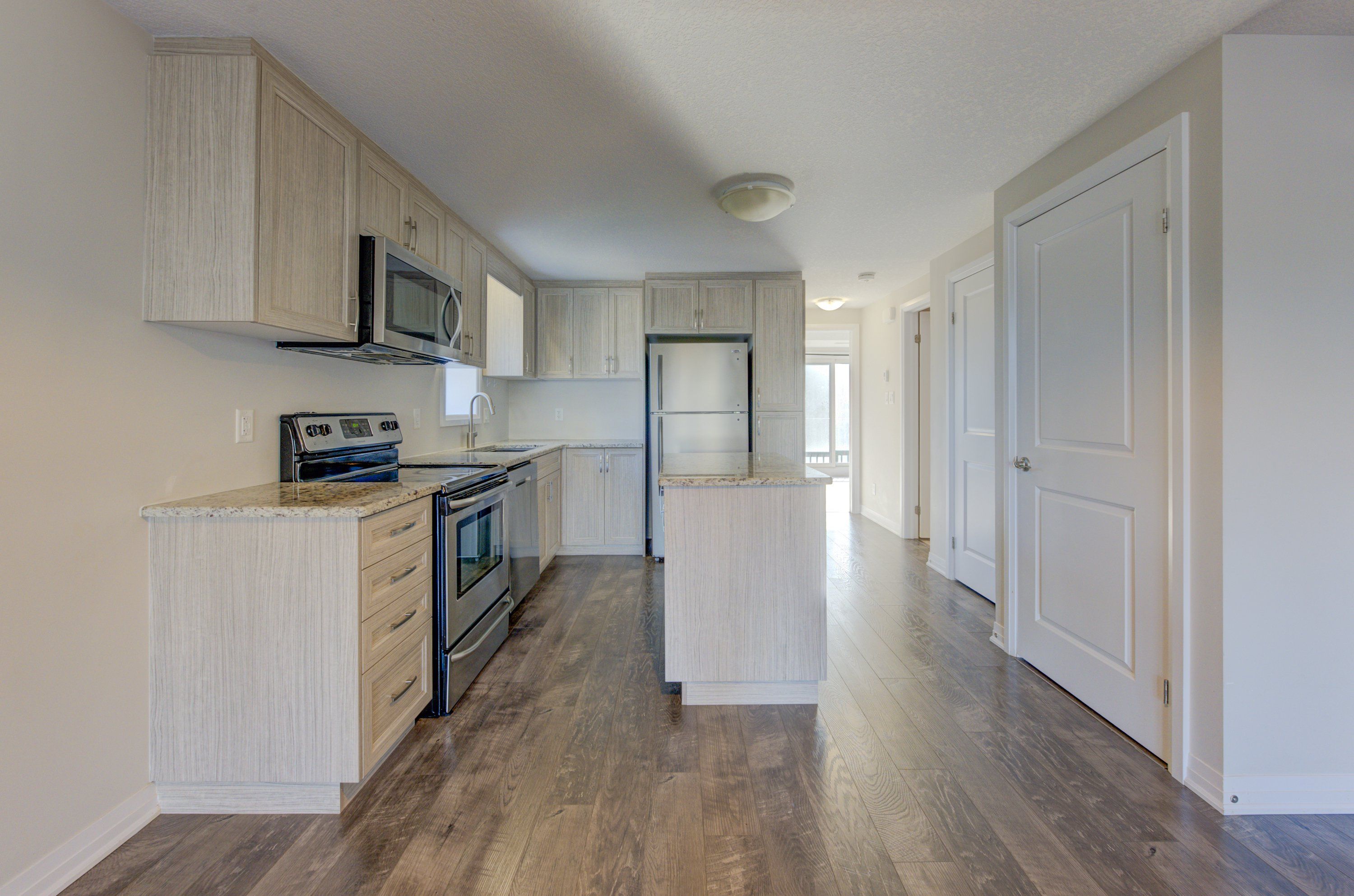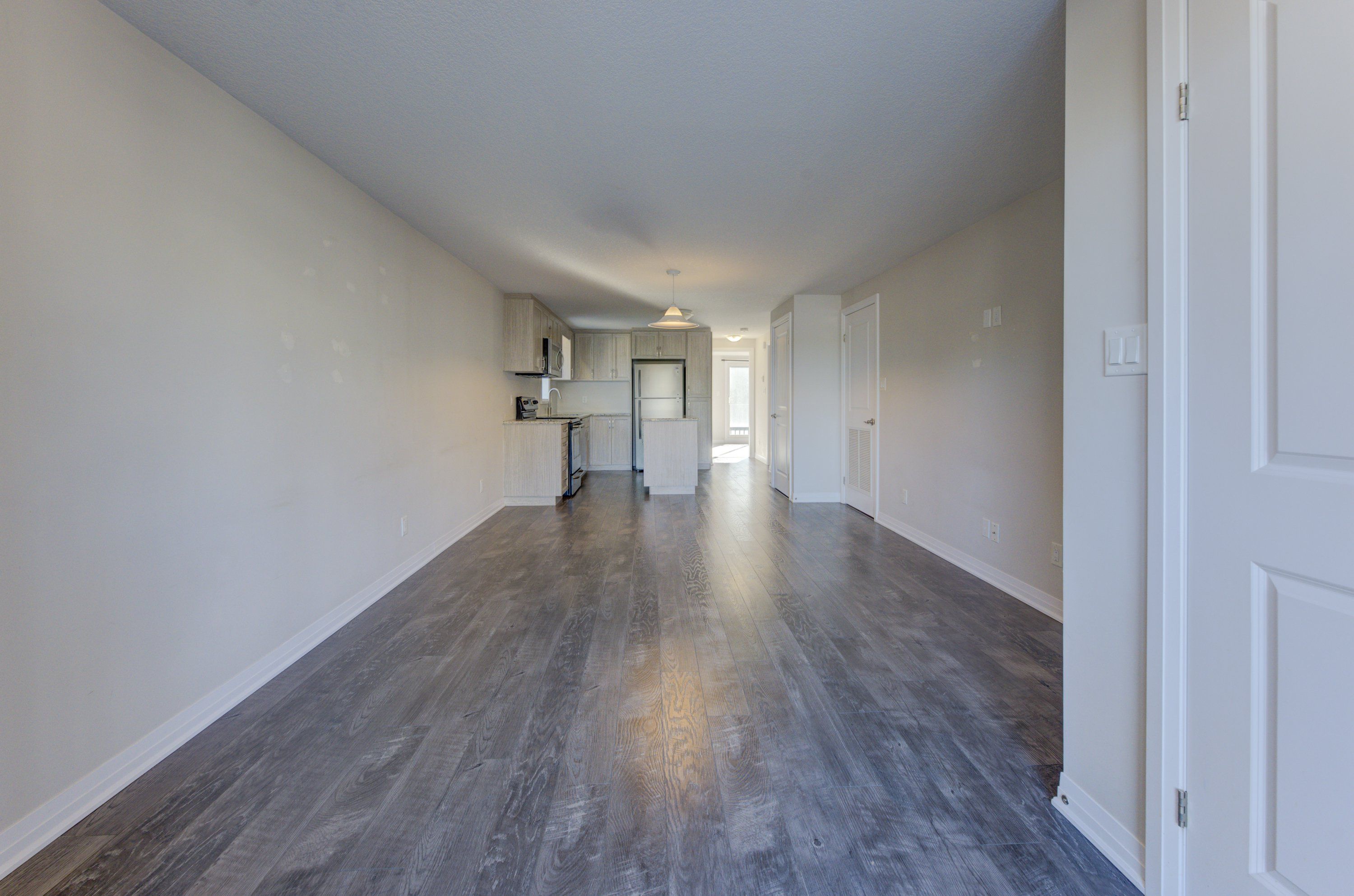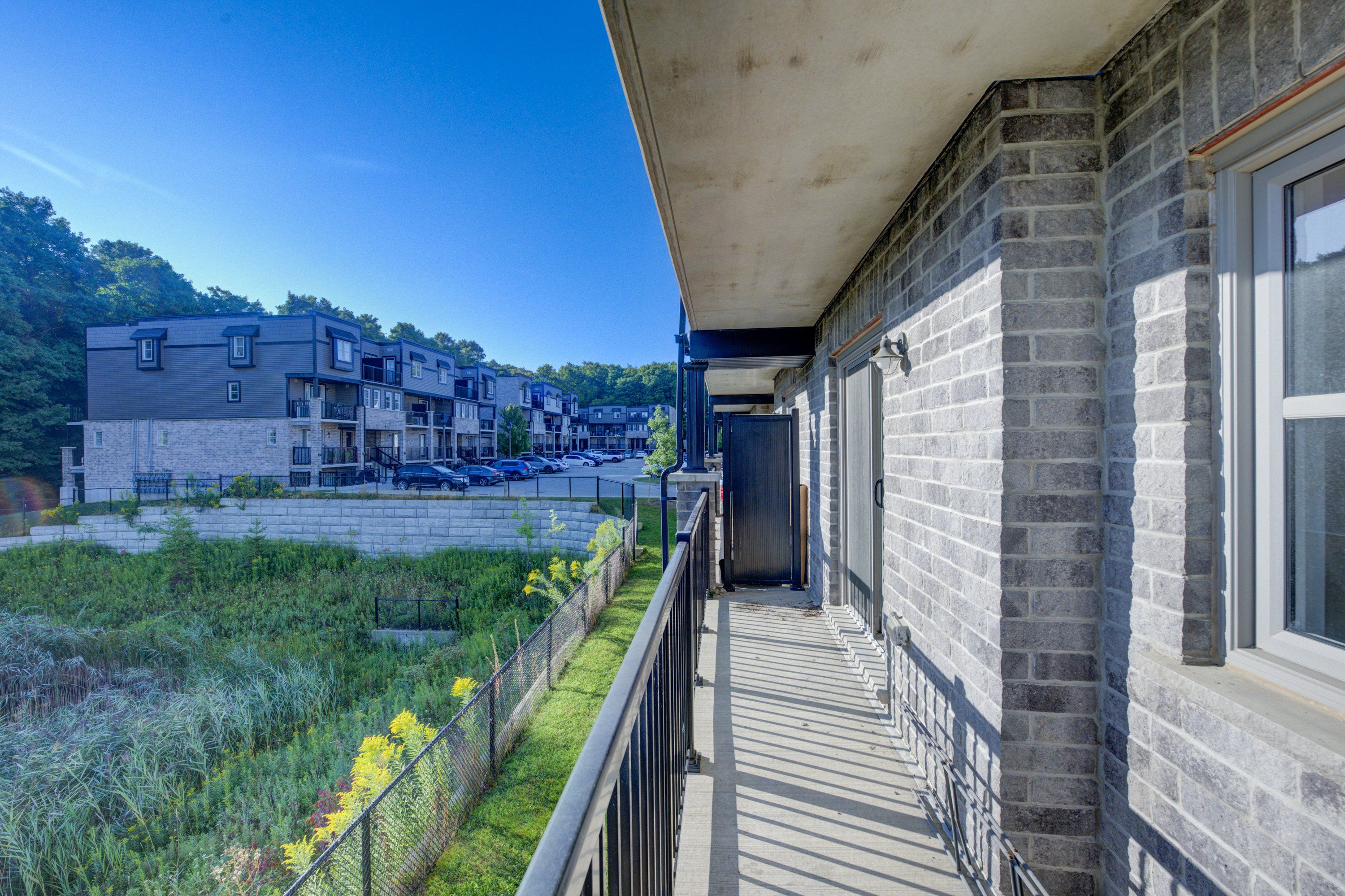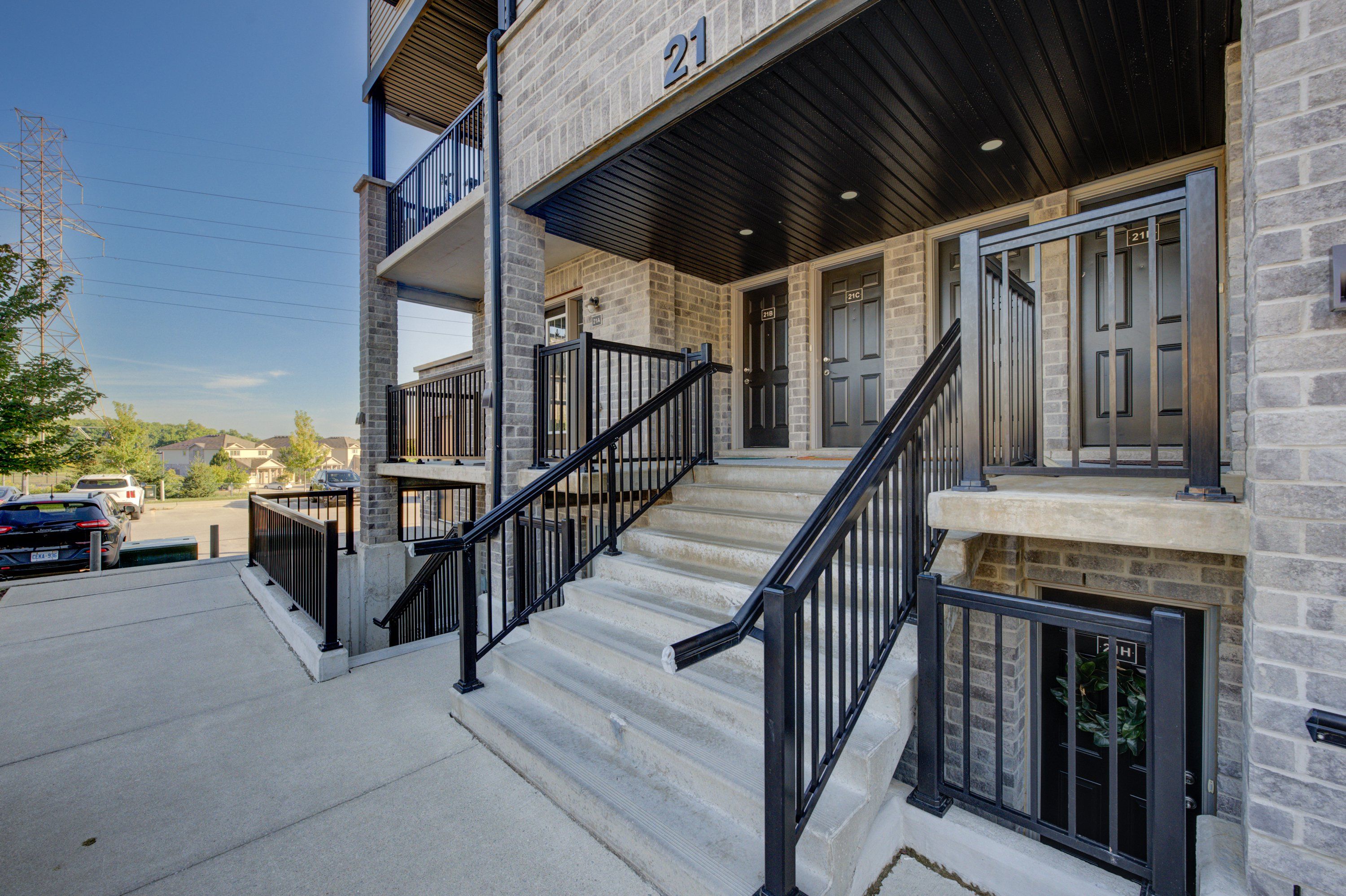 Welcome to this bright and inviting urban townhouse condo! This desirable "brockton" model is a bungalow-style end unit, offering added privacy along with a spacious, open-concept layout. Featuring 2 bedrooms, 1 bath, ensuite laundry, a welcoming front patio, and a private balcony overlooking peaceful greenspace, this home blends comfort with convenience. Thoughtful upgrades include granite countertops, a functional kitchen island, stainless steel appliances, and the added use of a washer, dryer, and water softener. Situated in a well-maintained modern complex with a playground, and ideally located close to shopping, highway access, walking trails, and public transit. Available for june 1st occupancy in a smoke-free building.
