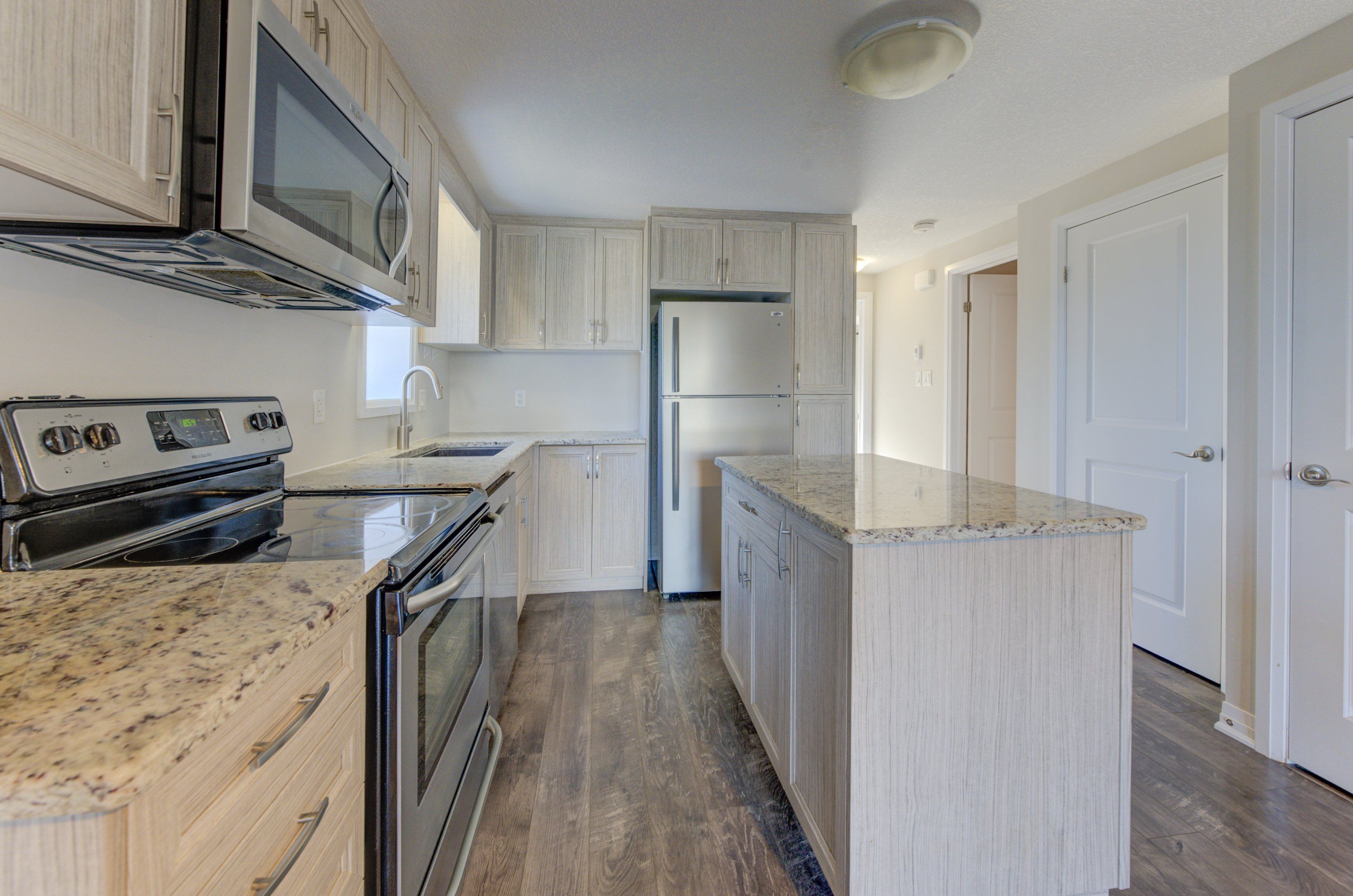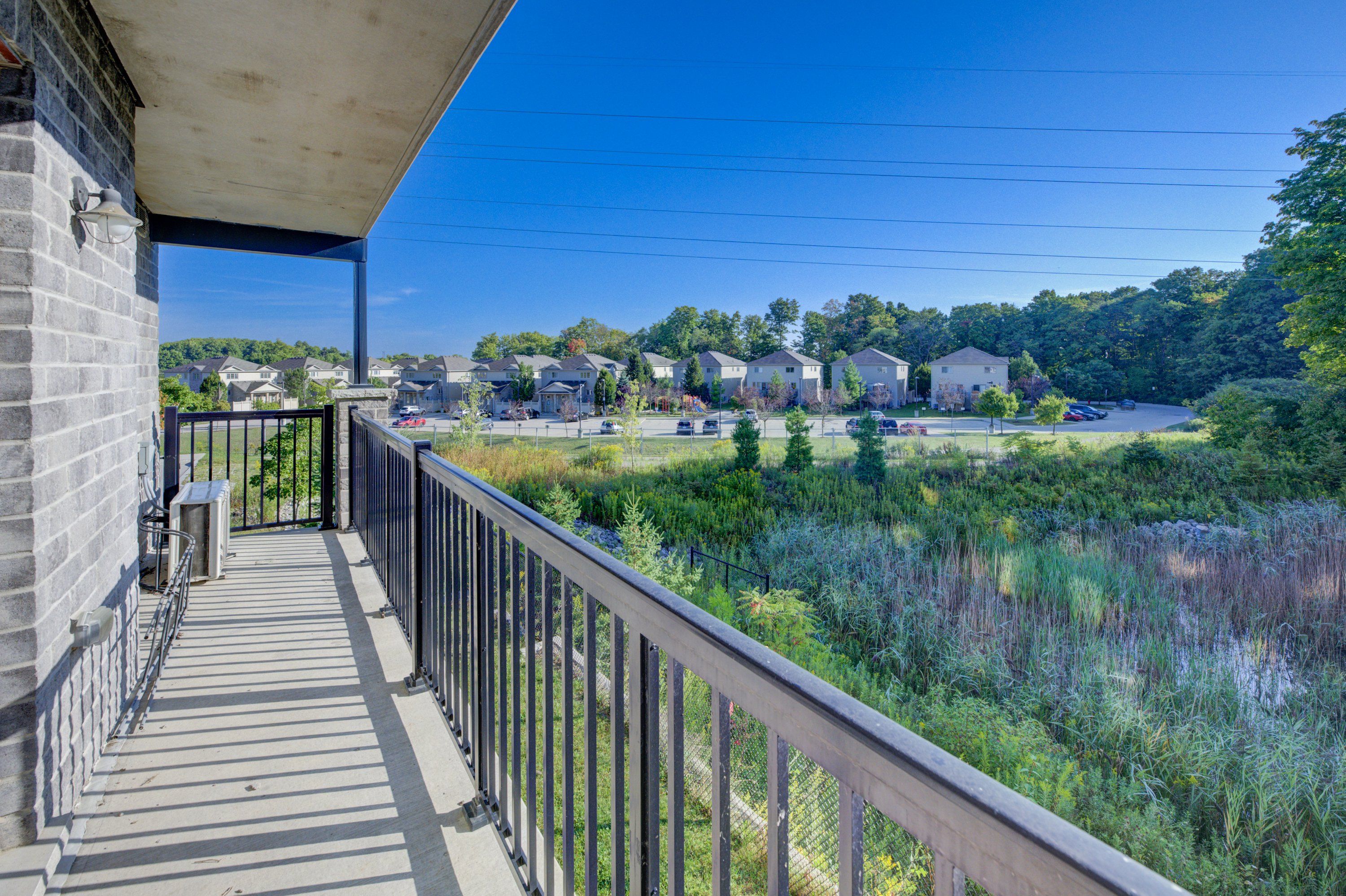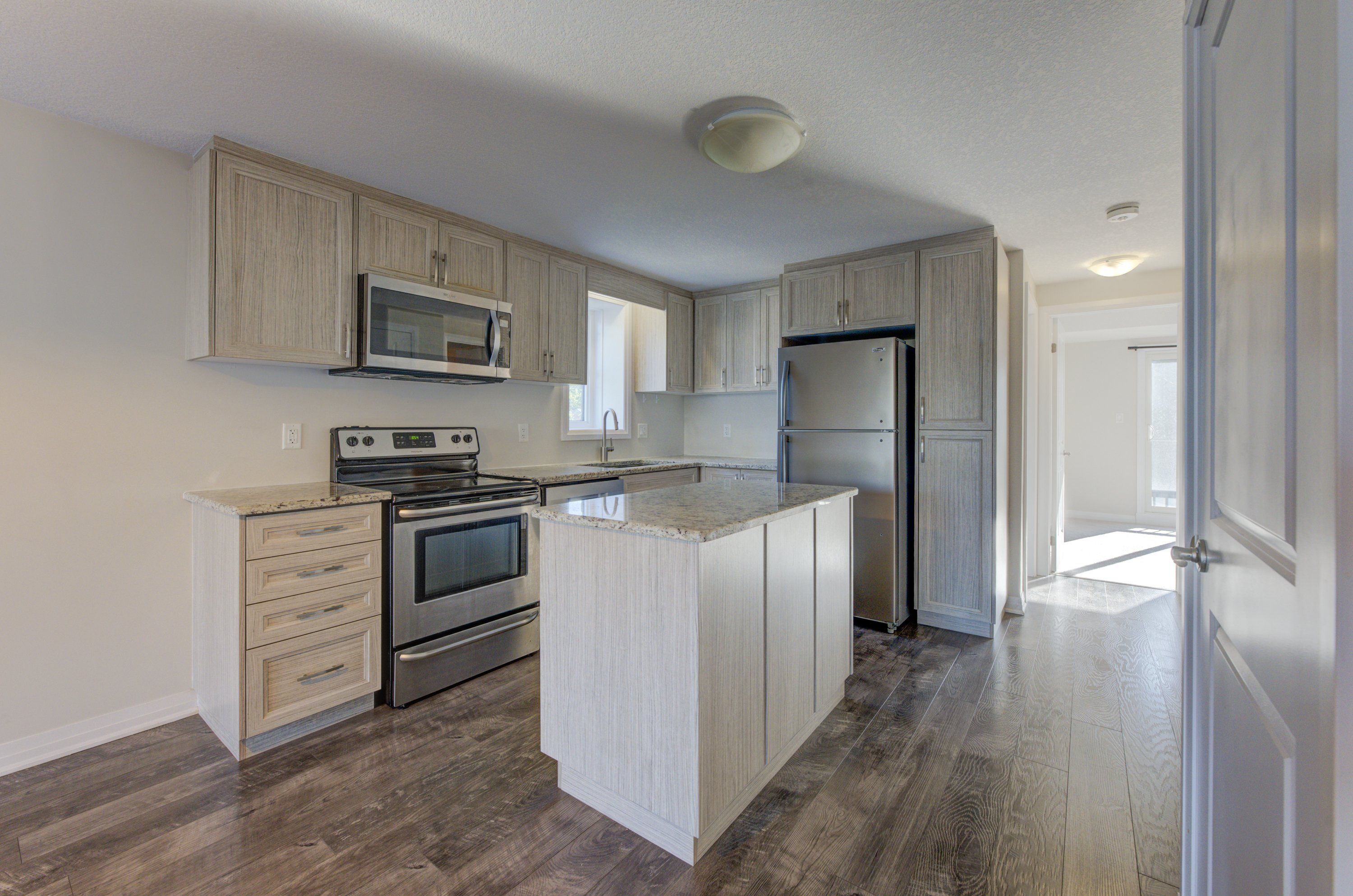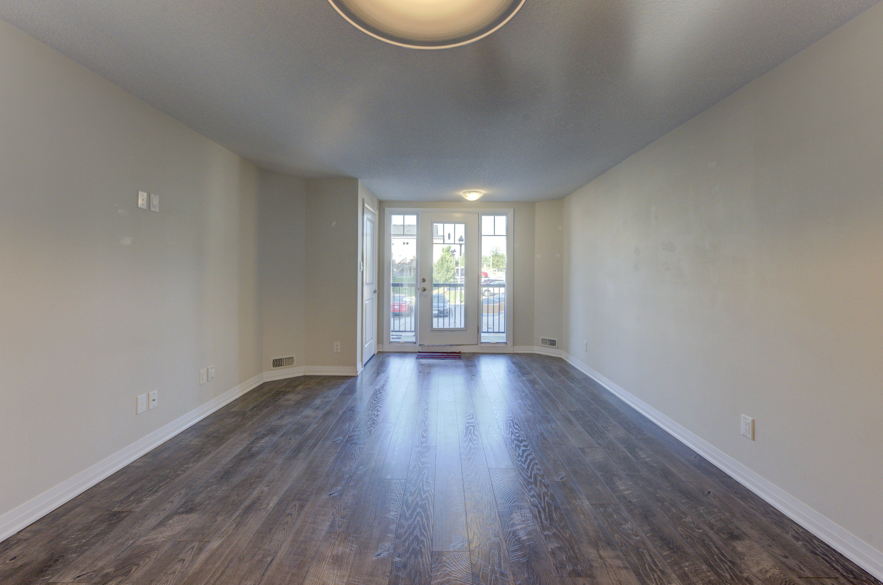 Welcome to this bright and inviting urban townhouse condo! This desirable "brockton" model is a bungalow-style end unit, offering added privacy along with a spacious, open-concept layout. Featuring 2 bedrooms, 1 bath, ensuite laundry, a welcoming front patio, and a private balcony overlooking peaceful greenspace, this home blends comfort with convenience. Thoughtful upgrades include granite countertops, a functional kitchen island, stainless steel appliances, and the added use of a washer, dryer, and water softener. Situated in a well-maintained modern complex with a playground, and ideally located close to shopping, highway access, walking trails, and public transit. Available for june 1st occupancy in a smoke-free building.