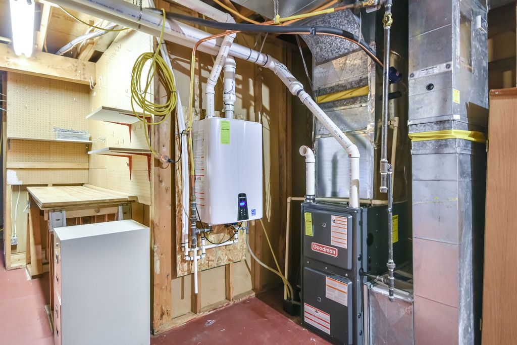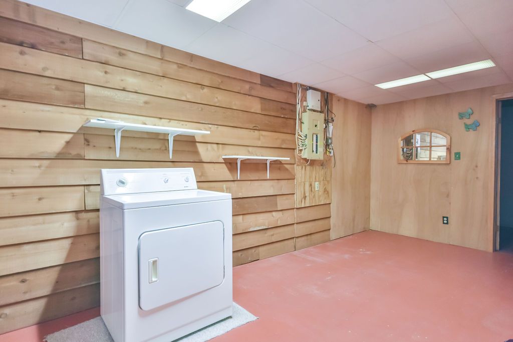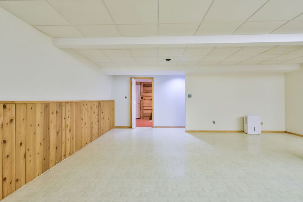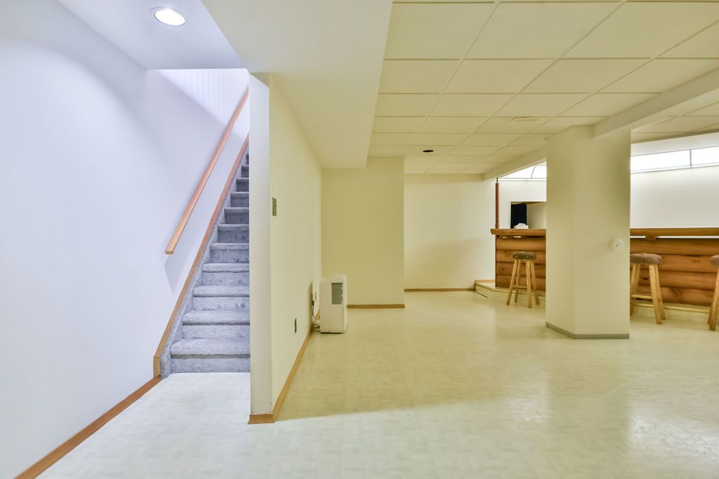 • Versatile basement setup ideal for an in-law suite with a finished rec room.