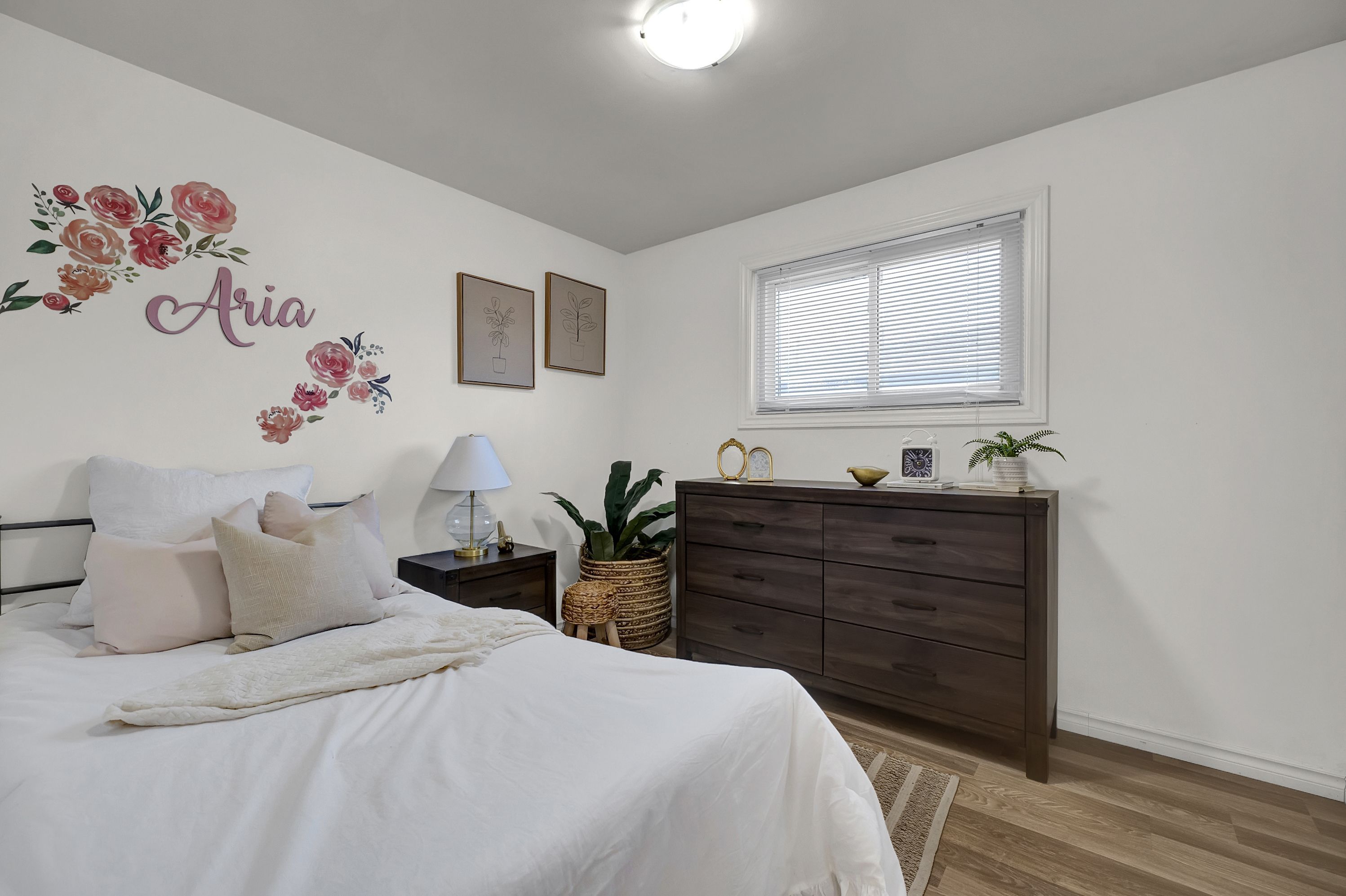 • Spacious bedrooms upstairs with updated laminate flooring and renovated bathroom.