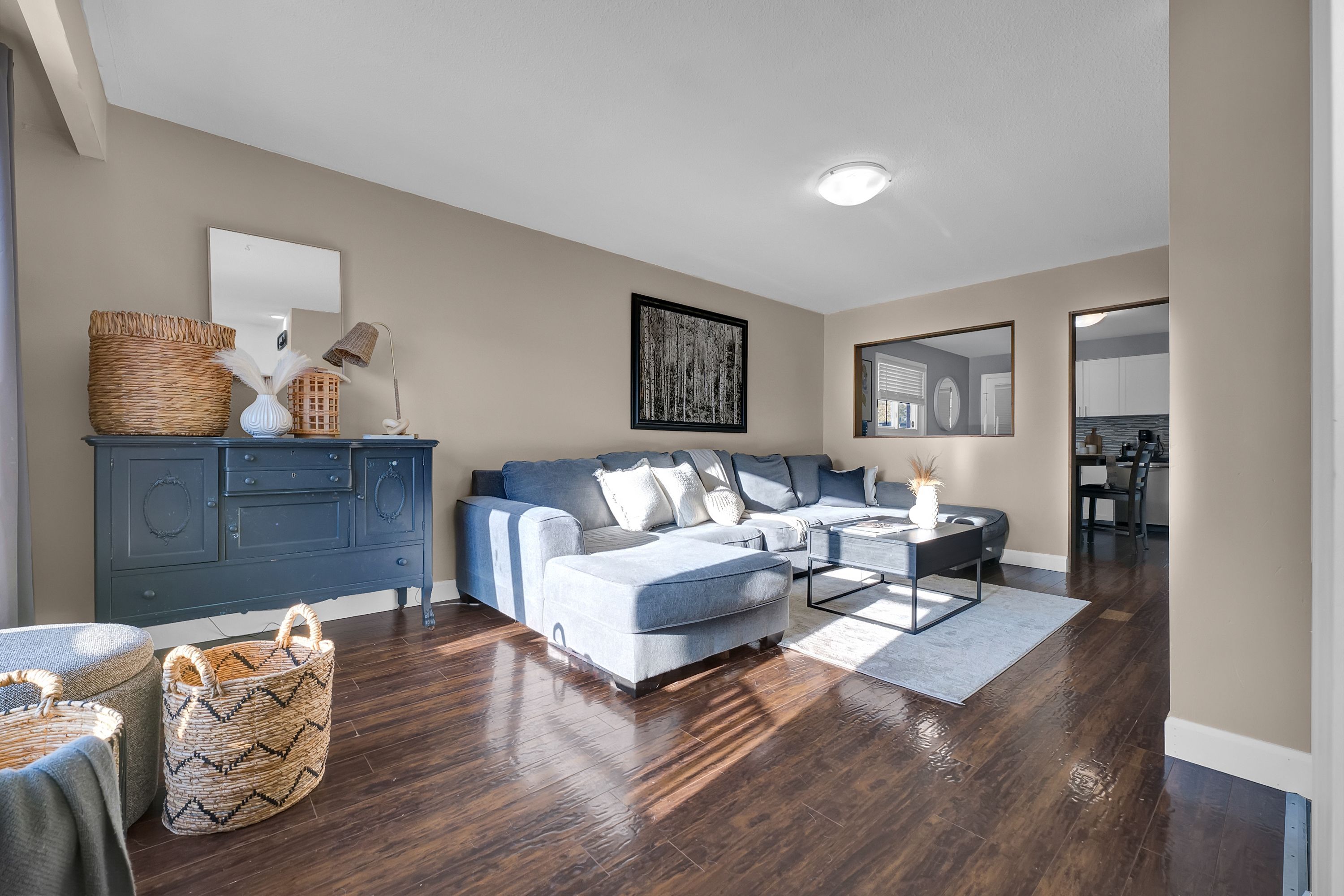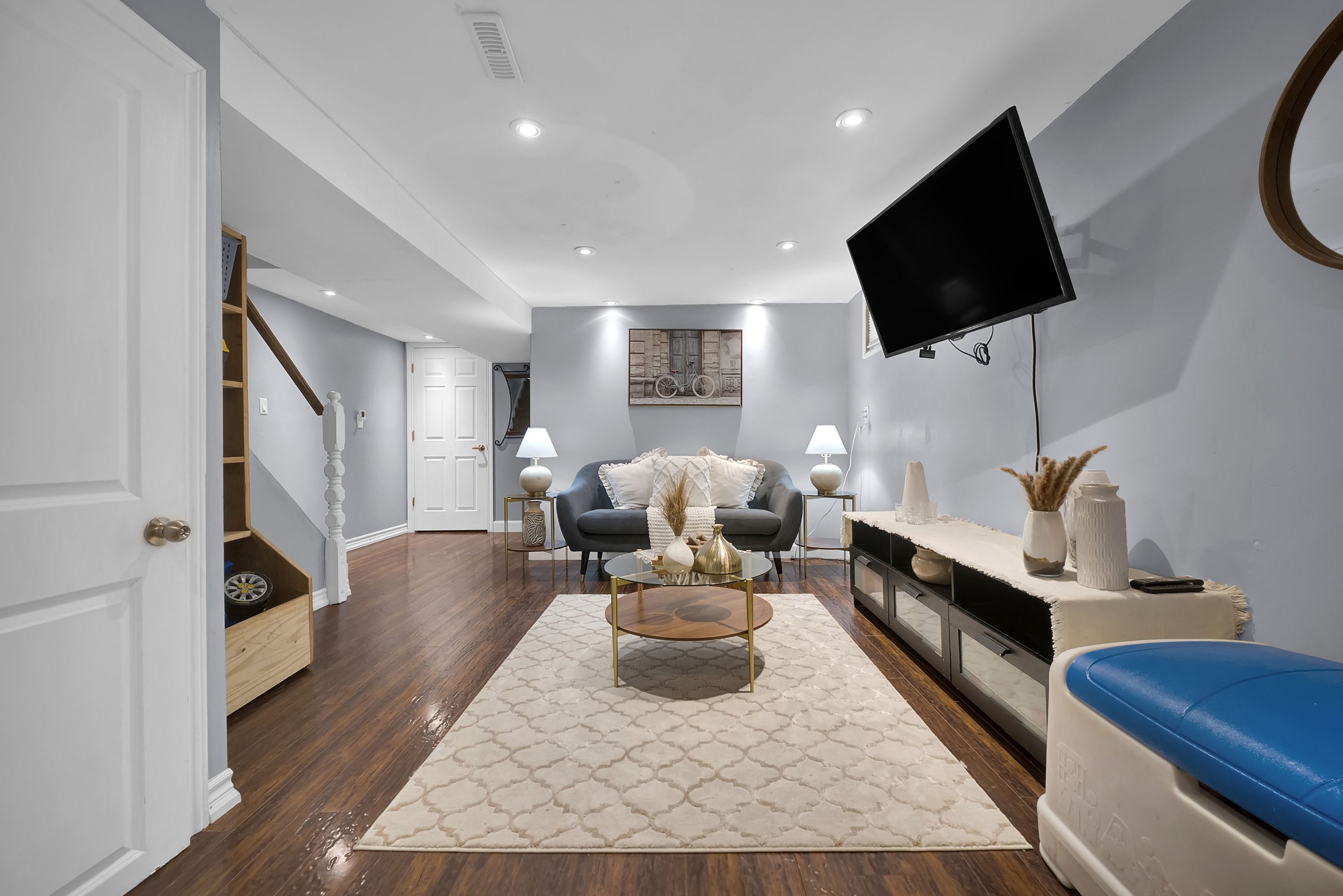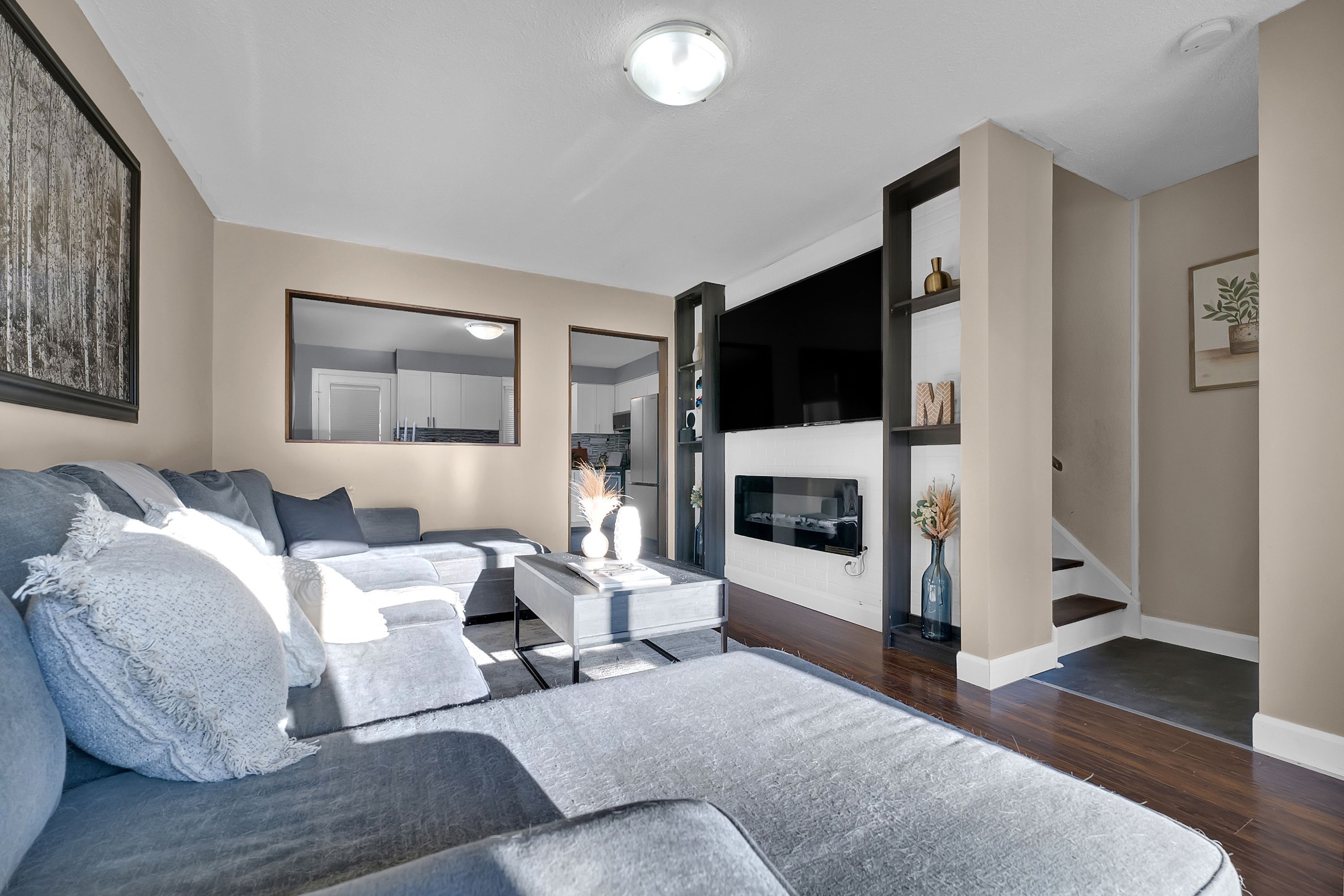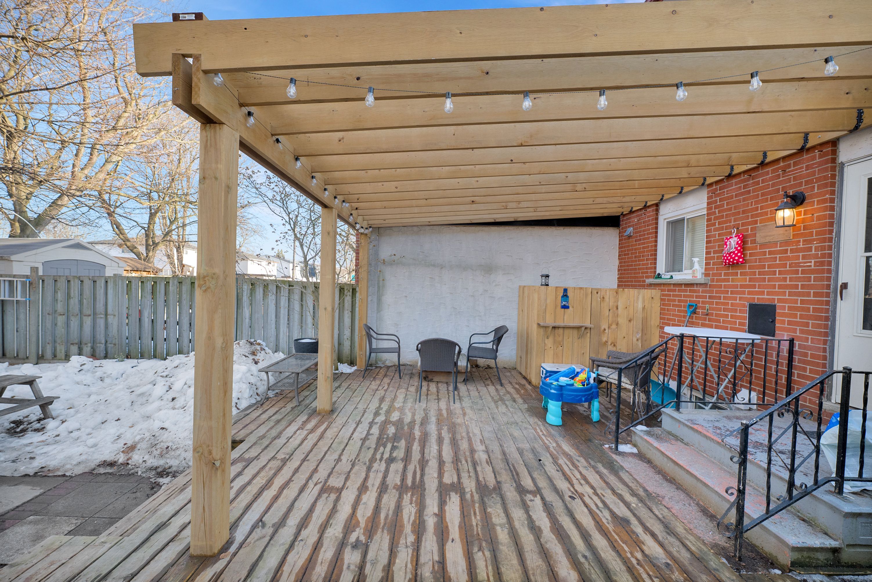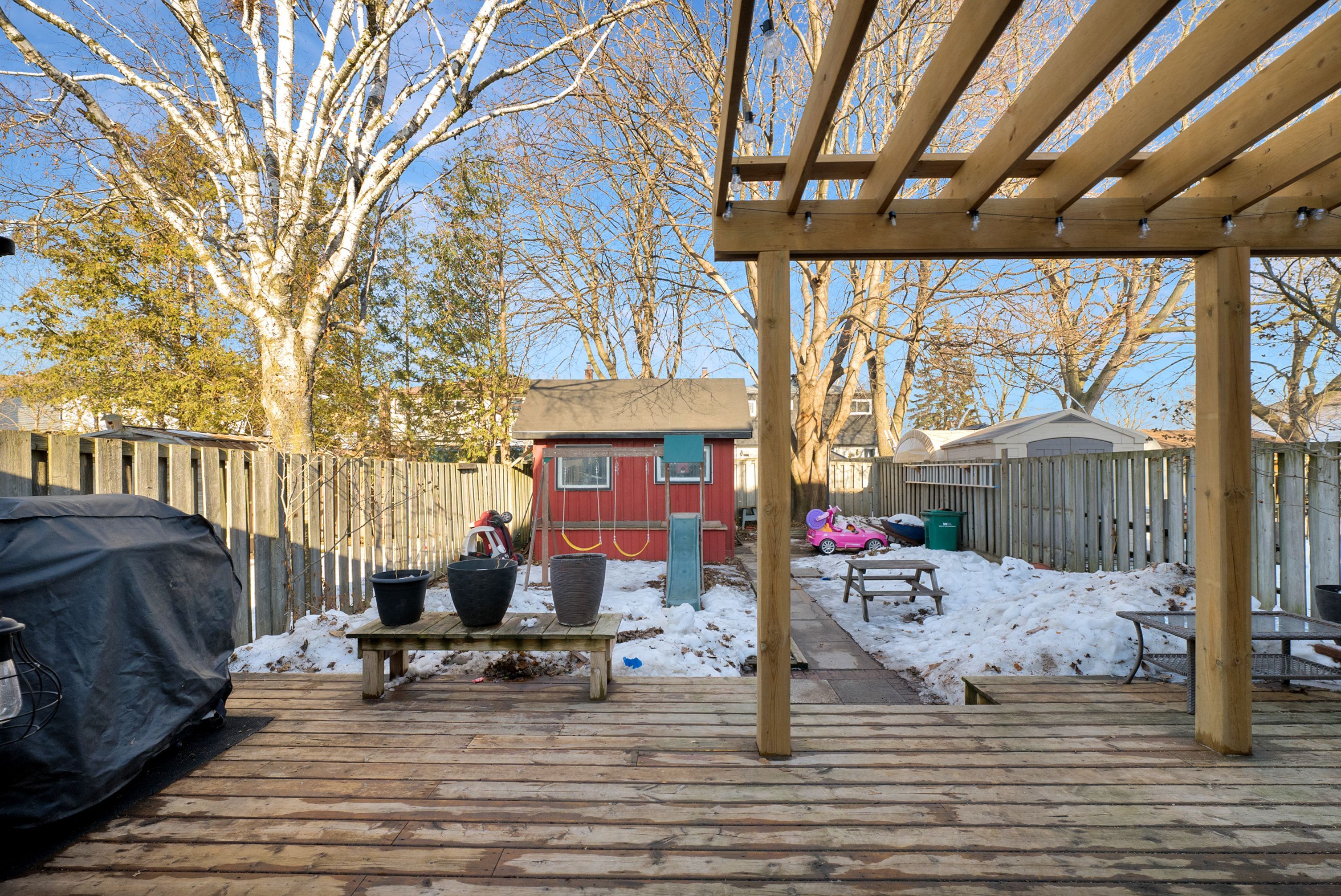 This home is beautiful inside and out! Bring your fussiest buyers. Fresh paint throughout. Kitchen bright and sunny w quartz countertops open concept main floor with access to private backyard. Backyard fully fenced in with new deck, pergola and 8x12 shed! Cozy up in livingroom with fireplace. Upstairs all good sized bedrooms with new laminate. Renovated bathroom. Bsmt has extra office space and 3 piece bathroom! Excellent location in mature neighbourhood. Close to shopping, transit, groceries, parks, schools and 401. Tons of updates- bathroom (2025) driveway (2023) furnace (2025) washer/dryer (2023) front window (2022) upstairs flooring (2022) deck (2021) shed (2023) pergola (2025) *see virtual tour*