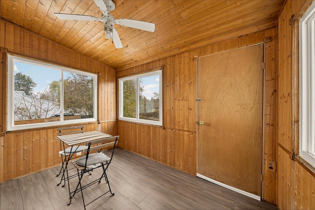 • Glassed sunporch surrounded by windows, perfect for enjoying peaceful views.