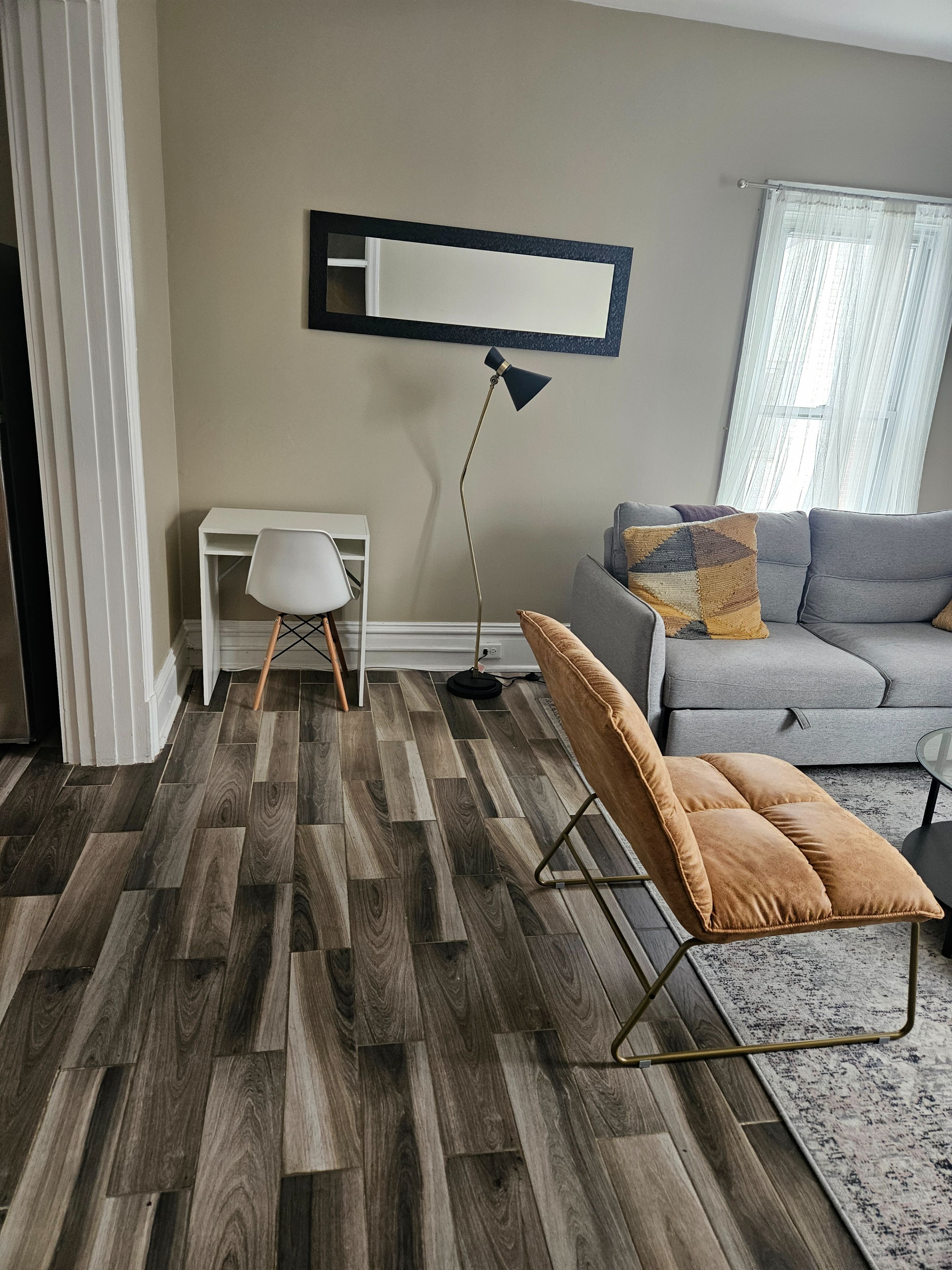 Move in and live in this furnished 1 bedroom and 1 bathroom apartment on the 2nd floor of a fourplex in central hamilton. The unit has an ensuite washer/dryer unit, an upgraded kitchen with stainless steel appliances. Water is included in the rent. The tenant pays for electricity, tenant insurance and internet services to the unit. Each unit has a separate electricity meter. Heat and air condition are powered electricity. (1) outdoor parking spot in front of the house is included in the rent. The property is very conveniently located. Walking distance to hamilton go, mcmaster mohawk college, transit, grocery stores.