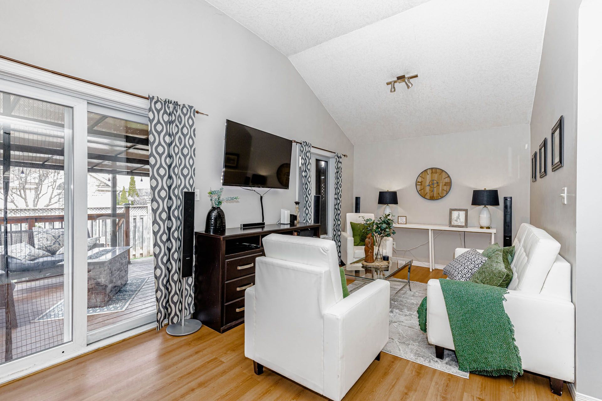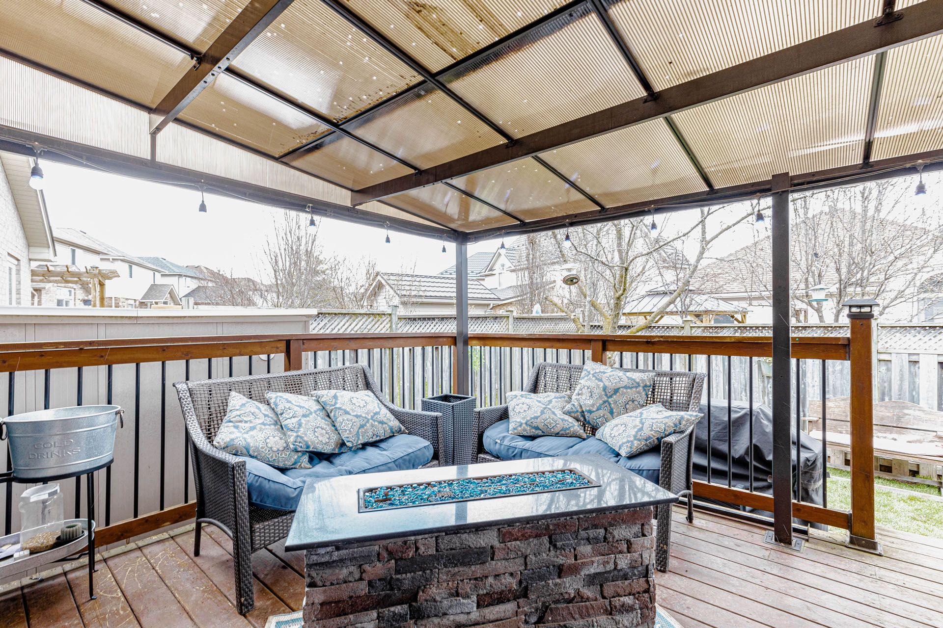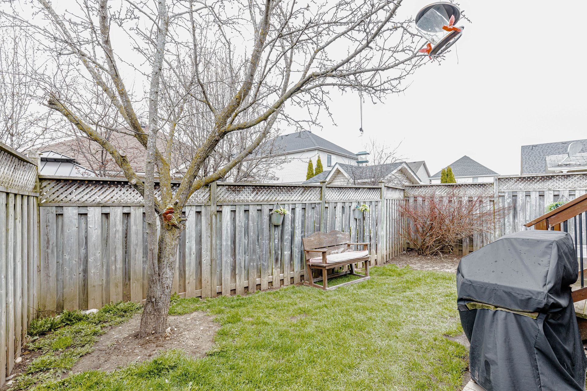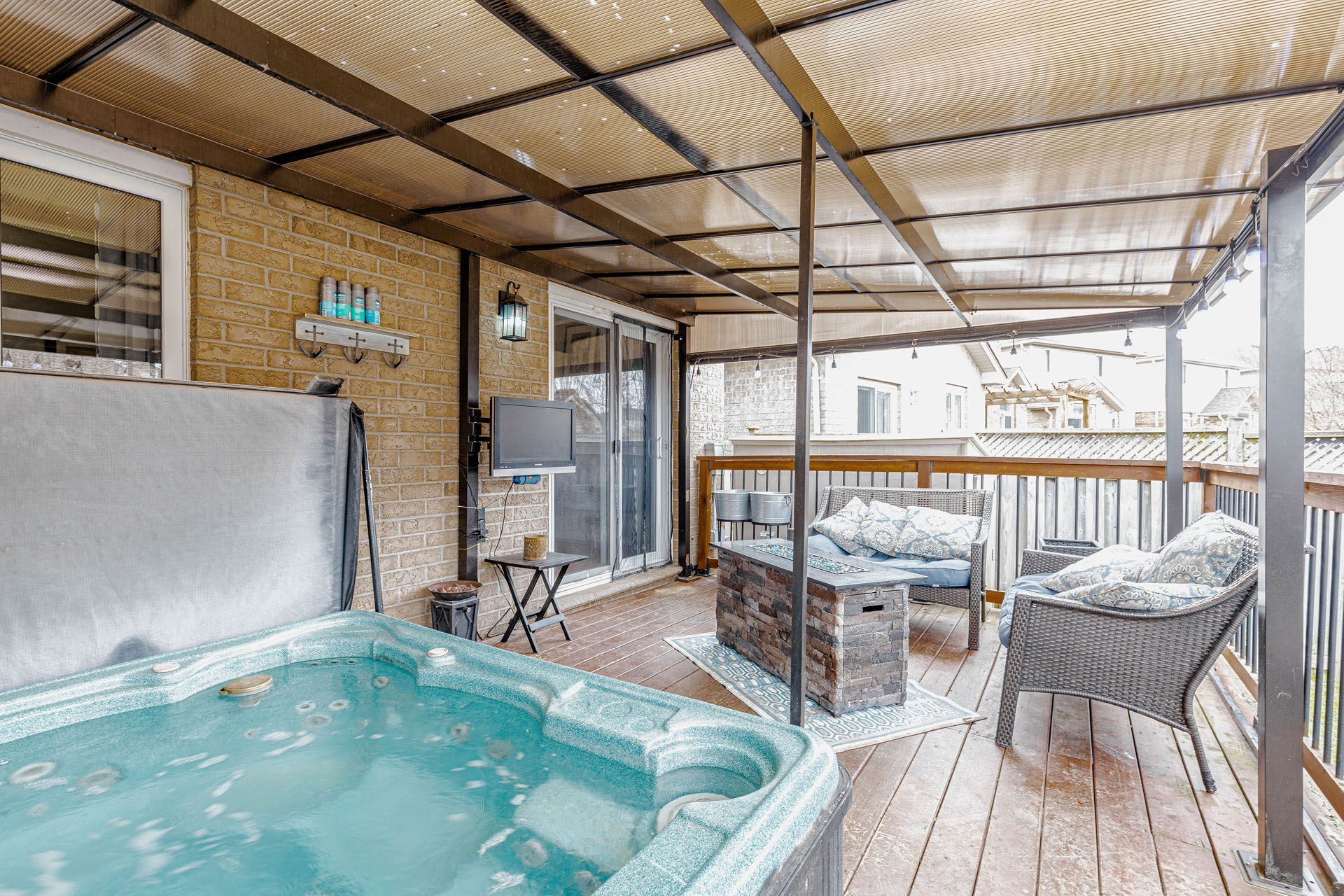 • Fully fenced backyard with deck, gazebo, hot tub, and storage shed.