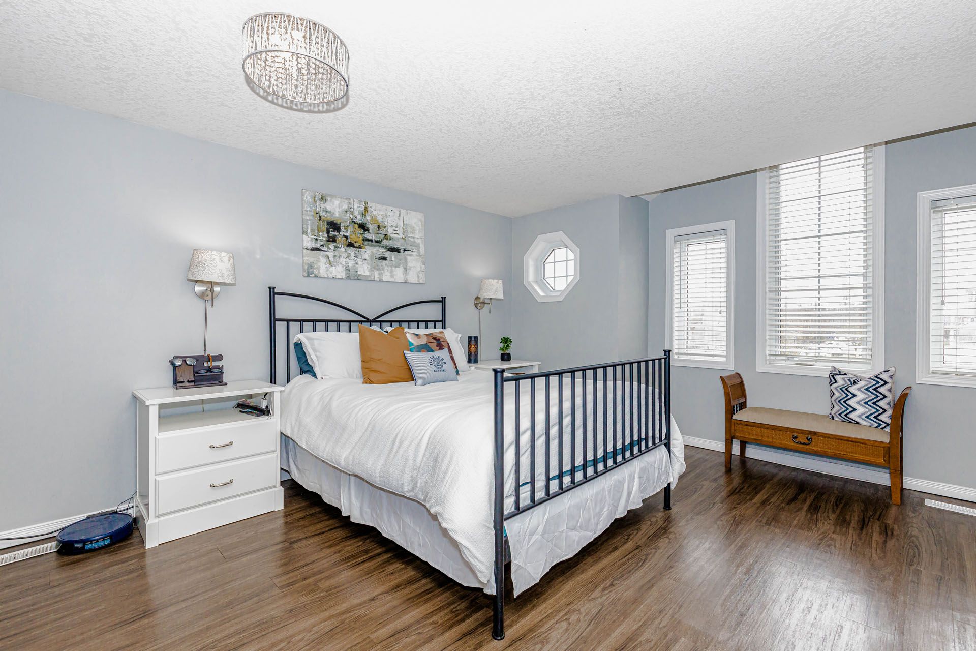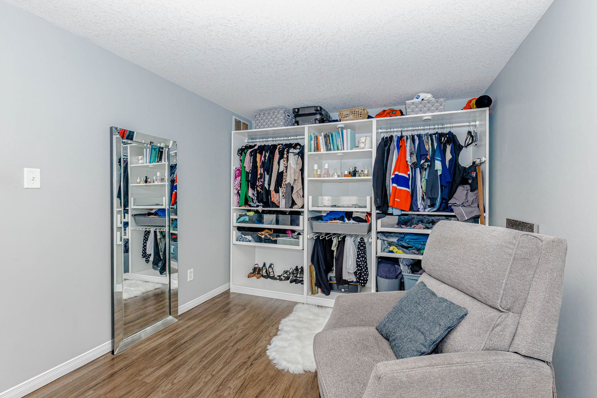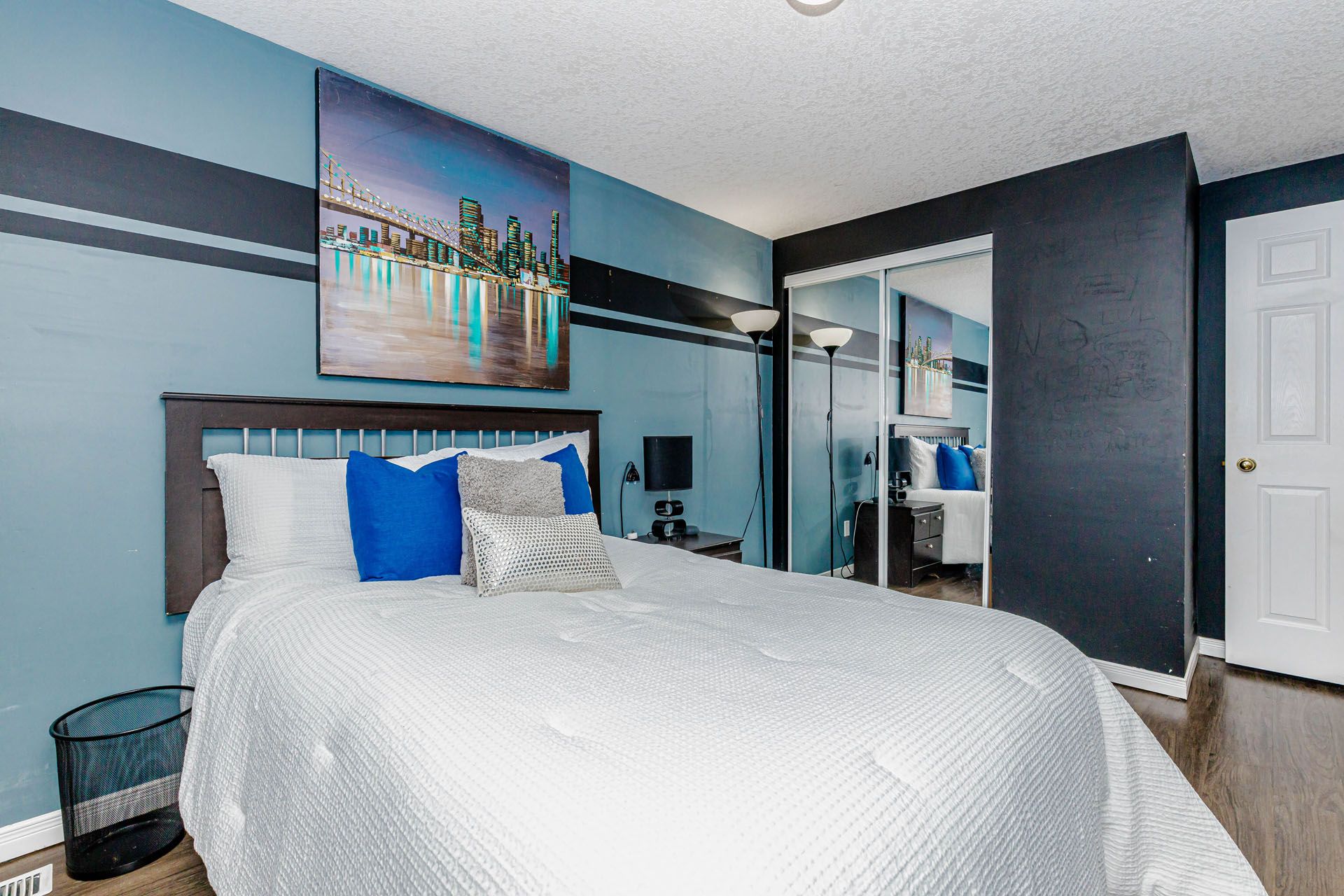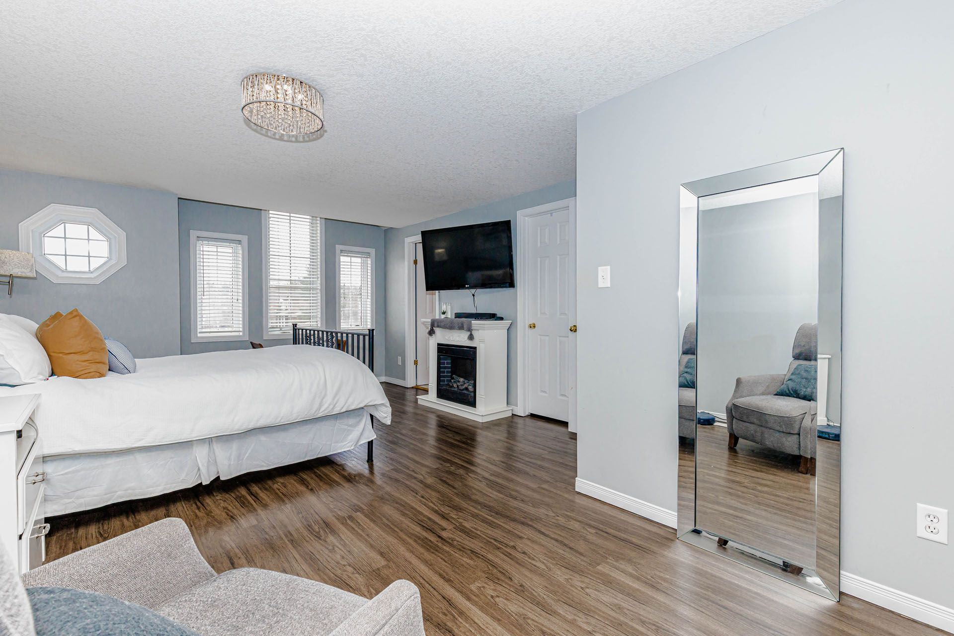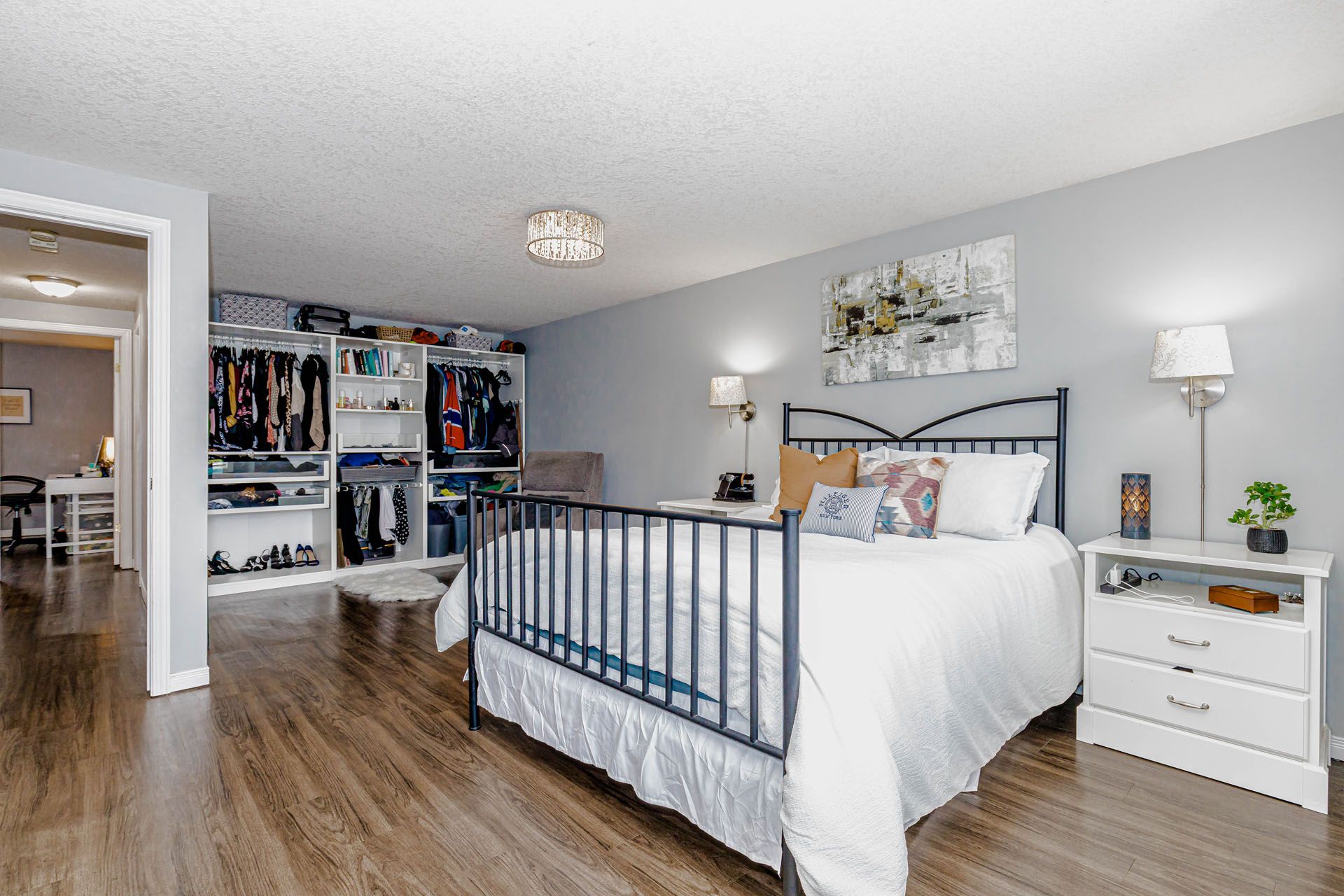 • Spacious primary bedroom with ensuite, walk-in closet, and custom organizers.