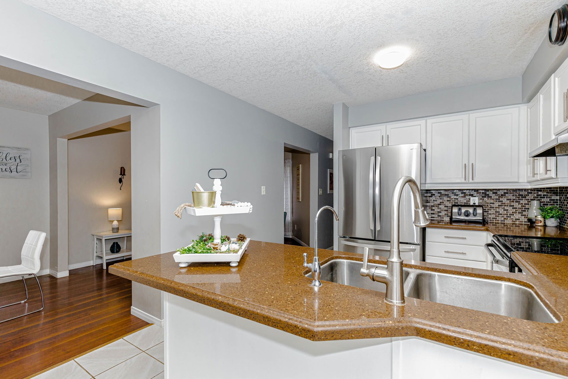 • Upgraded kitchen features granite countertops, stainless steel appliances, and custom pantry.