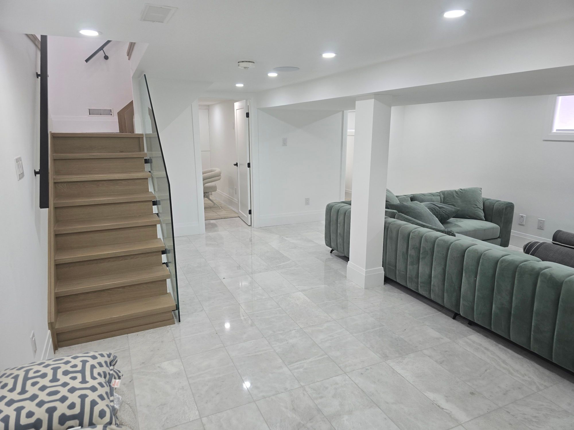 • Spacious basement with Italian marble and a cozy gas fireplace.