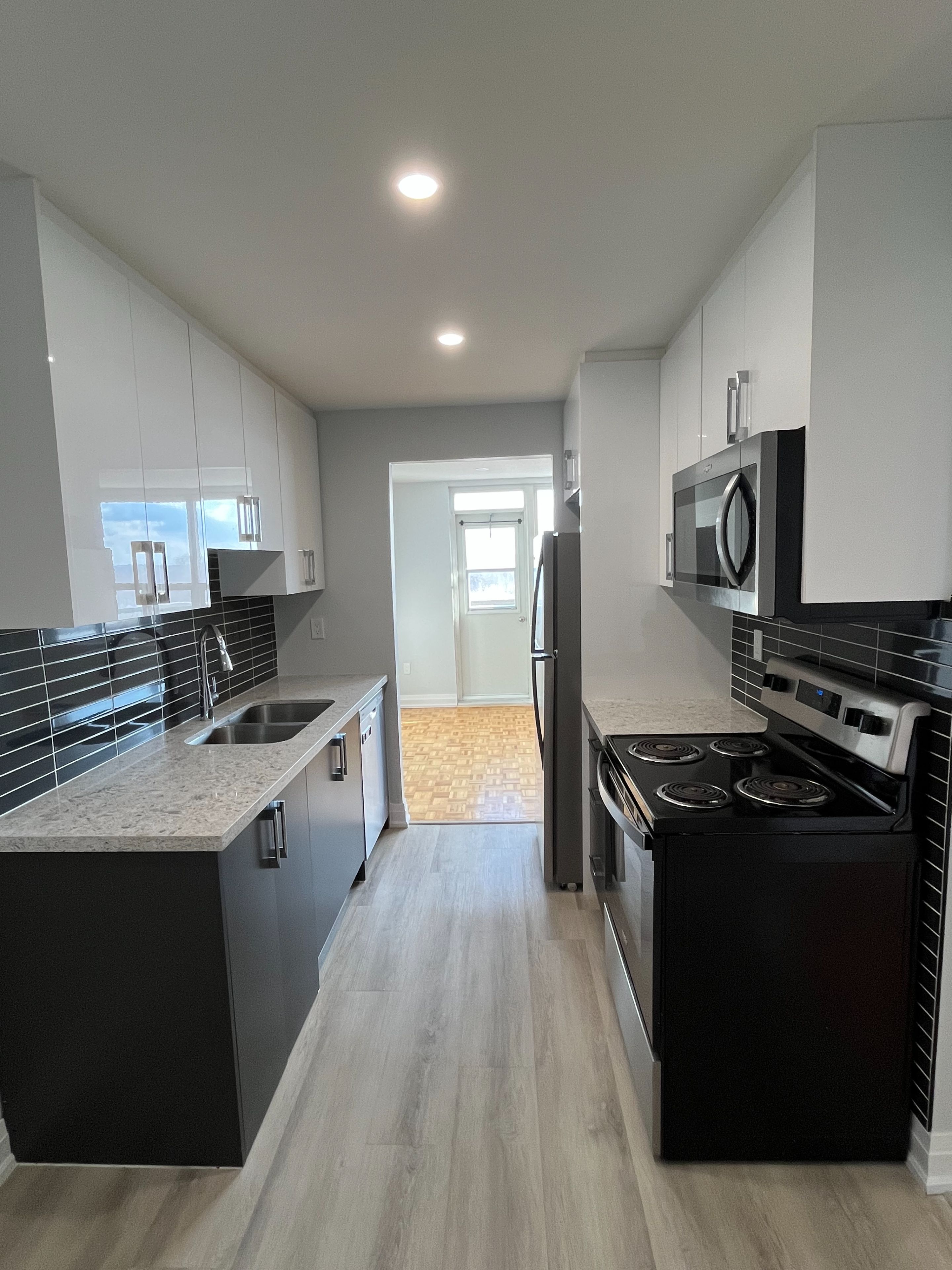 Spacious 2 bedroom unit available for lease. Partially renovated- new kitchen and pot lights in the living area. This building is situated in a quiet neighborhood surrounded by parks and offers convenient access to public transit. Close to all essential amenities, including schools, churches, hospitals, and shopping centers.