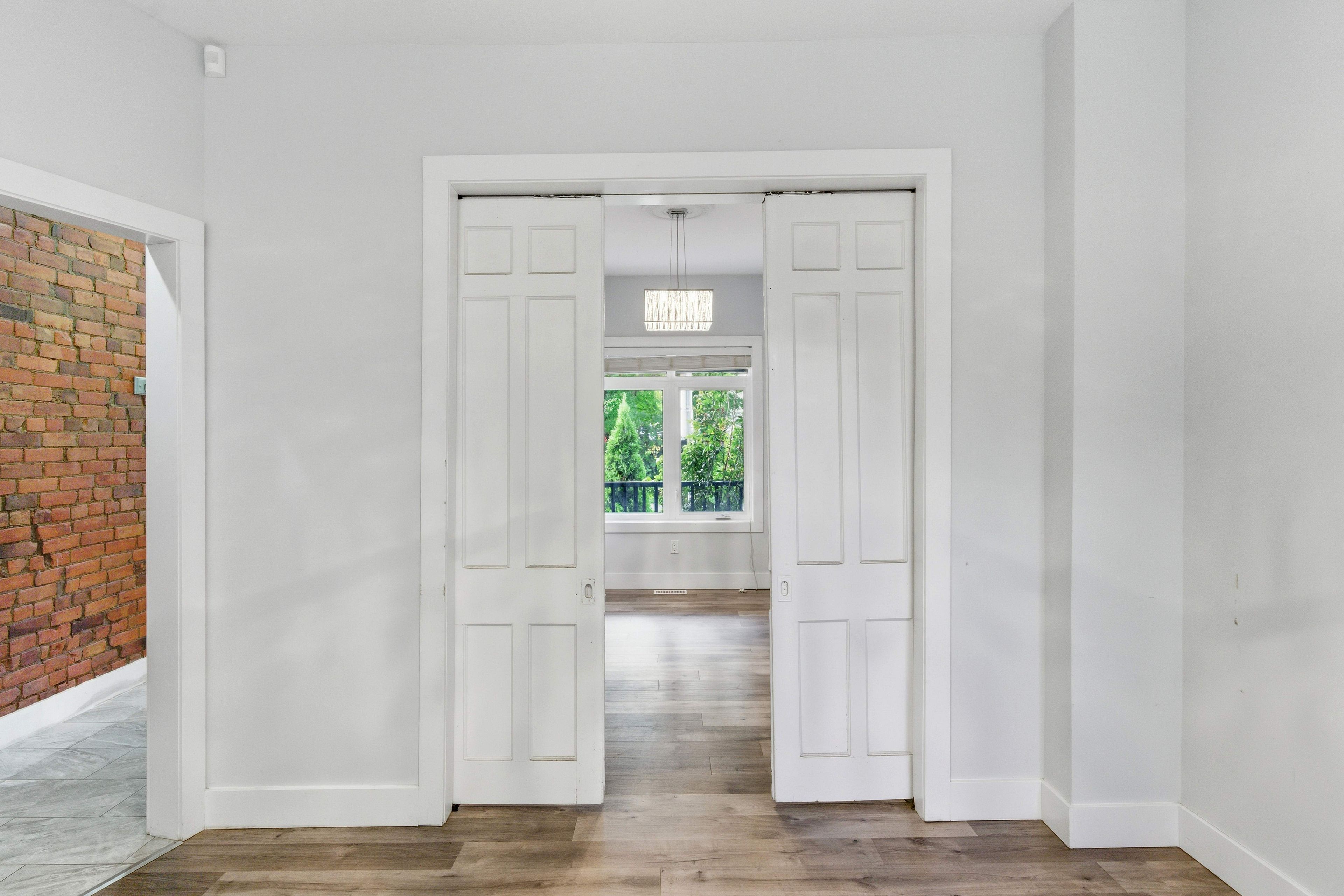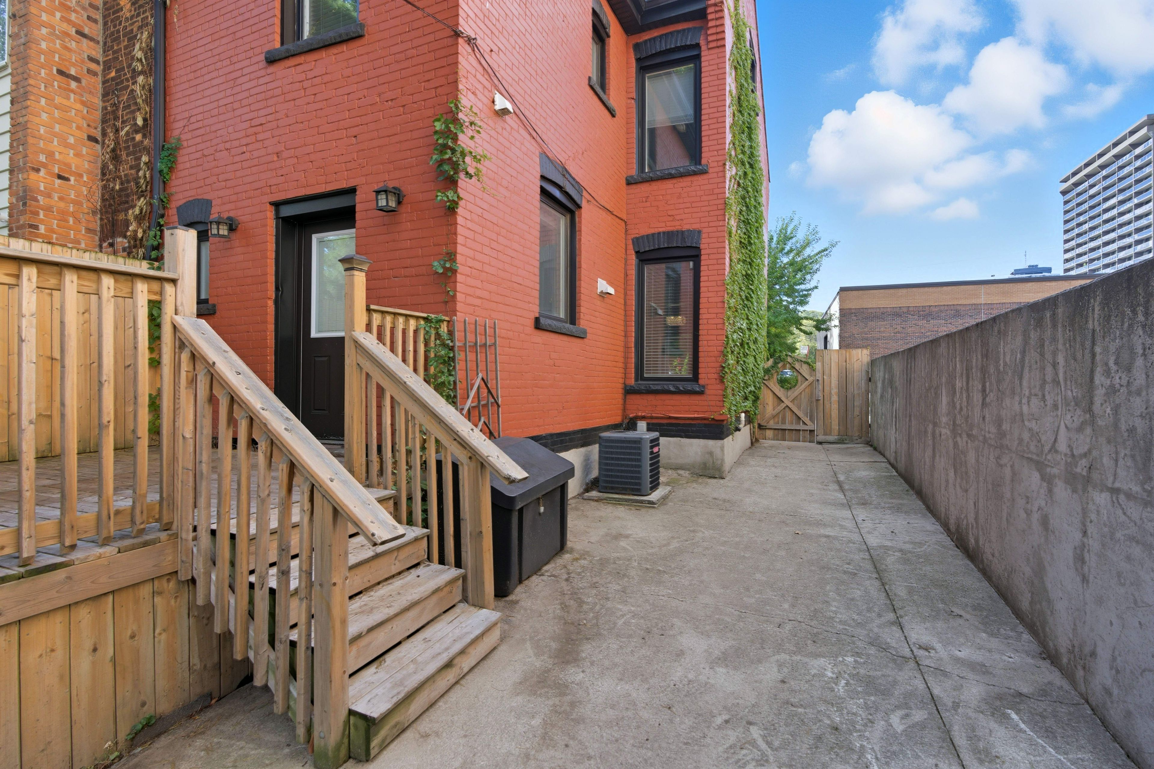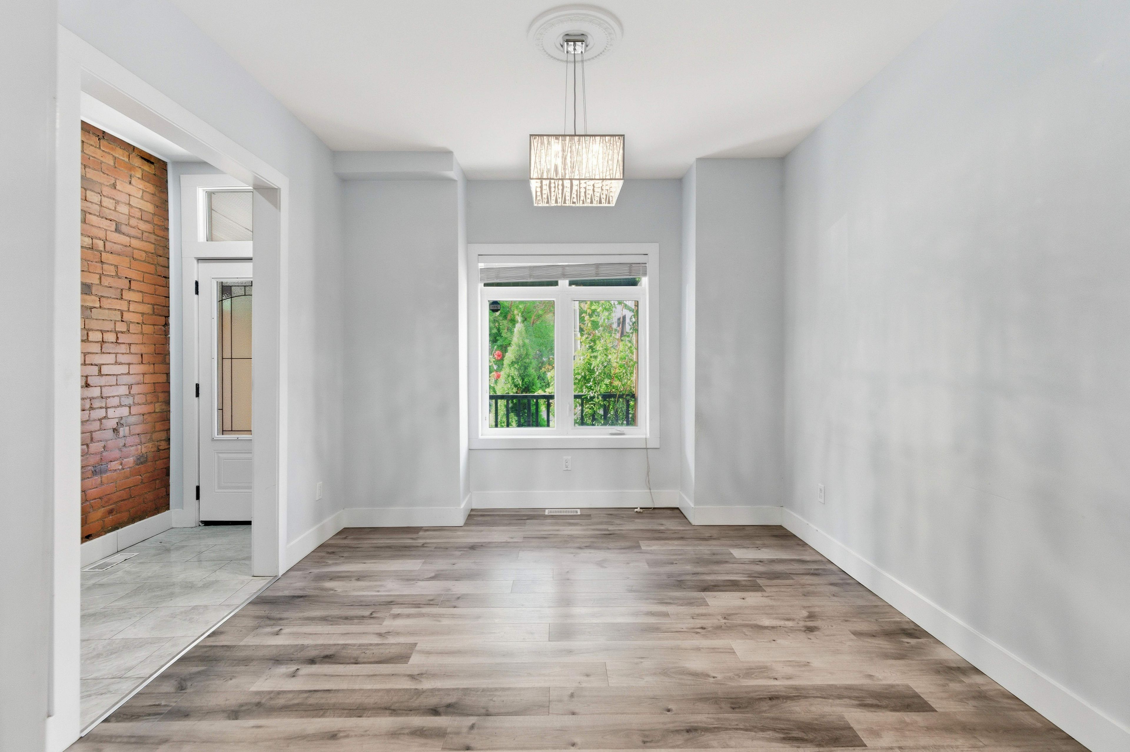 Welcome to 199 jackson street east, located in hamiltons highly desirable corktown neighborhood. This classic 2. 5-storey red brick century home is full of charm and modern upgrades, ready to impress! Step onto the cozy covered front porch, then into a main floor that boasts 9-foot ceilings, exposed brick accents, and original pocket doors that still functionbringing warmth and heritage to every room. The beautifully updated white kitchen features quartz countertops and opens to a spacious dining area. A convenient main floor 2-piece bathroom adds functionality without sacrificing style. Upstairs, the second floor offers bedroom-level laundry, two generously sized bedrooms, and a large, updated 5-piece bathroom with modern finishes. The third-floor loft is a versatile flex spaceperfect as a massive primary bedroom, home office, or secondary family room. Outside, enjoy plenty of privacy in the fully fenced backyard with a large deck, ideal for entertaining. Not just front drive parking but there's rear laneway parking as well. Just steps to augusta street, james street south, go transit, local shops, cafes, and morethis is urban living at its finest. Don't miss your chance to call this corktown gem home.