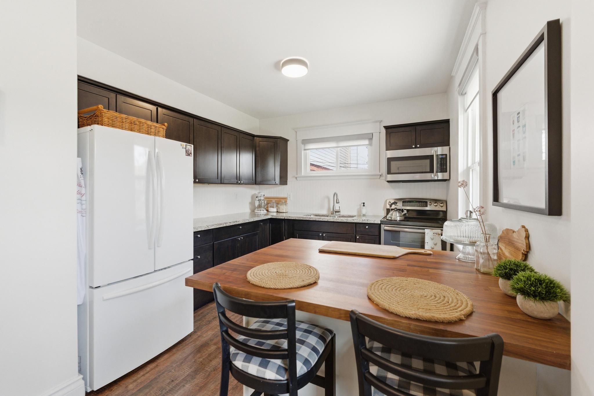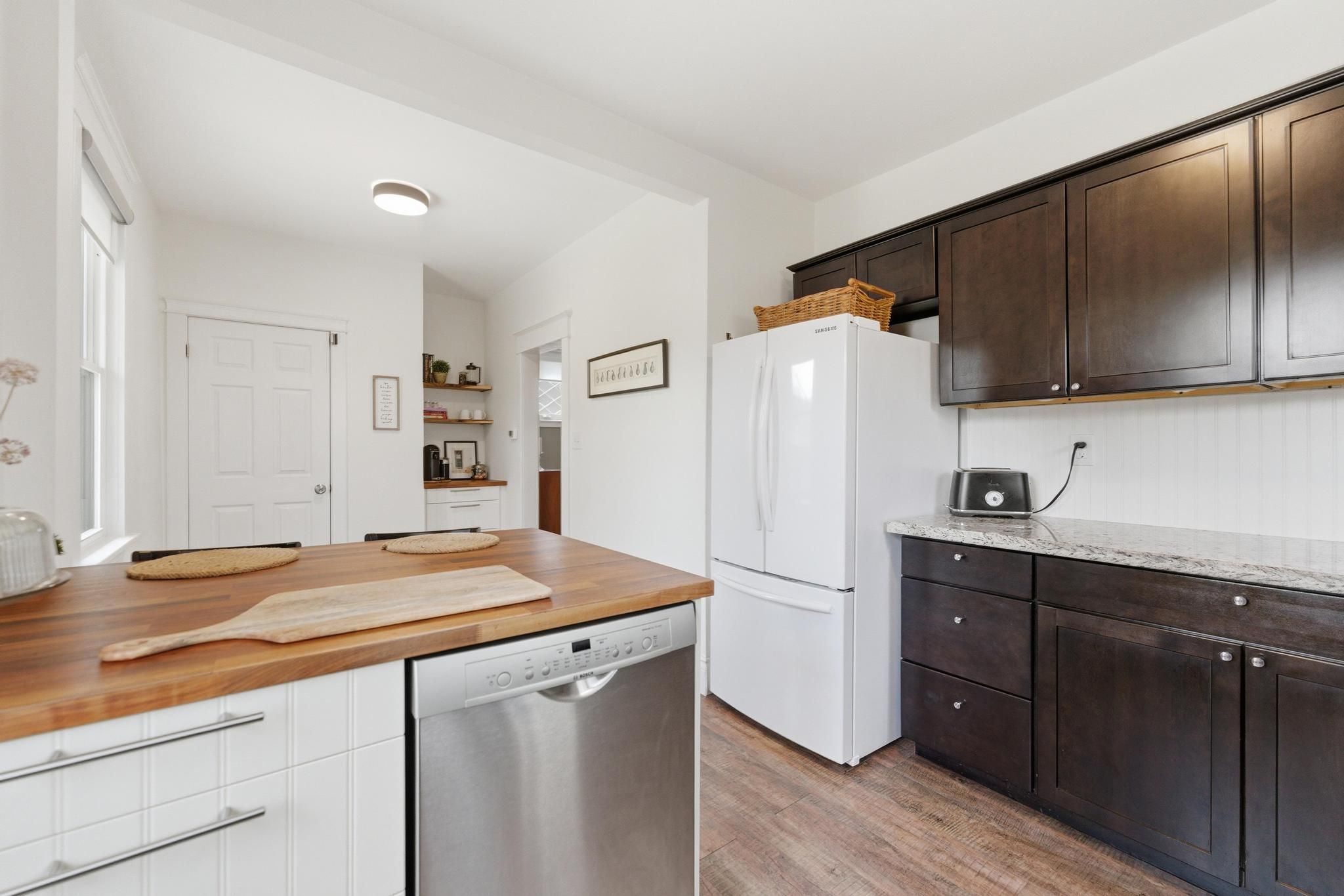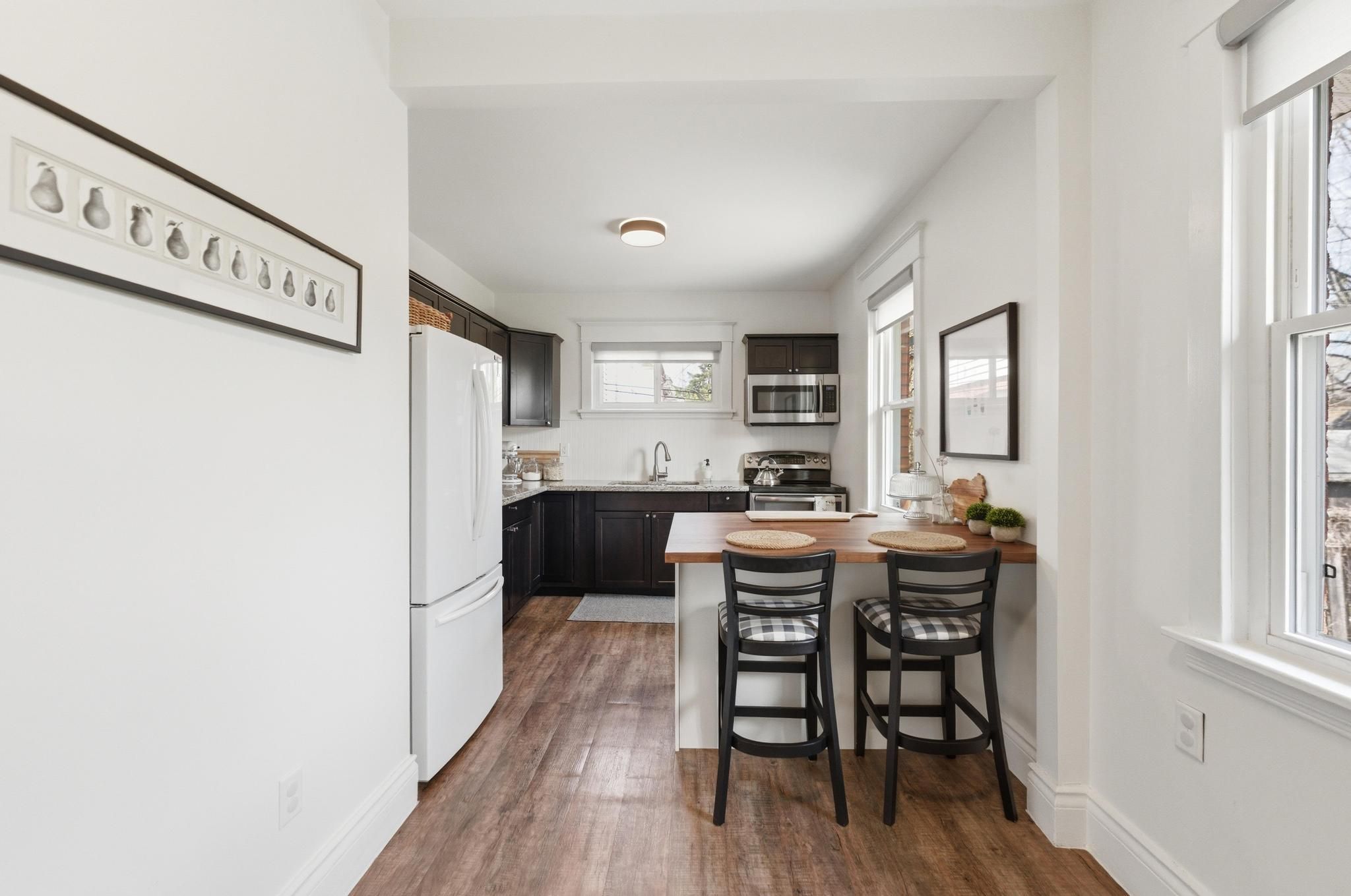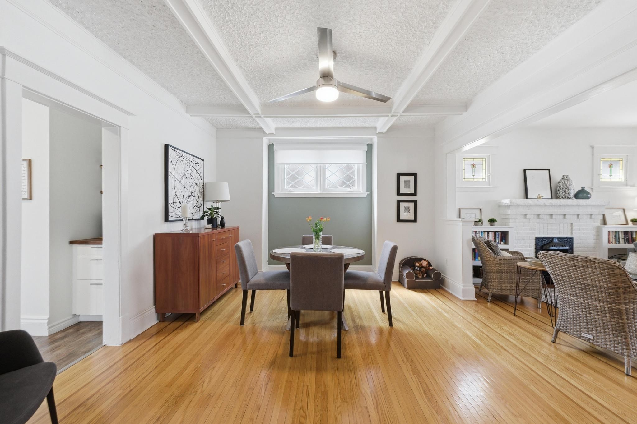 Step into this beautifully updated character home, blending timeless charm with modern finishes, just steps to gage park and the shops, cafes, and restaurants of ottawa street. Enjoy escarpment views from your front porch. Original details include inlaid hardwood floors, mouldings, stained glass, and a decorative fireplace, complemented by a coffered dining room and cozy den with built-ins. The eat-in kitchen with a custom coffee bar overlooks a low-maintenance yard with perennial gardens and interlocking patio. Upstairs offers 3 bedrooms and a renovated 4-piece bath. Separate side entrance to a fully finished basement suite with kitchen, laundry, living space, and 4-piece bath