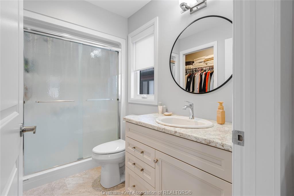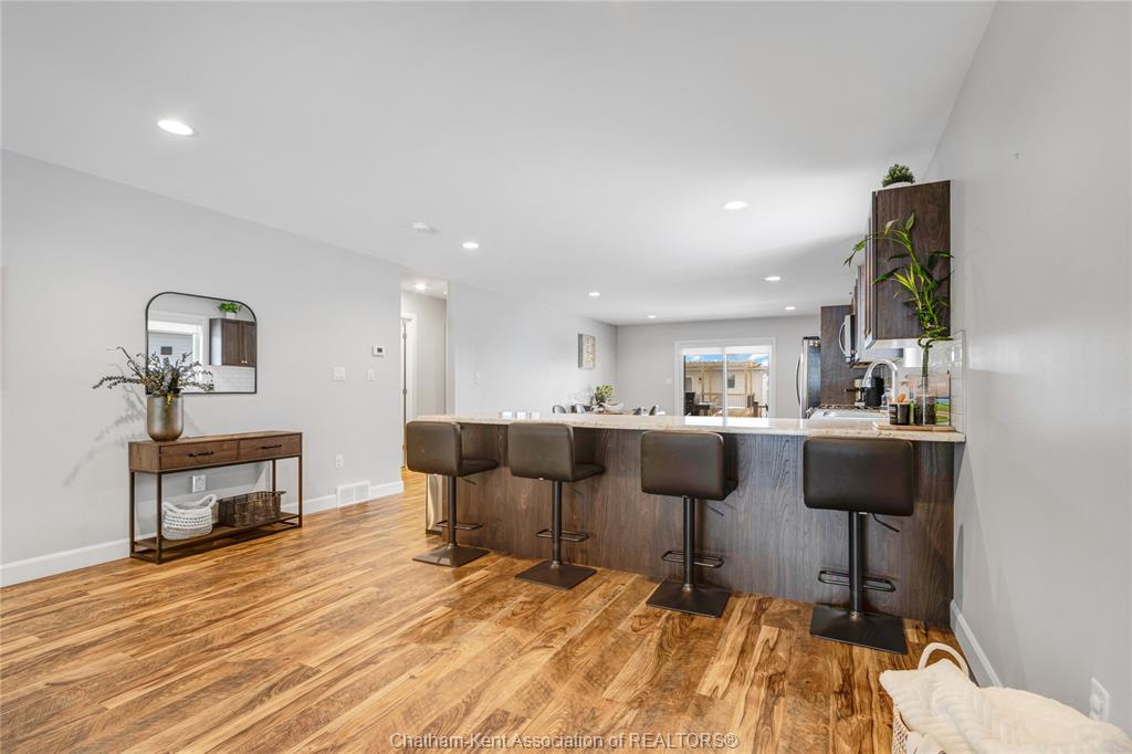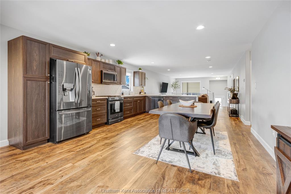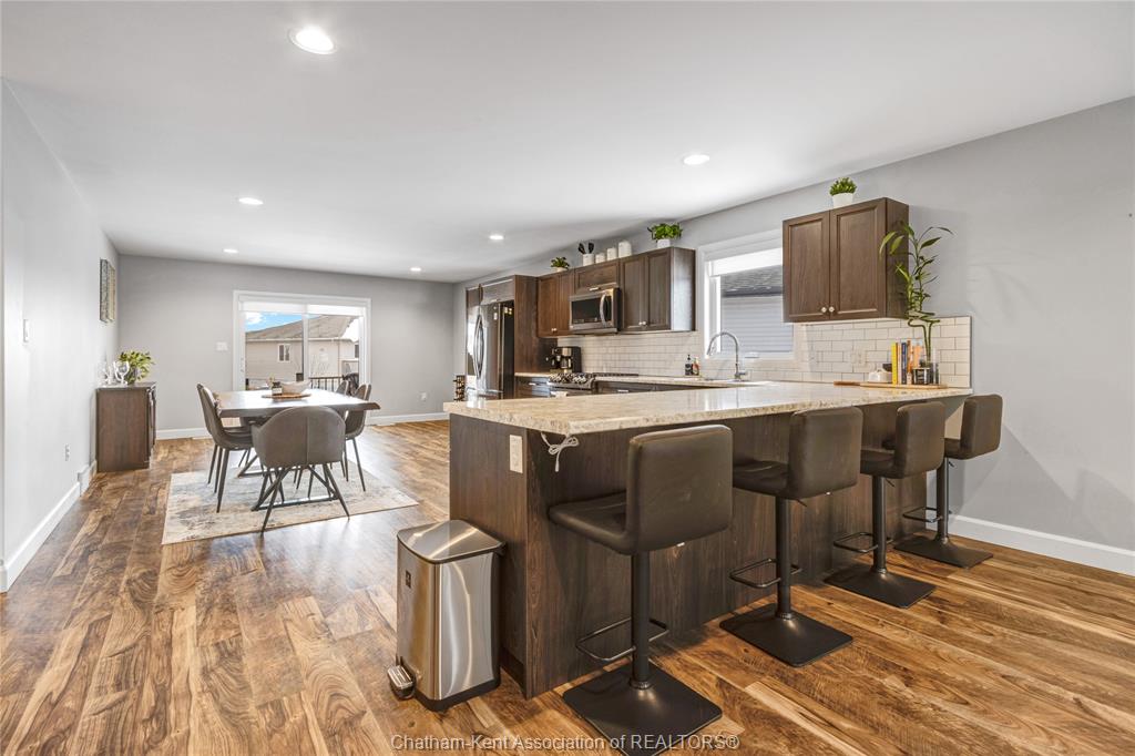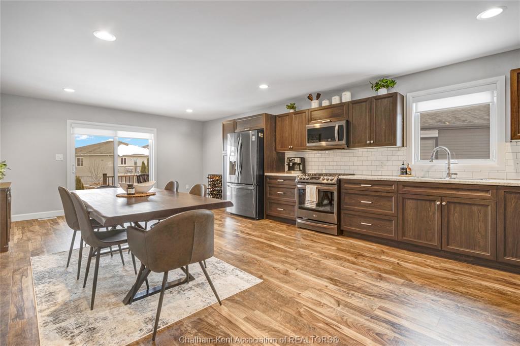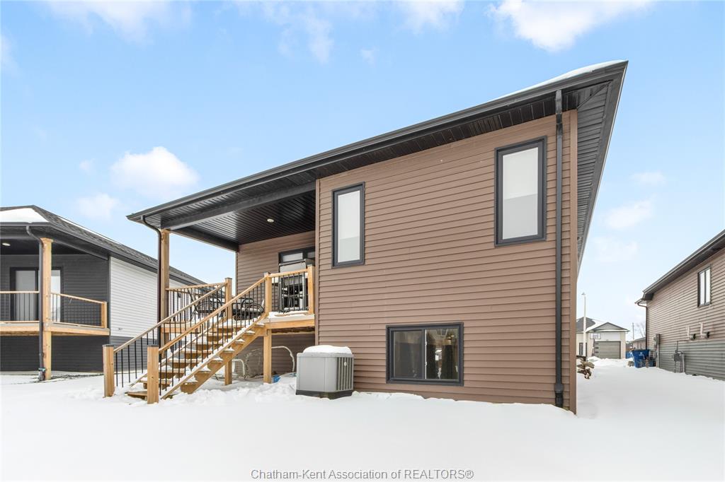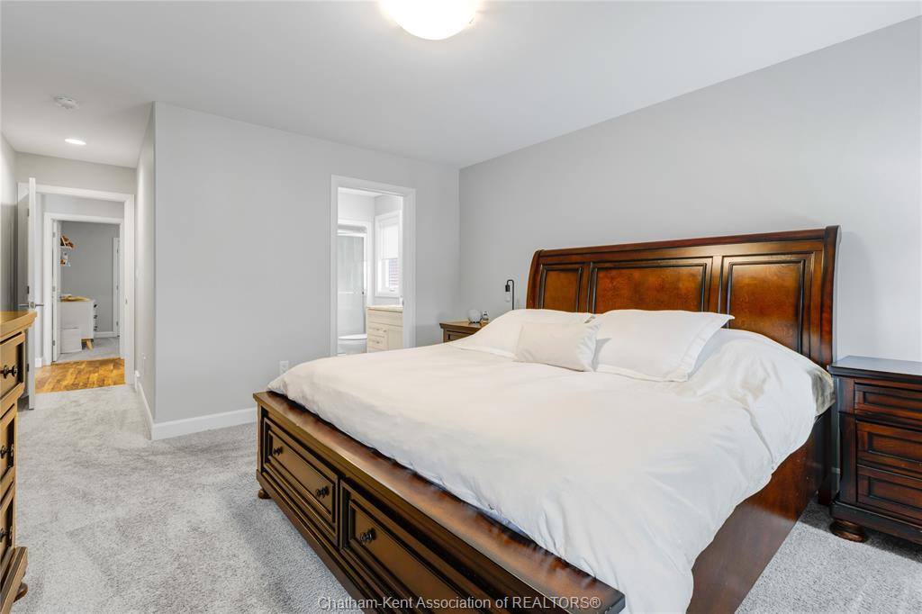 Welcome to warmth and comfort in this immaculate, spacious raised ranch located on chatham’s south side just minutes from the 401! This beautifully maintained 3 bedroom, 3 full bathroom home offers an inviting open-concept layout with large windows that flood the space with natural light. The main floor features an open concept living, kitchen, and dining combination that is perfect for entertaining and bringing the family together. You’ll find two generous bedrooms and a 4-piece main bath, along with a private primary retreat at the rear of the home complete with a walk-in closet and 3-piece ensuite. The fully finished lower level offers a large rec room plus a setup that can serve as an additional primary bedroom suite with its own walk-in closet and modern ensuite featuring a stylish tiled shower and in floor heat. With a flexible layout and pride of ownership throughout, this home is sure to impress. Outside, enjoy excellent curb appeal with tasteful landscaping, a covered rear porch with composite decking, and a relaxing backyard ideal for summer evenings. Don’t miss this one—call today!