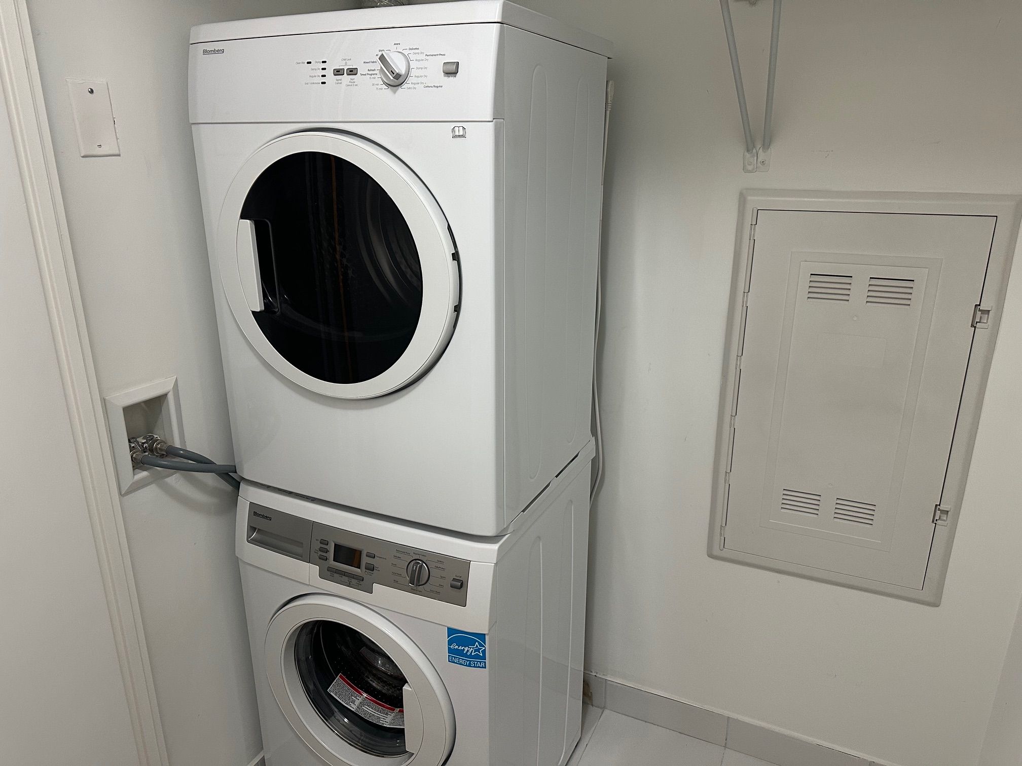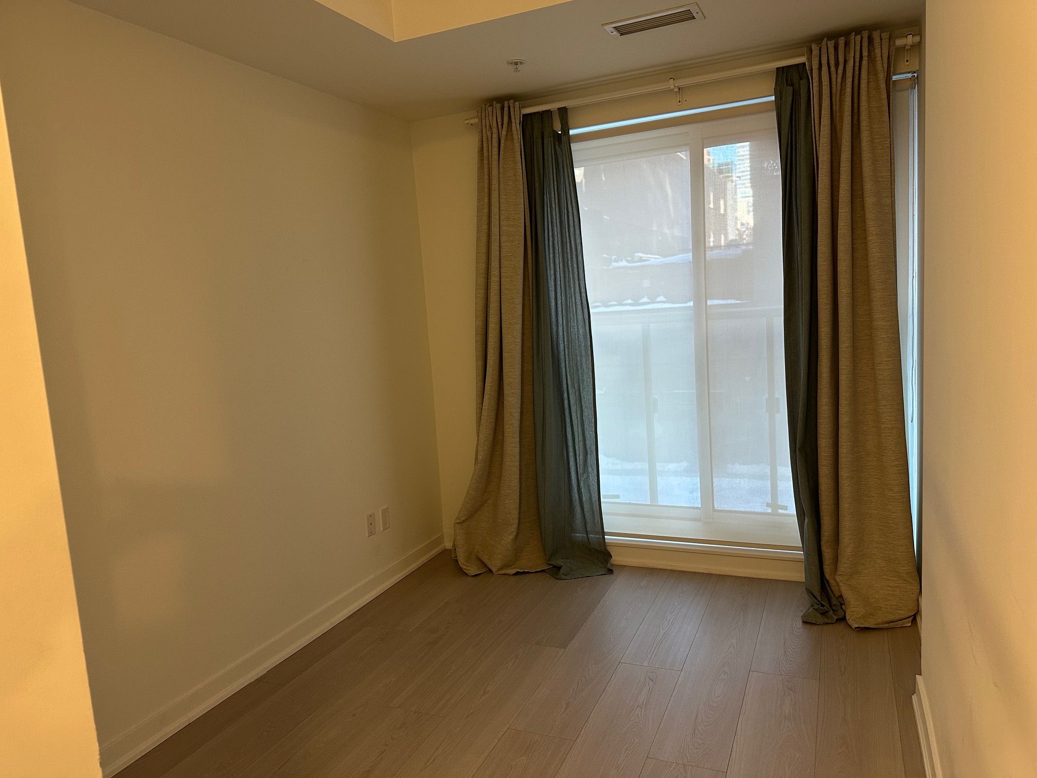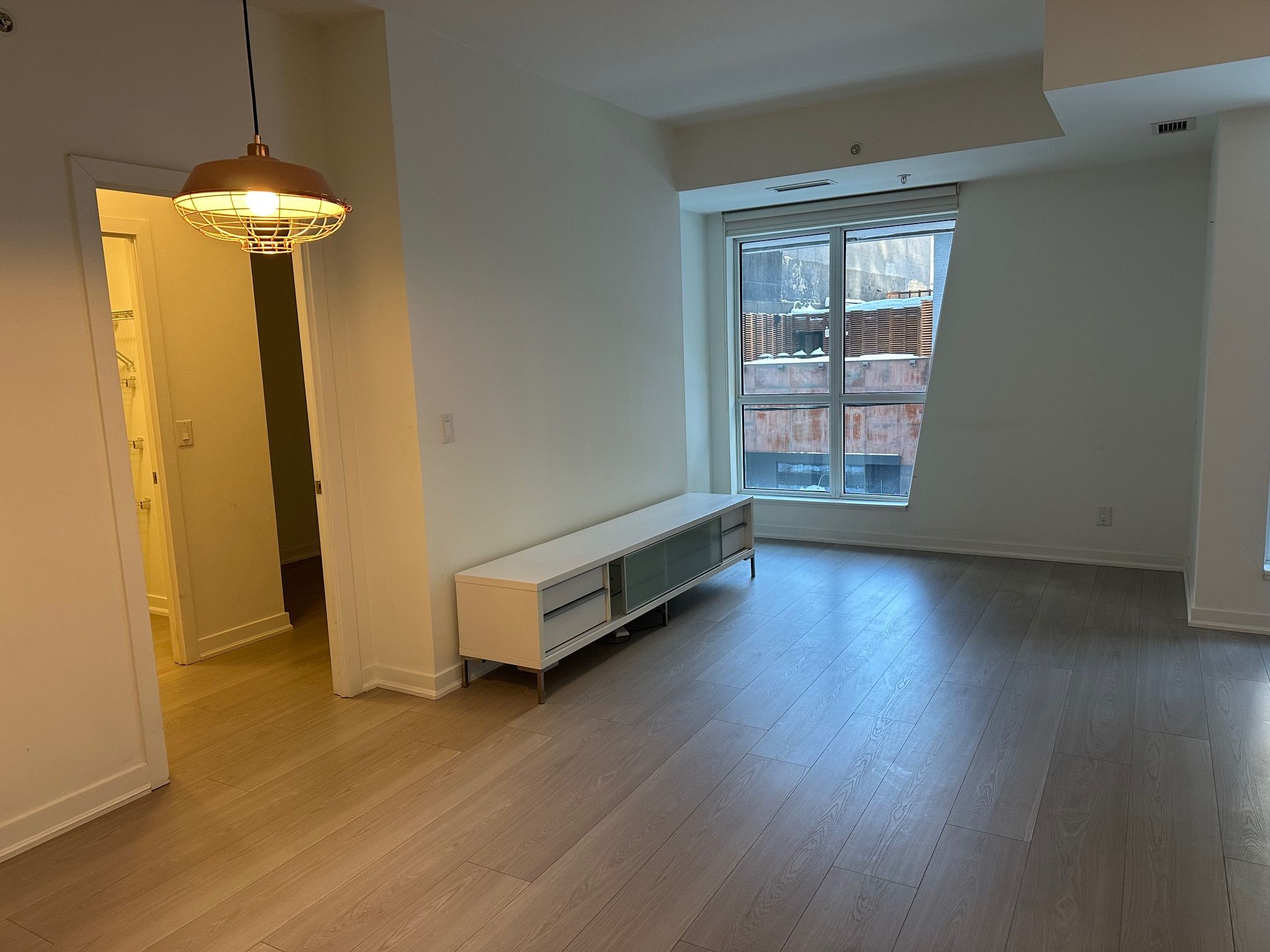 Newly renovated unit with 724 sf layout featuring a large living/dining area. Modern kitchen with miele appliances, enclosed den (can be used as 2nd bedroom or office). 2 bathrooms, huge closet in the primary bedroom, floor to ceiling windows.