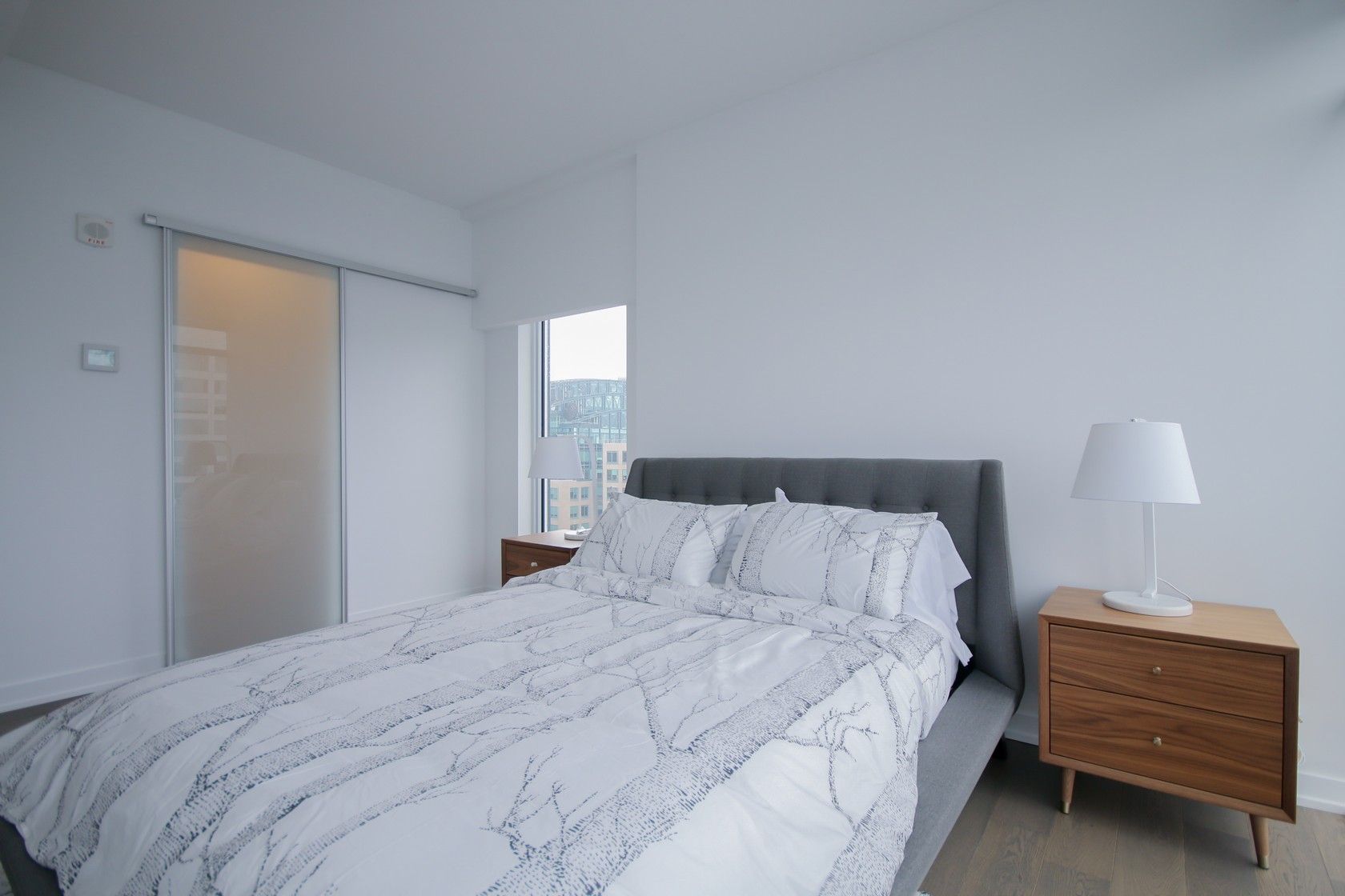 2-story penthouse! This rare 3-bedroom + den, 3-bath luxury condominium in the heart of the financial district offers sleek contemporary design and exceptional finishes throughout. Freshly painted and professionally cleaned, the open-concept living space showcases dramatic lines, floor-to-ceiling windows, sliding glass doors, and a bright, airy ambiance with urban views. Interior styling blends soft and dark hues with upscale reflective accents, quartz and porcelain surfaces, glass tiles, and high-end stainless steel appliances. A large private terrace with natural gas bbq hookup extends your living space, while two underground parking spots and the largest private storage locker in the building add unmatched convenience. Residents enjoy premium amenities including a concierge, fitness centre, bike storage, billiards and screening rooms, plus a stylish outdoor terrace. Steps to shopping, transit, steps from the lrt, restaurants, and more. (photos from previous furnished listing)