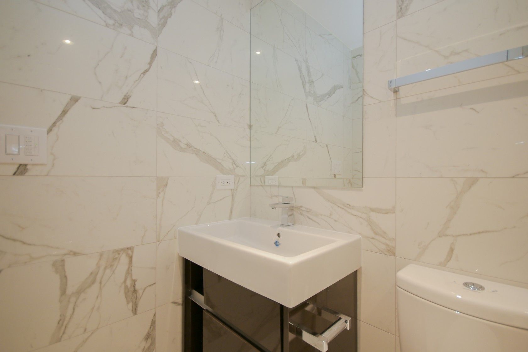 • Open-concept living space with floor-to-ceiling windows and urban views.