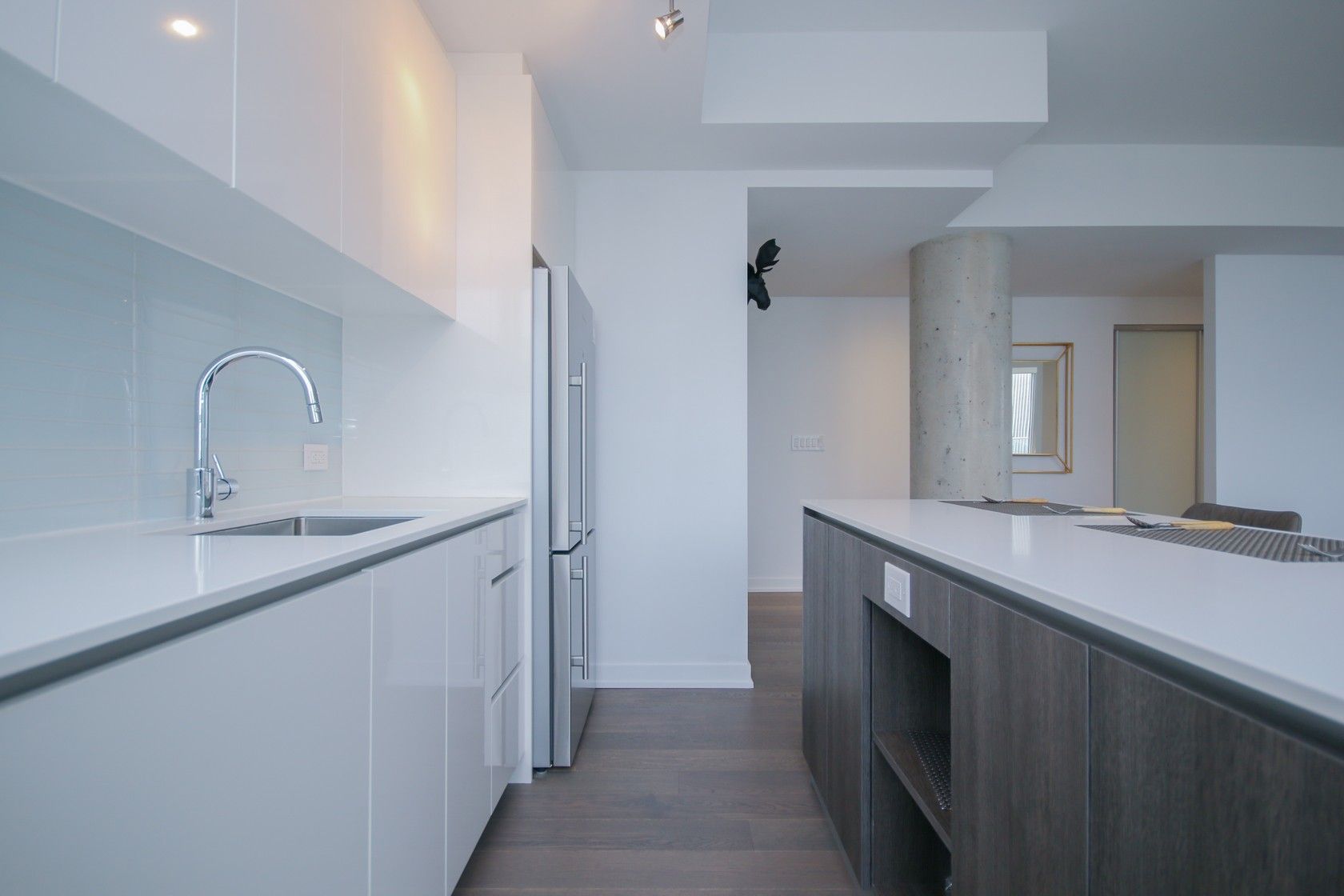 2-story penthouse! This rare 3-bedroom + den, 3-bath luxury condominium in the heart of the financial district offers sleek contemporary design and exceptional finishes throughout. Freshly painted and professionally cleaned, the open-concept living space showcases dramatic lines, floor-to-ceiling windows, sliding glass doors, and a bright, airy ambiance with urban views. Interior styling blends soft and dark hues with upscale reflective accents, quartz and porcelain surfaces, glass tiles, and high-end stainless steel appliances. A large private terrace with natural gas bbq hookup extends your living space, while two underground parking spots and the largest private storage locker in the building add unmatched convenience. Residents enjoy premium amenities including a concierge, fitness centre, bike storage, billiards and screening rooms, plus a stylish outdoor terrace. Steps to shopping, transit, steps from the lrt, restaurants, and more. (photos from previous furnished listing)