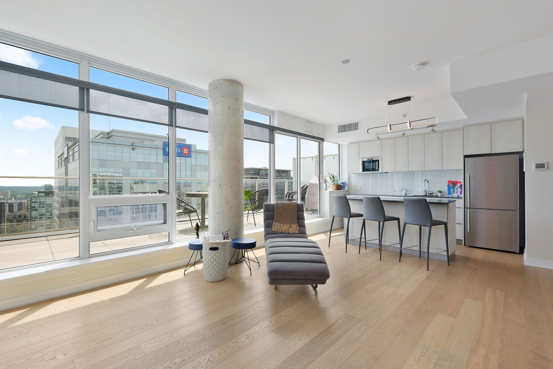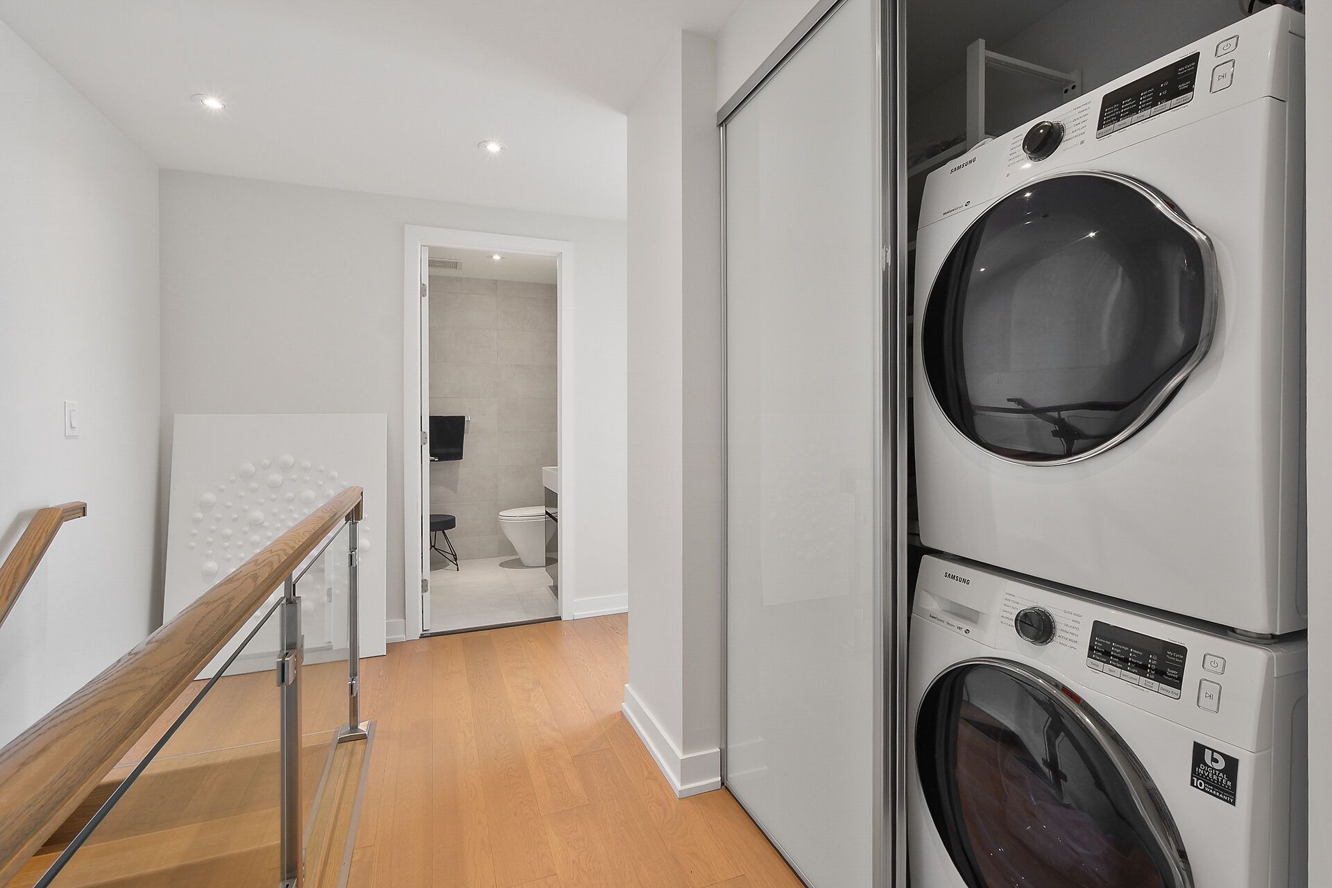 For rent, deluxe, two story, two bedroom, three bathroom condominium apartment centrally located in the heart of ottawa. This property's most exceptional feature is the breathtaking views from all its floor to ceiling windows & from the spacious balcony. There is tons of natural light as a result of its open concept design & it features attractive hardwood flooring throughout the main level, upstairs hallways & bedrooms. The kitchen includes quartz countertops & sufficient cabinetry to accommodate your cookware & dishes. The spacious open concept living room / dining area & exterior balcony are all perfect for furniture placement & relaxing as well as intimate meals or small family gatherings. The second floor hallway offers hidden washer/dryer & access to the family bathroom with soaker tub and shower. The spacious primary bedroom includes a bright, high end four piece en-suite bathroom with double sinks & glassed walk in shower. The second bedroom is perfect for other family members or a guest room / home office. This building has lots of amenities including, concierge, party room, movie room and exercise equipment. Imagine the convenience of being in walking distance to numerous restaurants & stores as well as most major tourist attractions like the byward market, national arts centre, museums and parliament hill to name few.