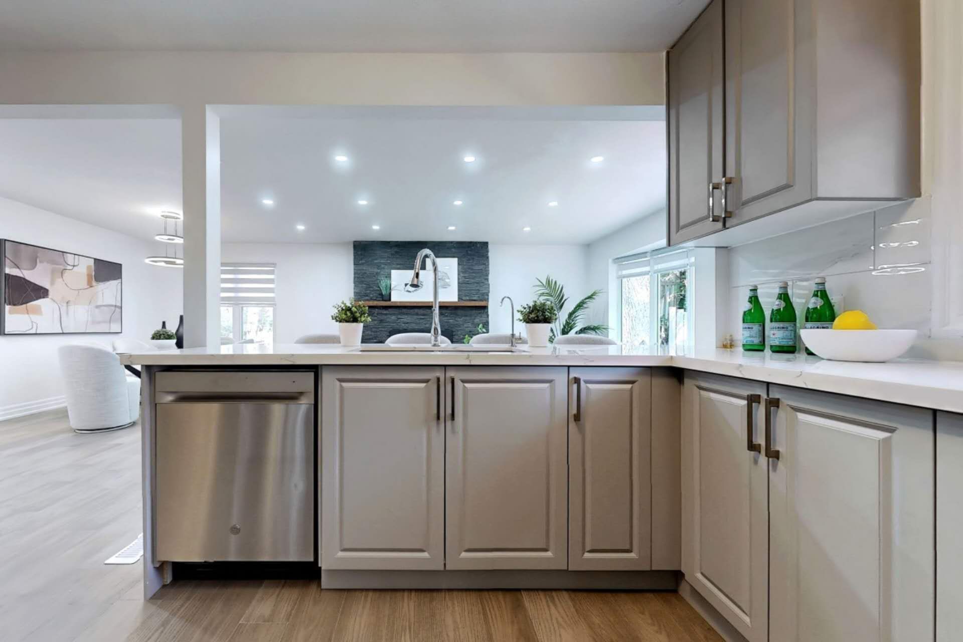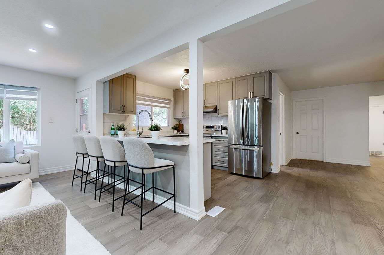 Located in a well-established and highly desirable residential community in waterloo, 199 vermont st is a beautifully maintained detached bungalow offering an ideal blend of comfort, functionality, and long-term investment value. This thoughtfully designed home offers a bright and functional layout with quality upgrades throughout: spacious open-concept living and dining areas. Modern kitchen with stone countertops and stainless steel appliances. Breakfast bar for casual dining. Cozy family living space with fireplace. Primary bedroom featuring ensuite bathroom and walk-in closet. The fully finished basement significantly enhances the home's value and flexibility:additional 2 bedroomslarge recreation area. Wet bar setup large private backyard. Direct backing onto green space / park. Spacious deck for entertaining and outdoor enjoyment. Situated in a mature and family-friendly neighbourhood, this property offers excellent convenience and connectivity:close to schools, parks, and community amenitieseasy access to shopping, transit, and major routes. Short drive to major educational institutions including the university of waterloo and wilfrid laurier university. A rare opportunity to own a detached bungalow in a prime waterloo location, offering a perfect balance of family living comfort and investment potential. Ideal for both end-users and investors seeking long-term growth. Upgrads: under sink water filtration system/2022. Washroom/2024. Floor/2024. Roof/2024. Kitchen/2024