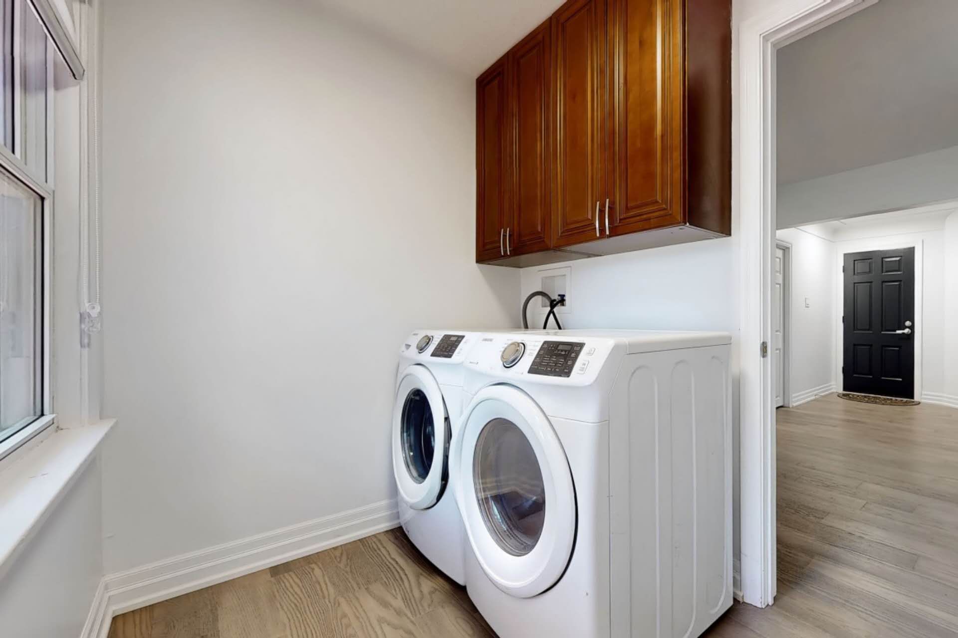 • Large private backyard backing onto green space for outdoor enjoyment.