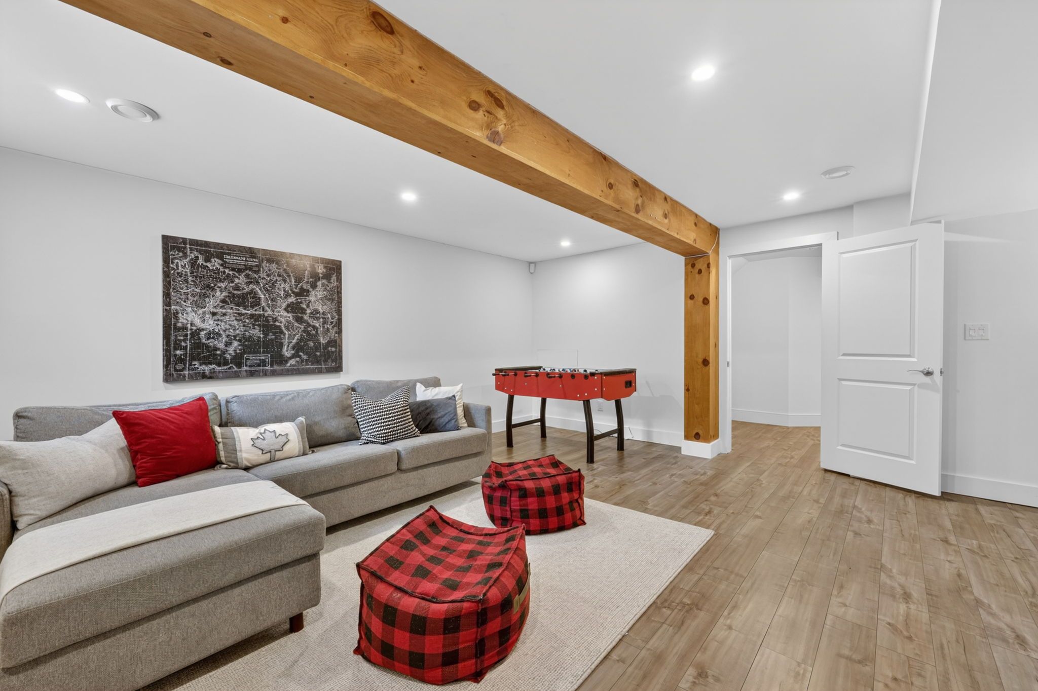 Located in the windfall at blue community at the base of the blue mountain, 199 yellow birch crescent is the mountainside retreat you've been looking for. Beautifully maintained with significant upgrades and a fully finished basement, this 3-bedroom, 4-bathroom semi-detached home has been freshly painted top to bottom offering a bright, airy atmosphere & modern design. The main level features open concept living with a gas fireplace and gourmet kitchen equipped with thermador appliances, thoughtful additional storage, quartz countertops & a large island. The second floor offers three generous bedrooms and convenient laundry, while the fully finished basement provides additional living space with a large family room and a full bathroom. Other attributes include convenient indoor access to the garage, partially fenced rear yard & covered front porch complete with a charming signature gas lantern and scenic views of the ski hills. Residents enjoy exclusive access to the "the shed", windfall's premium year-round amenity centre with heated outdoor pools, a sauna and fitness room. Offered turnkey and move-in ready, this home is steps from blue mountain village and minutes from georgian bay and downtown collingwood.