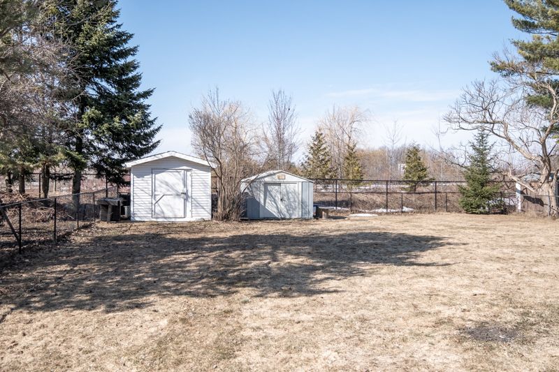 Welcome to this well-maintained raised bungalow in the heart of stroud (innisfil), set on an impressive 65 x 182 ft lot backing onto peaceful greenspace. This home combines functionality, privacy, and future potential. The main level features two bright bedrooms, a spacious living room, eat-in kitchen, and an updated 4-piece bathroom. A separate split-style entrance provides access to both the main level and basement, making this home ideal for in-law or multi-generational living. The finished basement offers excellent versatility with above-grade windows, a large recreation room, an updated 3-piece bathroom, and existing rough-ins for a kitchen or kitchenette, allowing for easy customization. Outside, enjoy a fully fenced quarter-acre yard, perfect for families, pets, or outdoor entertaining. Additional features include two storage sheds and a tranquil setting with no rear neighbours, backing directly onto greenspace. A fantastic opportunity to own a spacious home on a premium lot with in-law potential in a growing community close to amenities, schools, and lake simcoe.