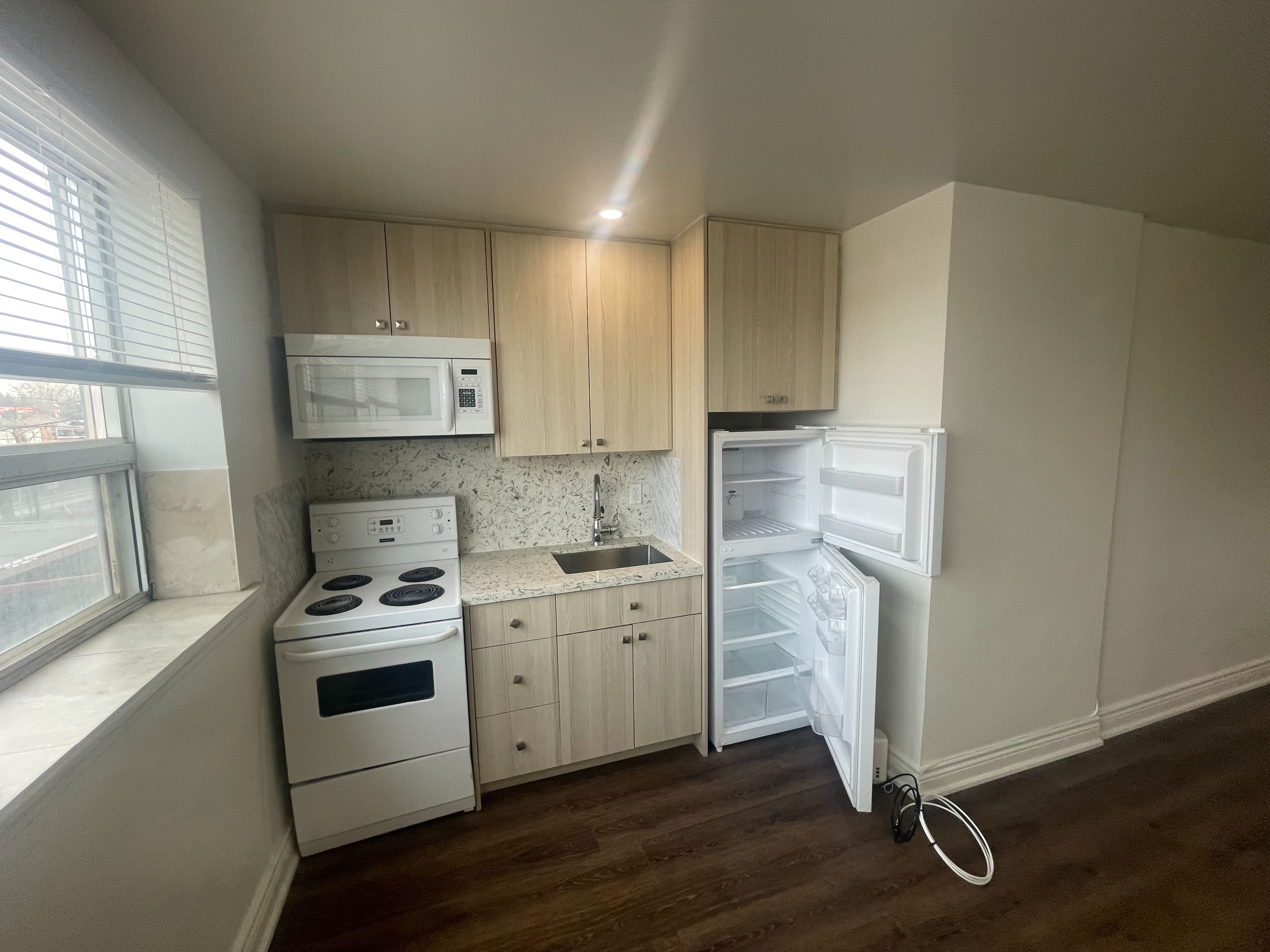 Renovated bachelor apartment above store. Clean, bright and spacious. Quartz counter in the kitchen, professionally painted and laminate flooring throughout. Suitable for a single professional. In the community of wexford-maryvale. Great safe neighbourhood. Easy access to hwy 404/dvp & 401. On ttc bus route, close to schools, shopping, restaurants, parks, places of worship, and library.