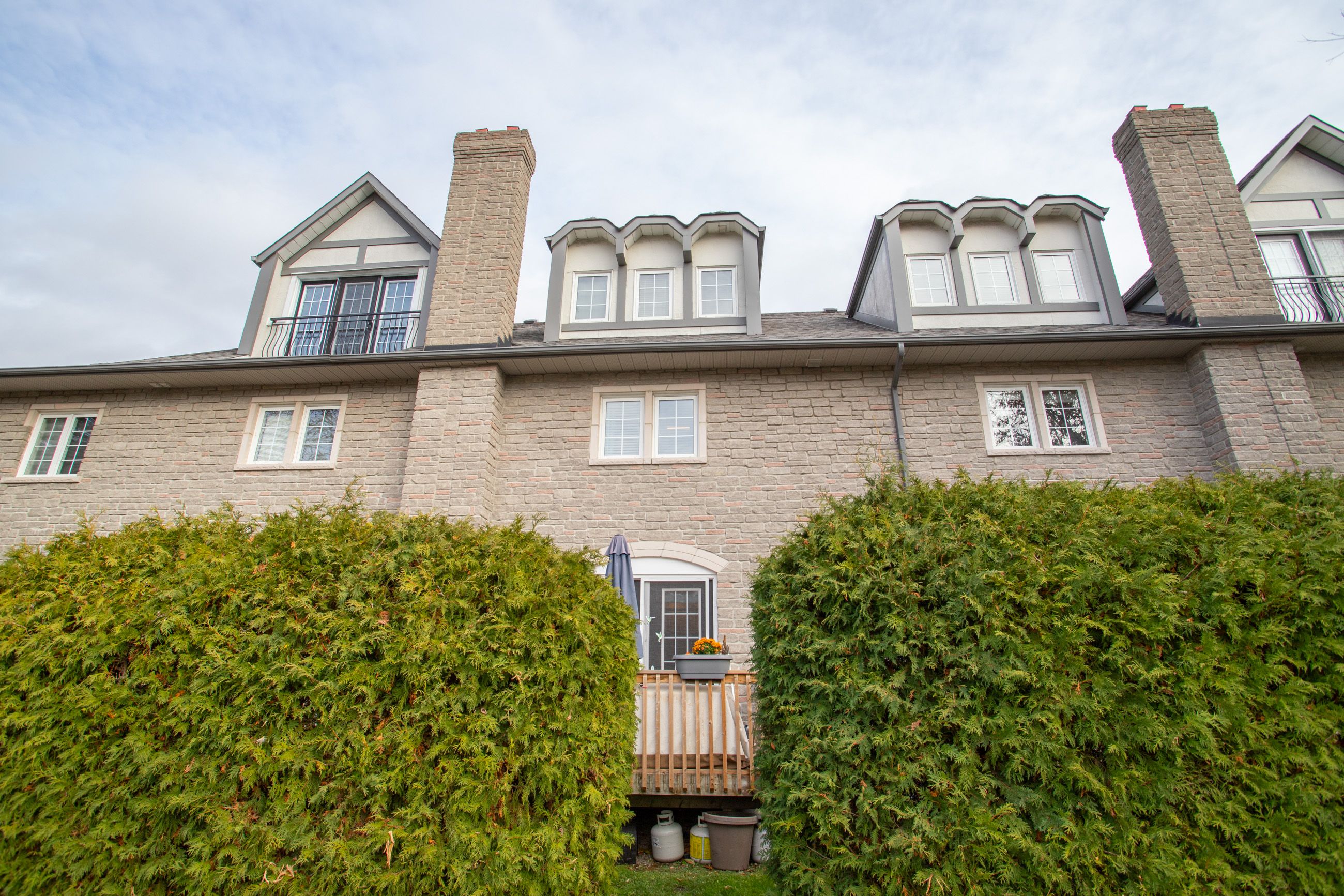 This outstanding executive townhouse with parking for 2 is ideally situated in the best block of chateau by the park. Built by coughlan homes & spanning over 2,000 square feet across three generous floors plus a finished basement, the home features an open-concept main level with a formal dining room, a well-equipped kitchen and a family room complete with a gas fireplace. French doors open to a private west-facing deck, perfect for entertaining or unwinding. Upstairs, the second floor offers two large bedrooms-one with two walk-in closets & a four-piece bathroom, and a convenient laundry room. The entire third floor is dedicated to the luxurious primary bedroom suite, boasting a sitting area, a four-piece ensuite, his and hers closets, and a juliette balcony. The lower level provides a spacious recreation area, ample storage, a two-piece bathroom, and direct access to heated underground parking with two side-by-side spots at the door and an additional spot close by. Water tap for washing your car. Kitchen-aid kitchen appliances are still under warranty, and recent upgrades include new two pc baths. Every level features a bathroom, and the property has very low annual heating and hydro costs. The complex is well maintained with all exterior maintenance-roof, doors, decks, tree replacement, and grass cutting-handled for you, supported by a large reserve fund for ongoing upkeep. Residents enjoy a range of amenities, including rogers xfinity cable, high-speed internet, water, parking, snow removal, landscaping, and exterior window maintenance included in the condo fees. The community offers a newly renovated party room for gatherings and a private mailroom for convenience, as well as abundant visitor parking and easy access to transportation and shopping, including quick entry to highway 401. This well-appointed home presents a unique opportunity for spacious, comfortable, and maintenance-free living in a prime location. Be sure to click through the virtual tour.