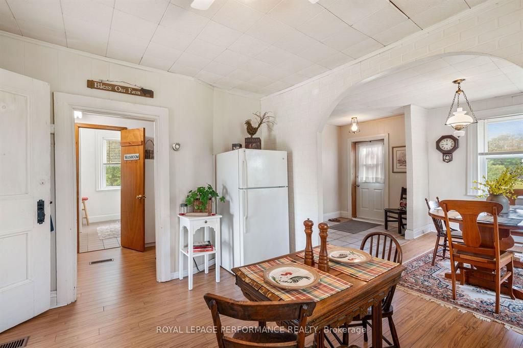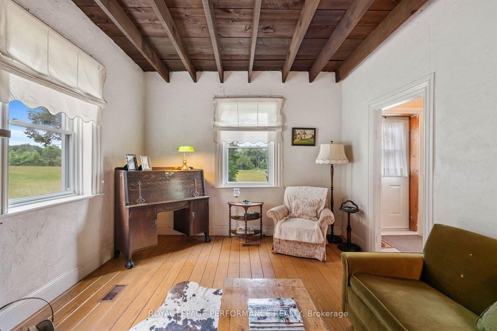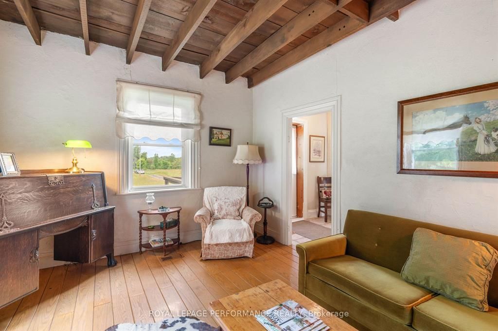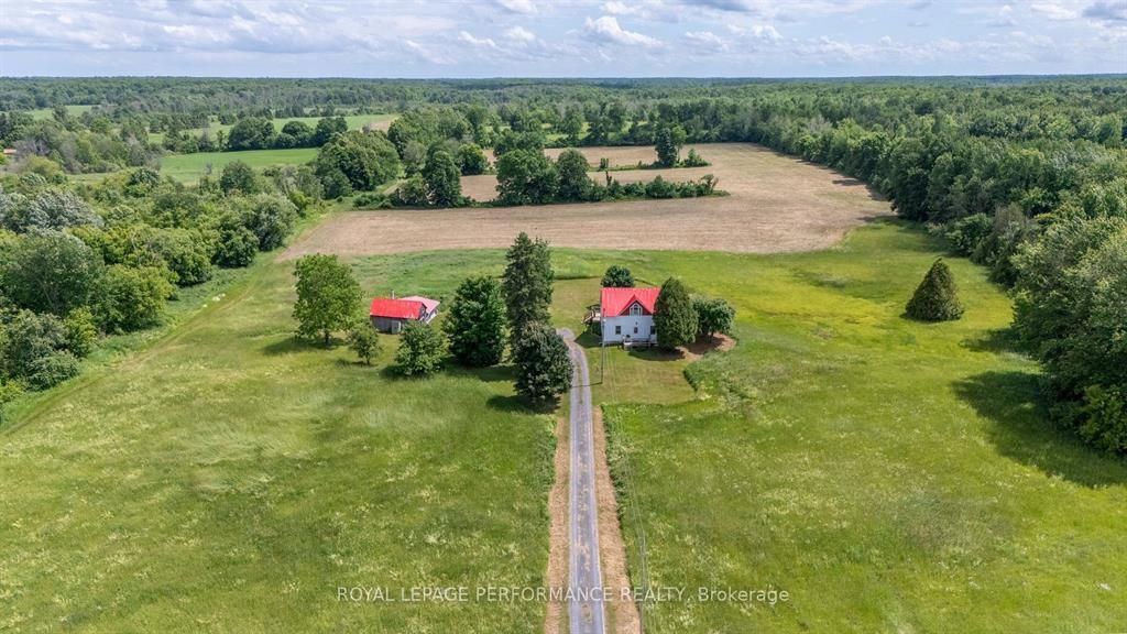 Well maintained 1850's log home with 85 acres (as per mpac) with approximately 35 acres workable, 40 acres of bush, and the balance is low lying at the south end where the degrasse river drain is the southern border. Main floor contains living room with fireplace, dining room, kitchen, 1-3pc (walk-in shower) laundry plus an addition which contains family room with wood burning stove.. This section has patio doors opening onto a south facing deck (canopy gazebo). Second floor contains a large primary + 2 other bedrooms. Detached garage/workshop/woodshed. Included in price - stove, refrigerator, dishwasher, microwave + washer/dryer combo unit. The workable land is leased until the end of the 2025 crop year + farmer must be allowed to harvest the crop.