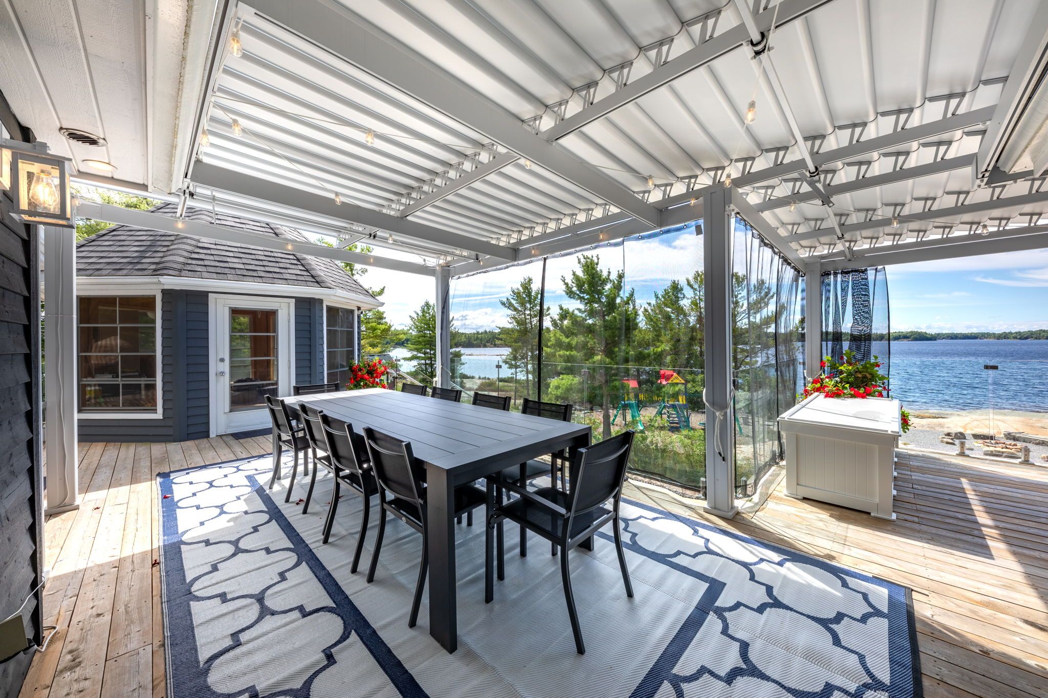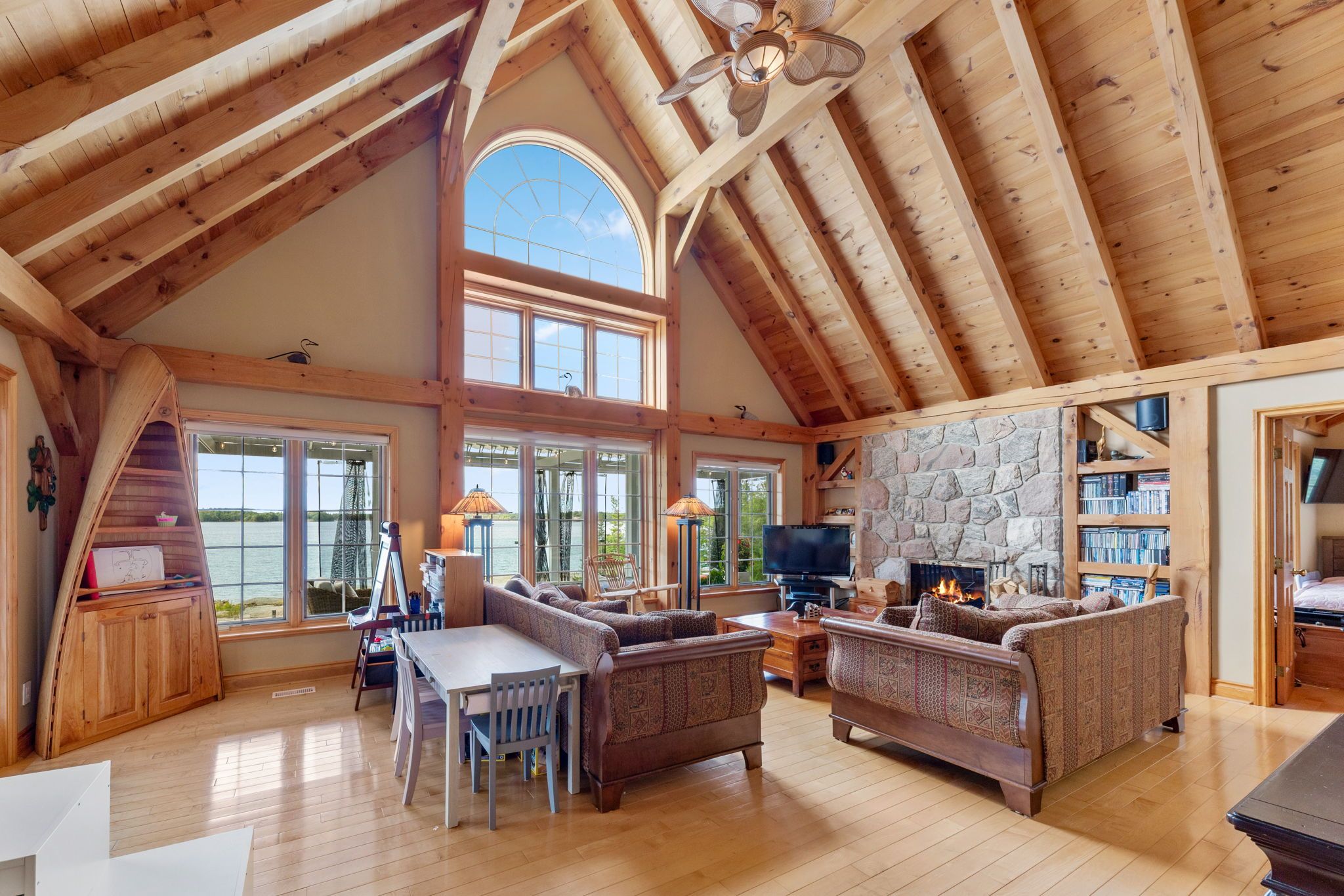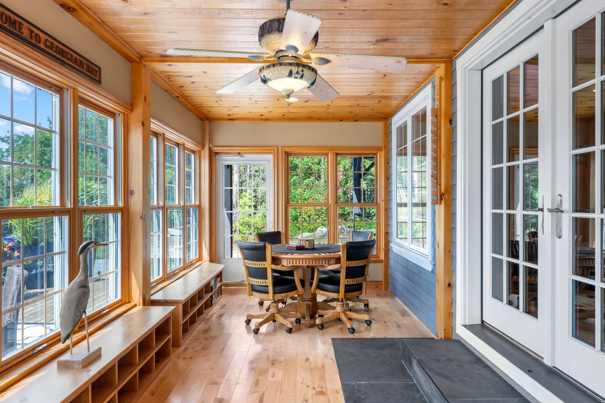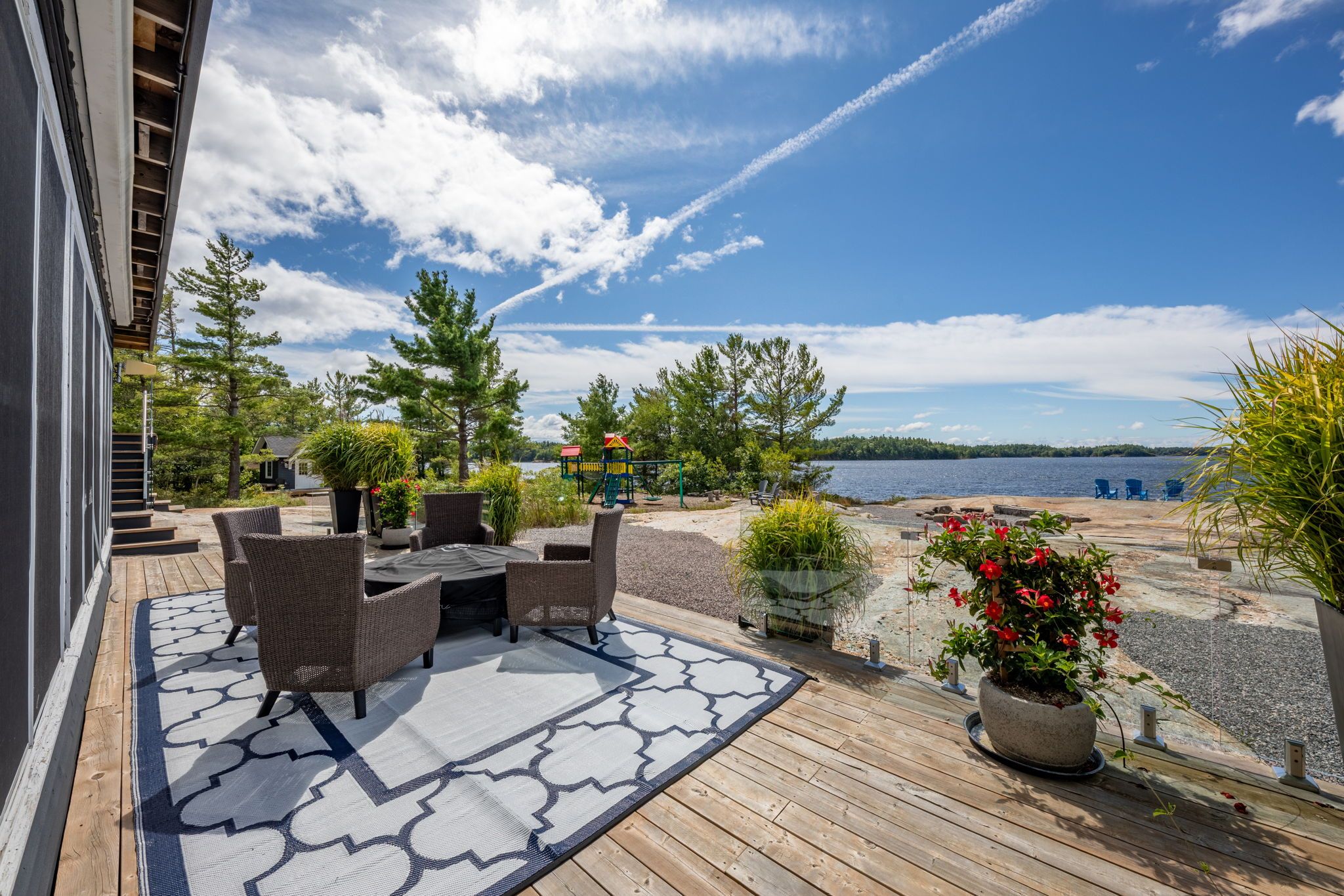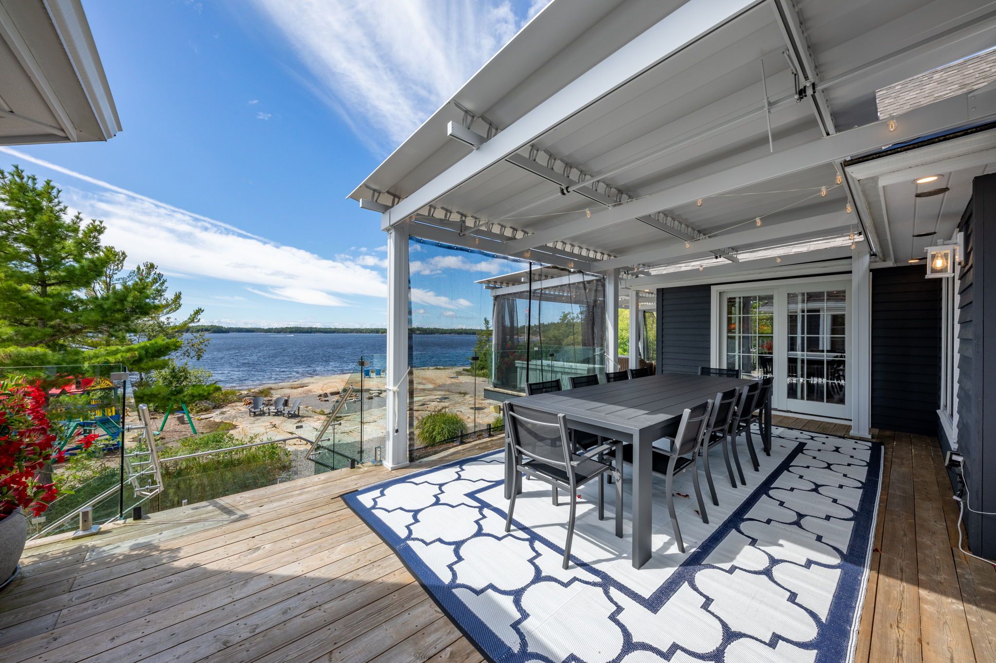 This property is truly a private paradise on the clear waters of georgian bay, where 20 spectacular acres of trees, granite and over 1700 feet of waterfront await your arrival. This exceptional 2 1/2 storey, 5-bedroom, 4-bathroom post and beam cottage offers the perfect blend of rustic charm and modern comfort, creating an unforgettable lakeside sanctuary. Your adventure begins with a scenic 15-20 minute boat ride from honey harbour marinas, delivering you to this secluded haven near the musquash river mouth. Enjoy the convenience of multiple docking systems and a floating double wet boathouse. The granite shore deck near the sandy beach area creates an elegant transition to the property. Landscaping combines crushed granite pathways with natural exposed rock formations creating stunning visual interest. Glass railings grace the expansive decks, providing unobstructed views and a louvered pergola system on the upper deck allows you to curate your outdoor experience. The main floor has a primary bedroom with ensuite, complemented by a convenient 2-piece bathroom and generous storage areas. The heart of the home features an open concept kitchen/dining area with spacious living room and a cozy wood-burning fireplace. A secondary sitting room provides additional gathering space for quiet moments. The walkout basement level transforms into an entertainer's dream with two additional bedrooms, bathroom facilities with separate shower, and a games room featuring its own wood-burning fireplace. The sunroom offers breathtaking water views and serves as the perfect morning coffee spot. A charming bunkie provides additional guest accommodation or serves as a peaceful retreat space. The western exposure ensures spectacular sunsets that paint the sky each evening, creating magical moments that will become treasured family memories. This remarkable waterfront estate offers the ultimate georgian bay experience, where natural beauty meets thoughtful design in perfect harmony.