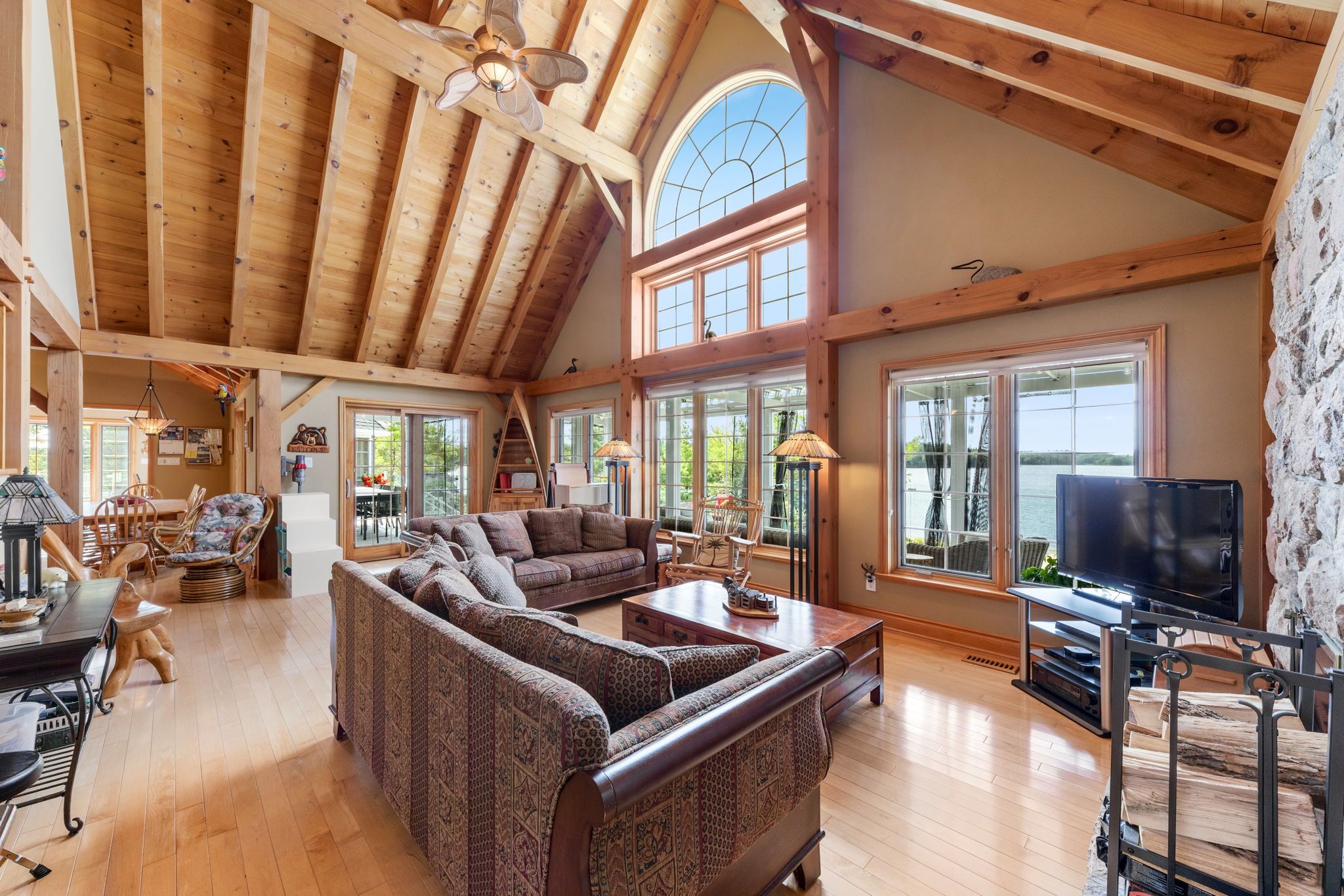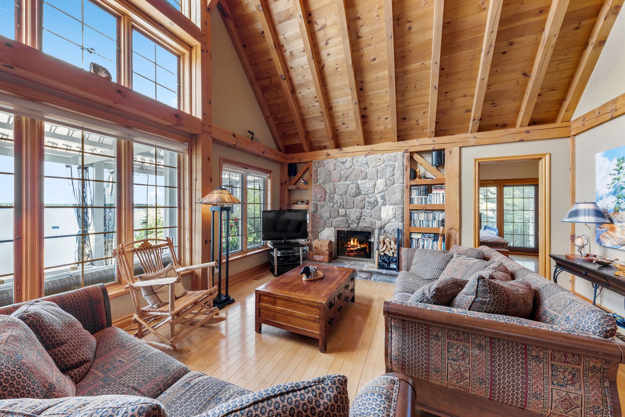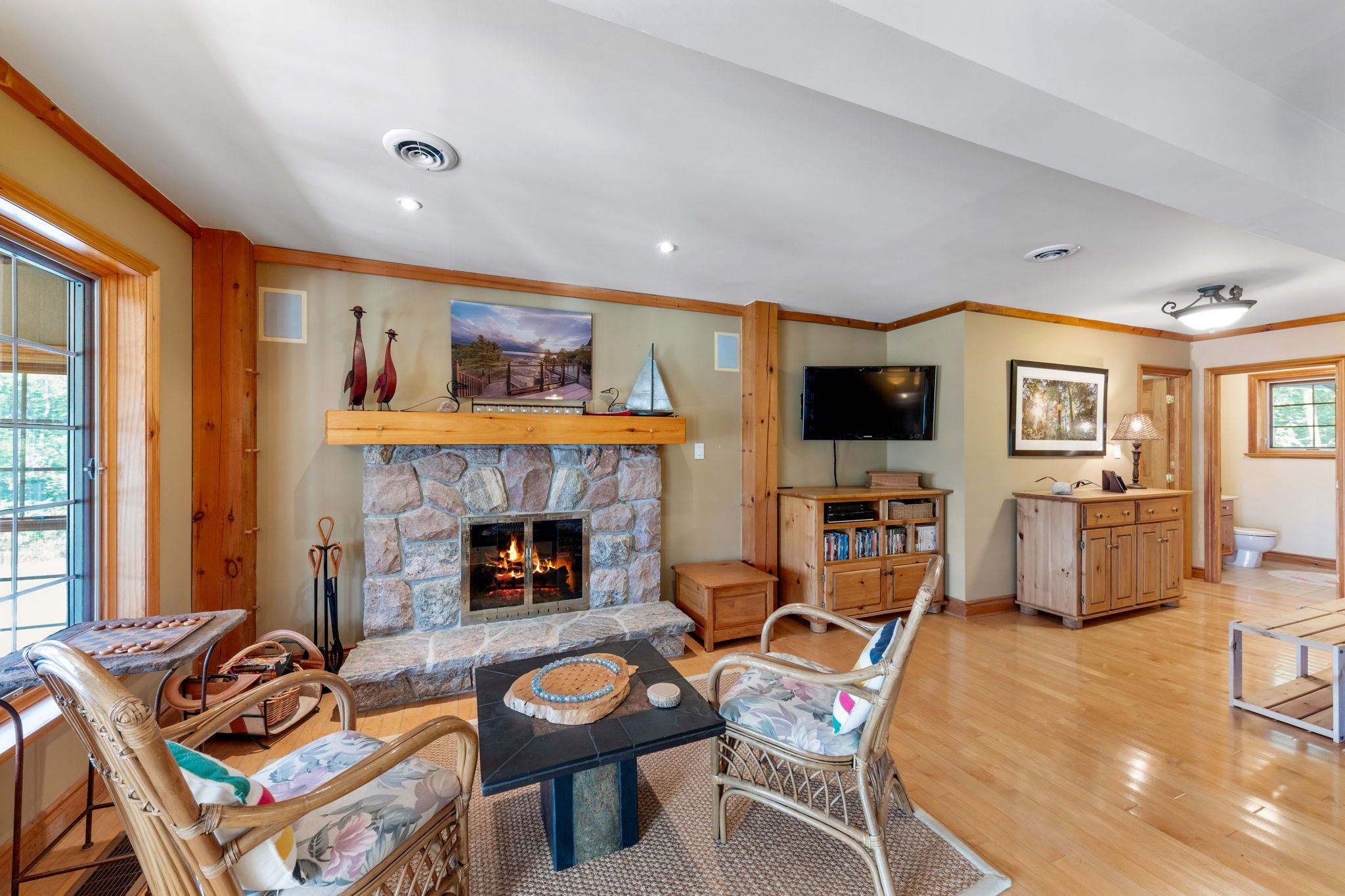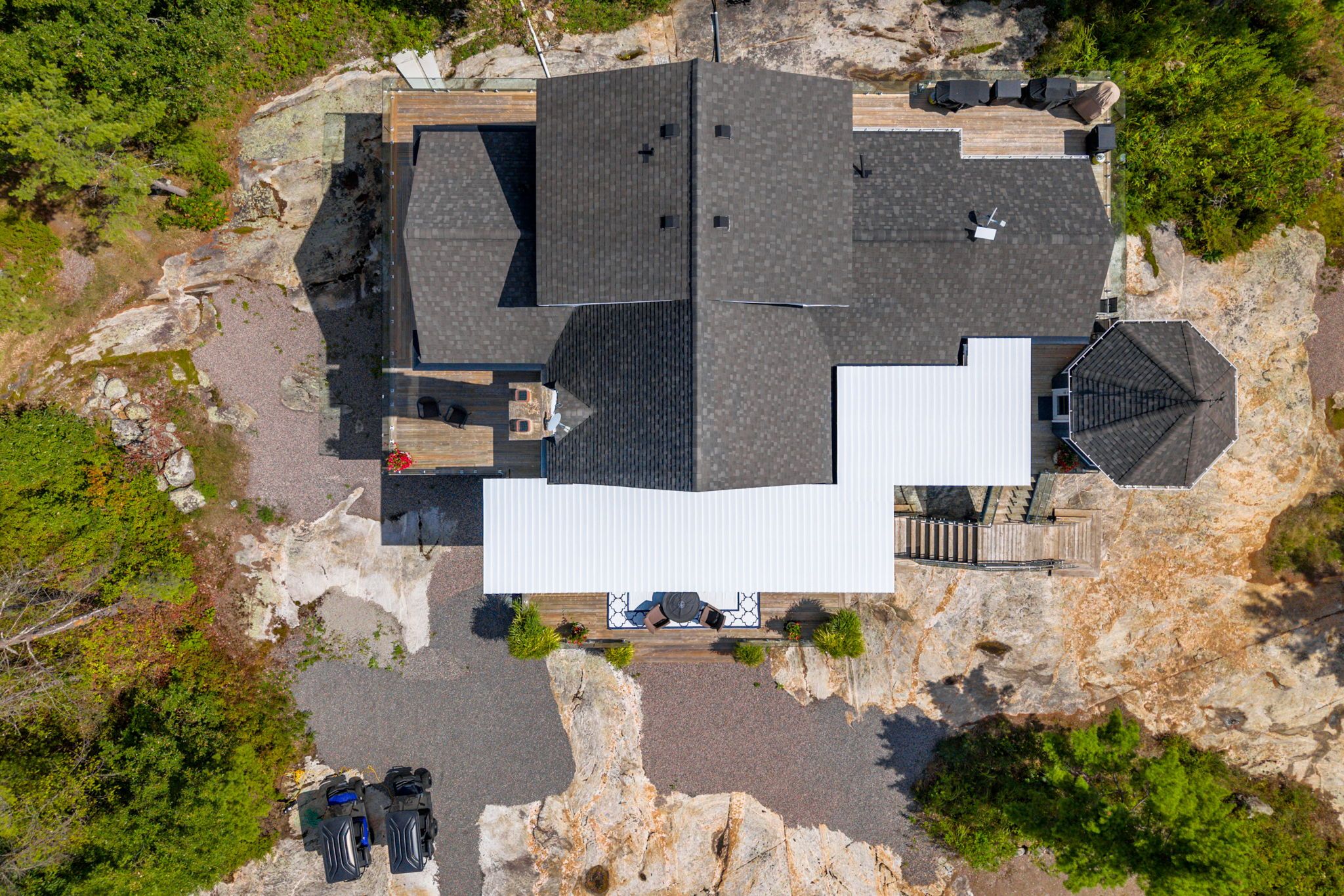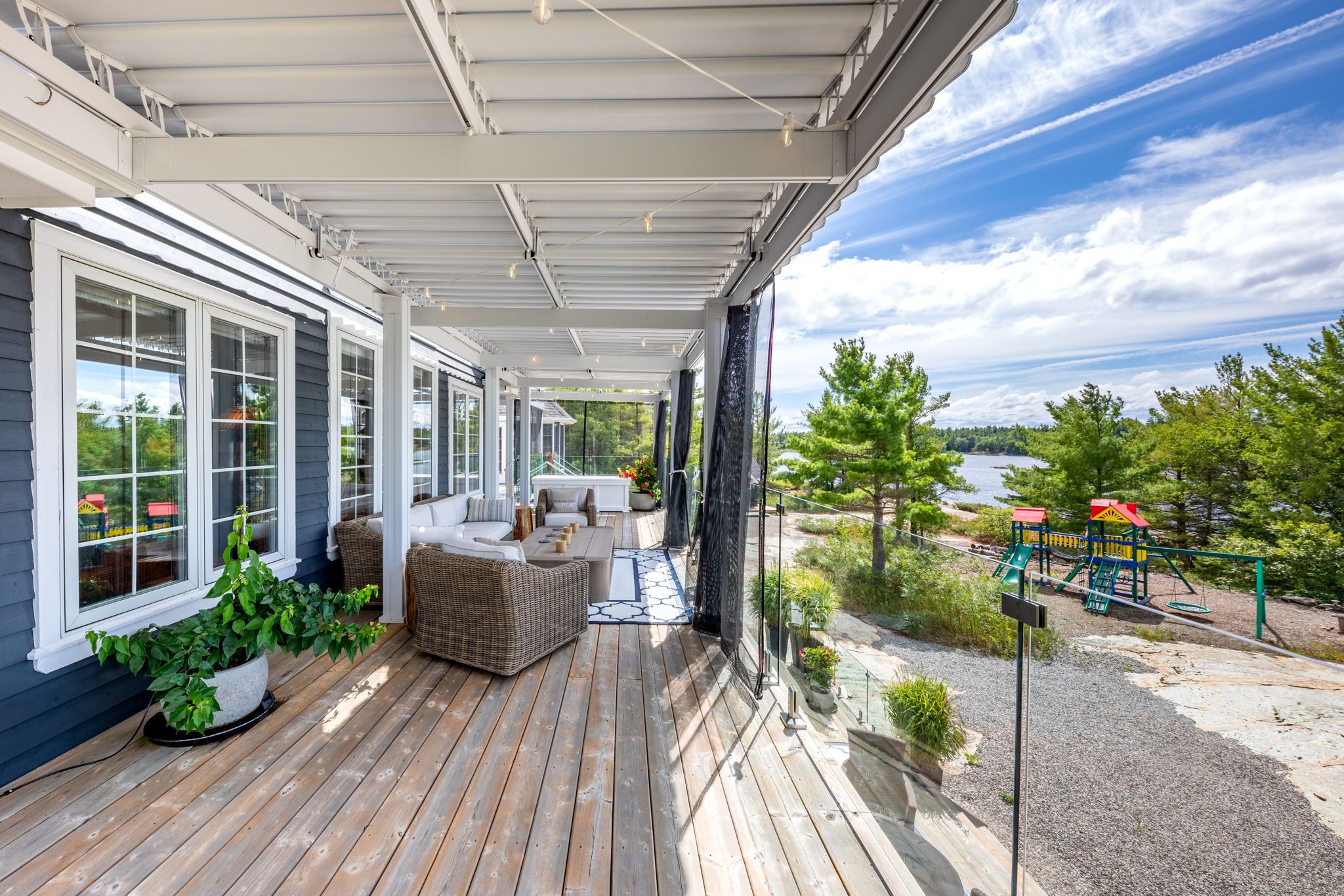 This property is truly a private paradise on the clear waters of georgian bay, where 20 spectacular acres of trees, granite and over 1700 feet of waterfront await your arrival. This exceptional 2 1/2 storey, 5-bedroom, 4-bathroom post and beam cottage offers the perfect blend of rustic charm and modern comfort, creating an unforgettable lakeside sanctuary. Your adventure begins with a scenic 15-20 minute boat ride from honey harbour marinas, delivering you to this secluded haven near the musquash river mouth. Enjoy the convenience of multiple docking systems and a floating double wet boathouse. The granite shore deck near the sandy beach area creates an elegant transition to the property. Landscaping combines crushed granite pathways with natural exposed rock formations creating stunning visual interest. Glass railings grace the expansive decks, providing unobstructed views and a louvered pergola system on the upper deck allows you to curate your outdoor experience. The main floor has a primary bedroom with ensuite, complemented by a convenient 2-piece bathroom and generous storage areas. The heart of the home features an open concept kitchen/dining area with spacious living room and a cozy wood-burning fireplace. A secondary sitting room provides additional gathering space for quiet moments. The walkout basement level transforms into an entertainer's dream with two additional bedrooms, bathroom facilities with separate shower, and a games room featuring its own wood-burning fireplace. The sunroom offers breathtaking water views and serves as the perfect morning coffee spot. A charming bunkie provides additional guest accommodation or serves as a peaceful retreat space. The western exposure ensures spectacular sunsets that paint the sky each evening, creating magical moments that will become treasured family memories. This remarkable waterfront estate offers the ultimate georgian bay experience, where natural beauty meets thoughtful design in perfect harmony.