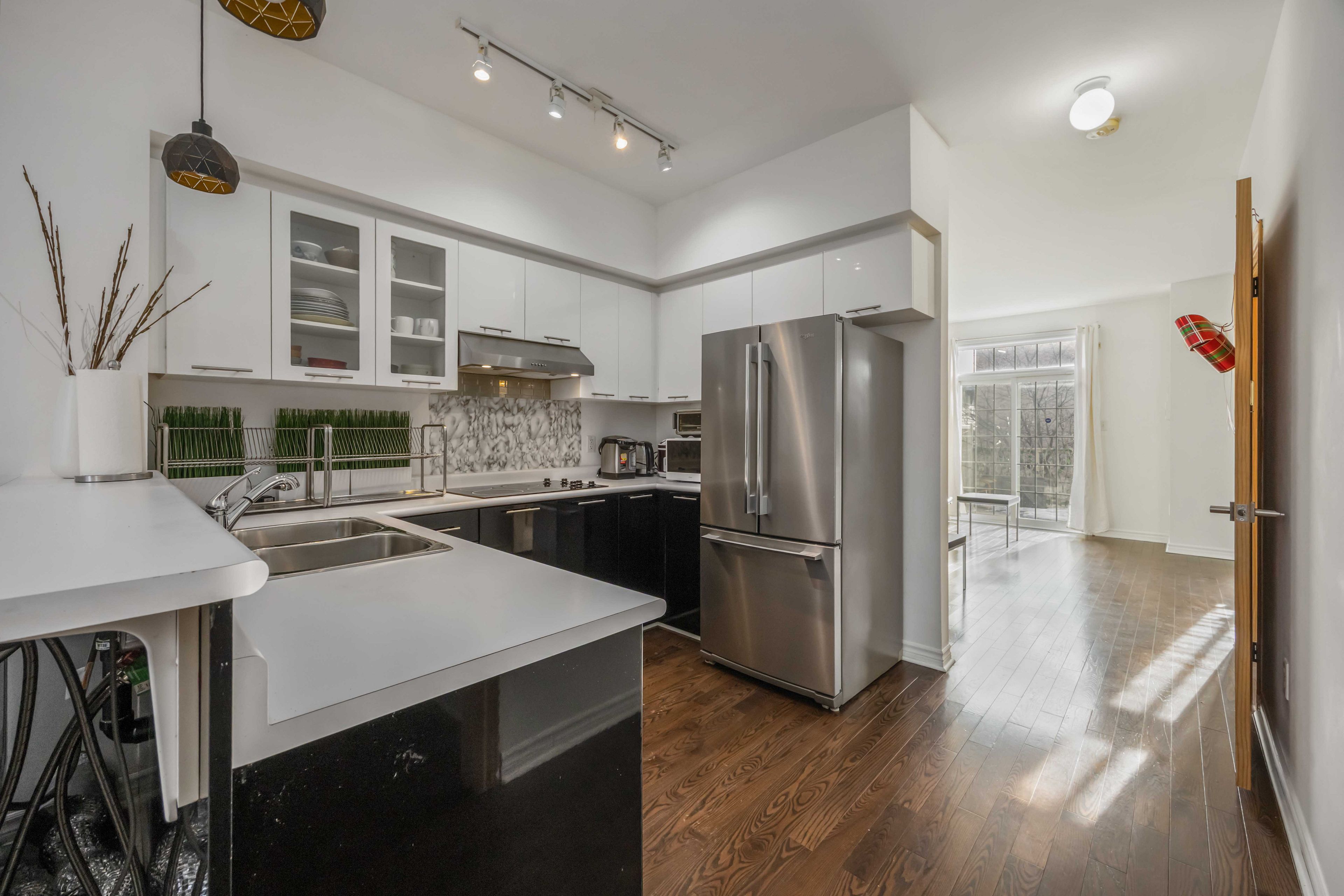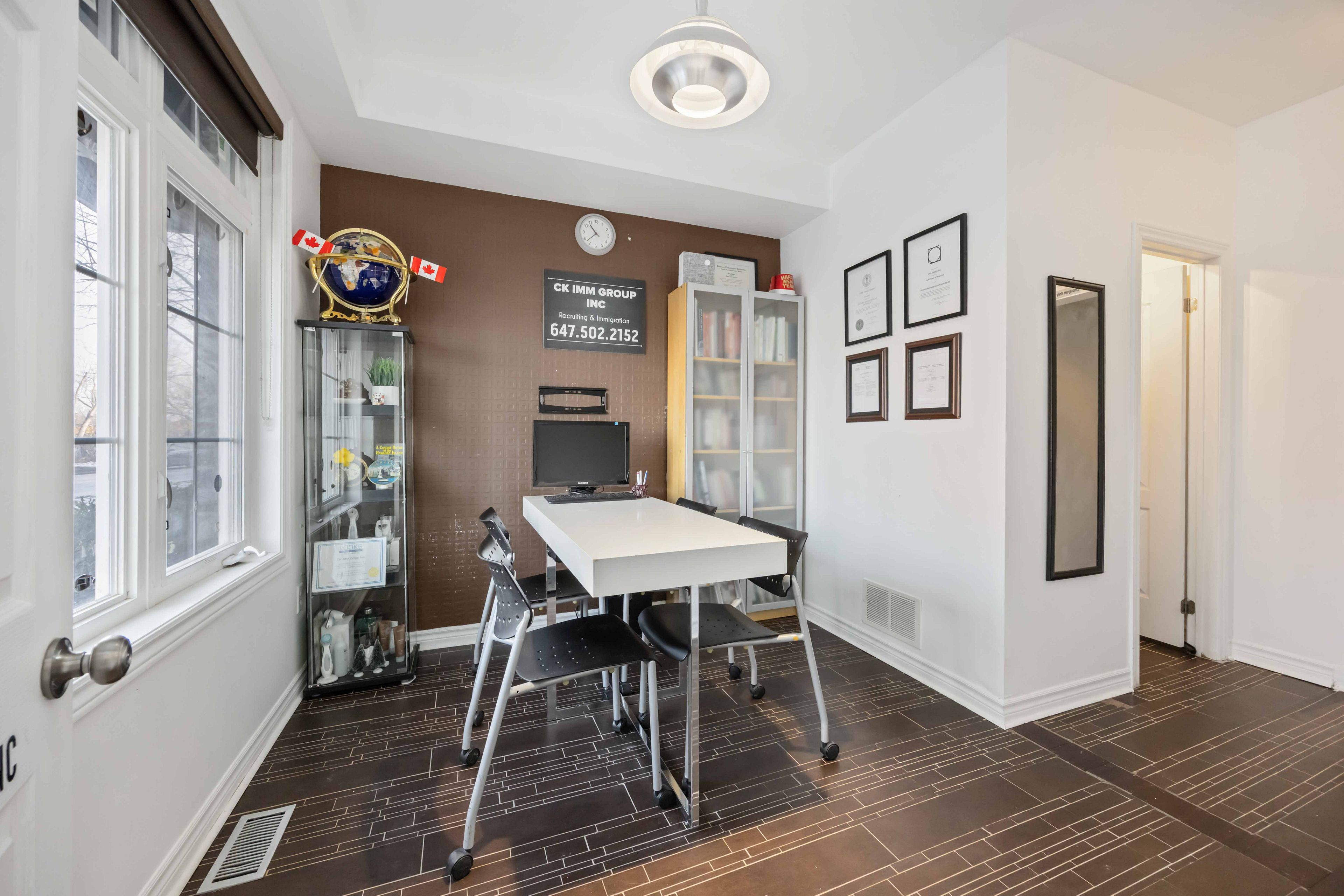 Welcome to this versatile and beautifully maintained three bedroom, two bathroom townhome perfectly situated in the highly convenient west/401 corridor. Whether you're working from home, running a professional business, or commuting downtown, this property offers the flexibility and functionality today's lifestyle demands. The main floor features a dedicated professional office space, ideal for entrepreneurs, consultants, or anyone seeking a private, client ready workspace. The converted garage adds even more versatility use it as an expanded office, an additional living area, or explore its potential as a self contained suite. For investors, this layout presents exceptional opportunity: live on the upper levels while keeping the main floor as a home office, or rent the space for additional income. With its configuration and location, the property also offers airbnb potential, making it an attractive option for those seeking strong returns. The second floor showcases a sleek, modern kitchen with clean lines and contemporary finishes, flowing seamlessly into an open concept living and dining area. The home is carpet free, featuring hardwood flooring throughout for a refined and low maintenance lifestyle. Step out onto the spacious balcony, perfect for summer evenings, outdoor dining, and weekend bbqs. Located just steps from banks, grocery stores, transit, and the weston go station, and minutes from highway 401, this home delivers unmatched convenience for commuters and families alike. Covered parking adds to the comfort and practicality of this exceptional property. A rare opportunity to own a flexible, income friendly townhome in very convenient location. Don't miss out!