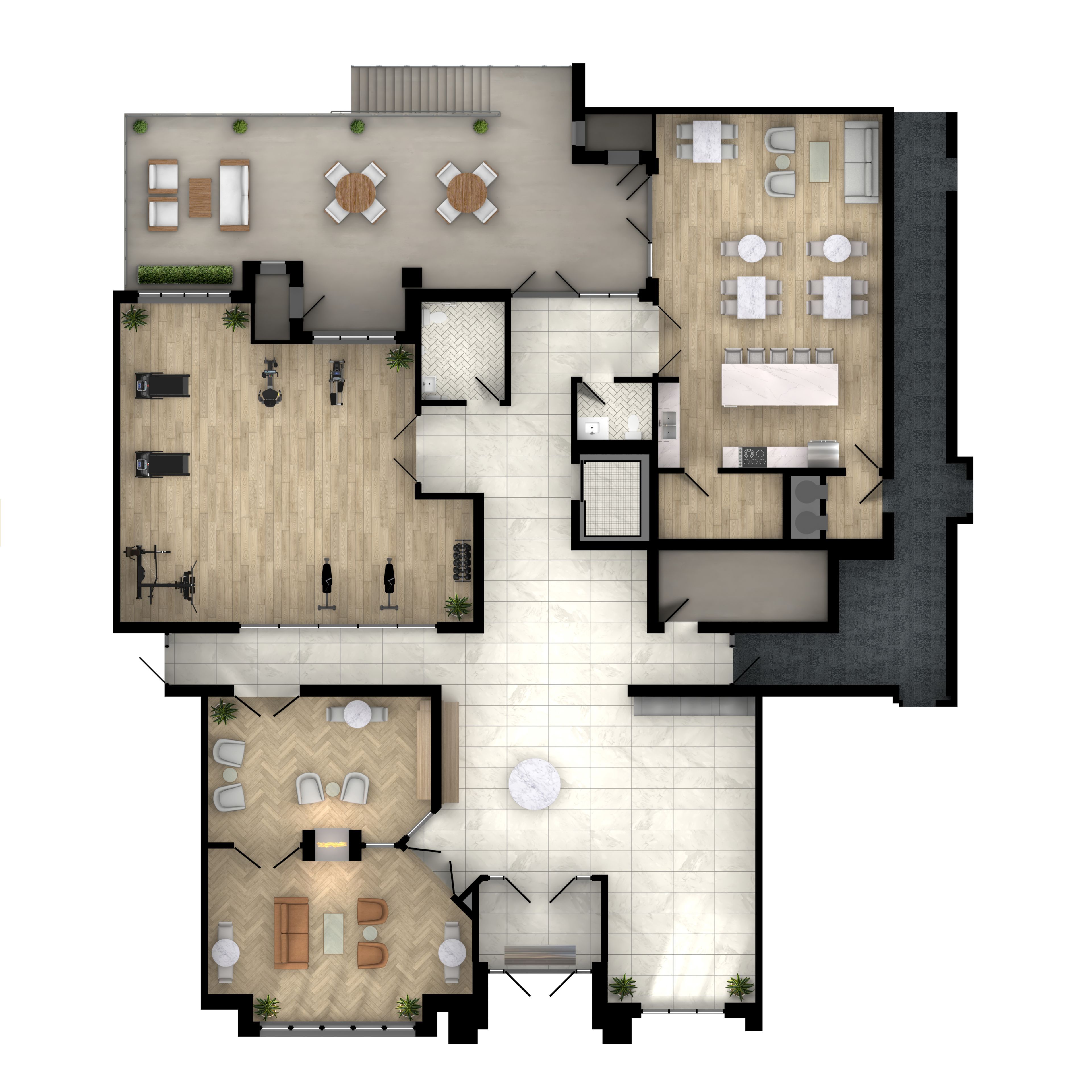 • Enjoy exclusive amenities like a fitness studio and landscaped terrace.