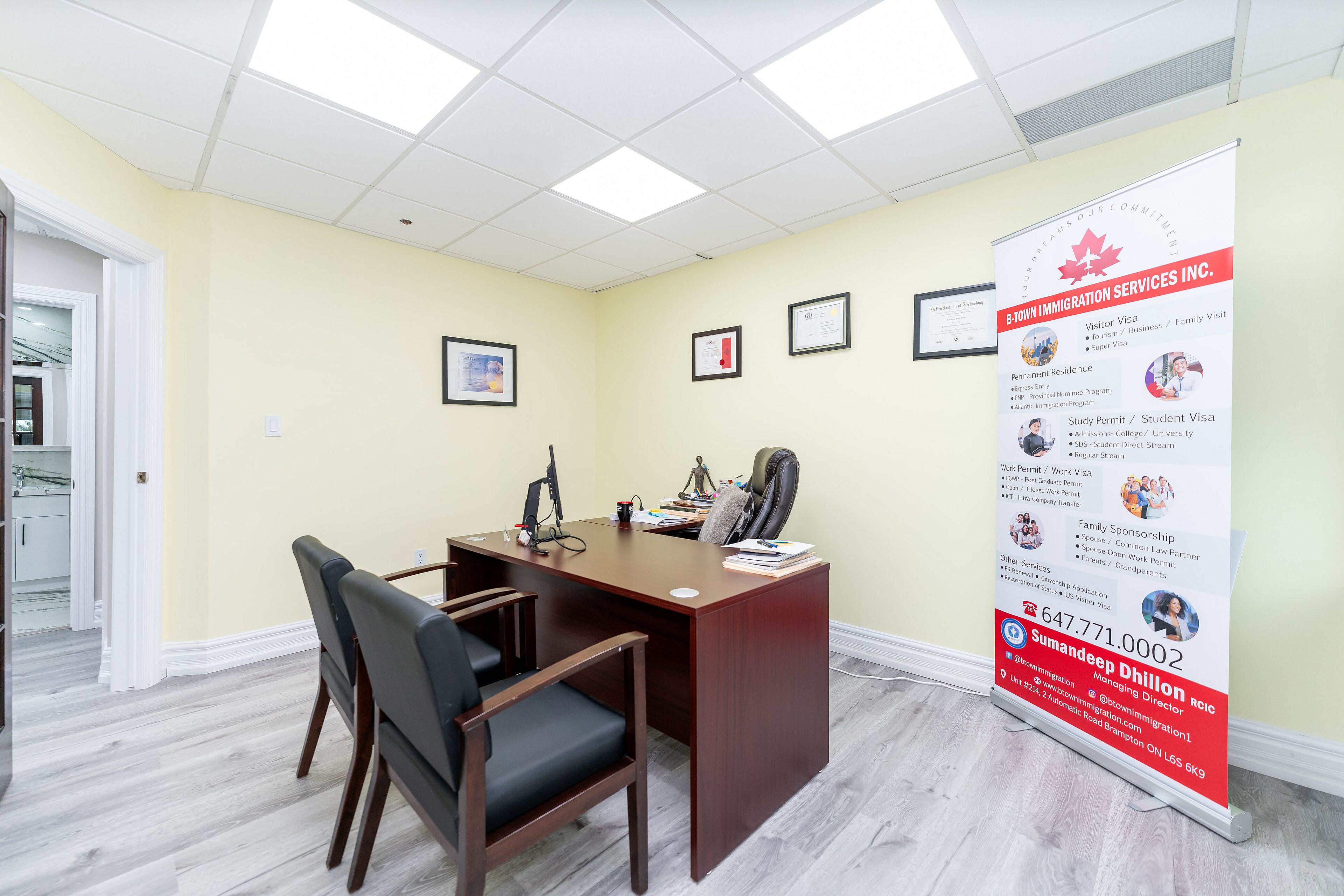 1868 sq ft (as per mpac) corner unit !!! Attention all professionals looking to start your own business, your search ends here. Rare opportunity to own a recently renovated office space with high end finishes. This huge unit consists of a welcoming reception & waiting area, 7 offices, his & hers separate washrooms and a separate kitchenette. Excellent location in the heart of brampton. Mins to 407, airport and steps to bus stop. Rare to find for this kind of opportunity to grow your business. Plenty of parking. Lots of amenities nearby include restaurants, home depot, canadian tire, walmart & gas station. Corner unit brings in a lot of natural light. Extremely clean & well kept. Great opportunity for investors or owner-users in a high-demand commercial corridor. For accuracy buyer or their agent to confirm total area, taxes, maintenance fees and permitted uses. **bonus** 4 offices currently leased month to month (willing to stay or vacate).
