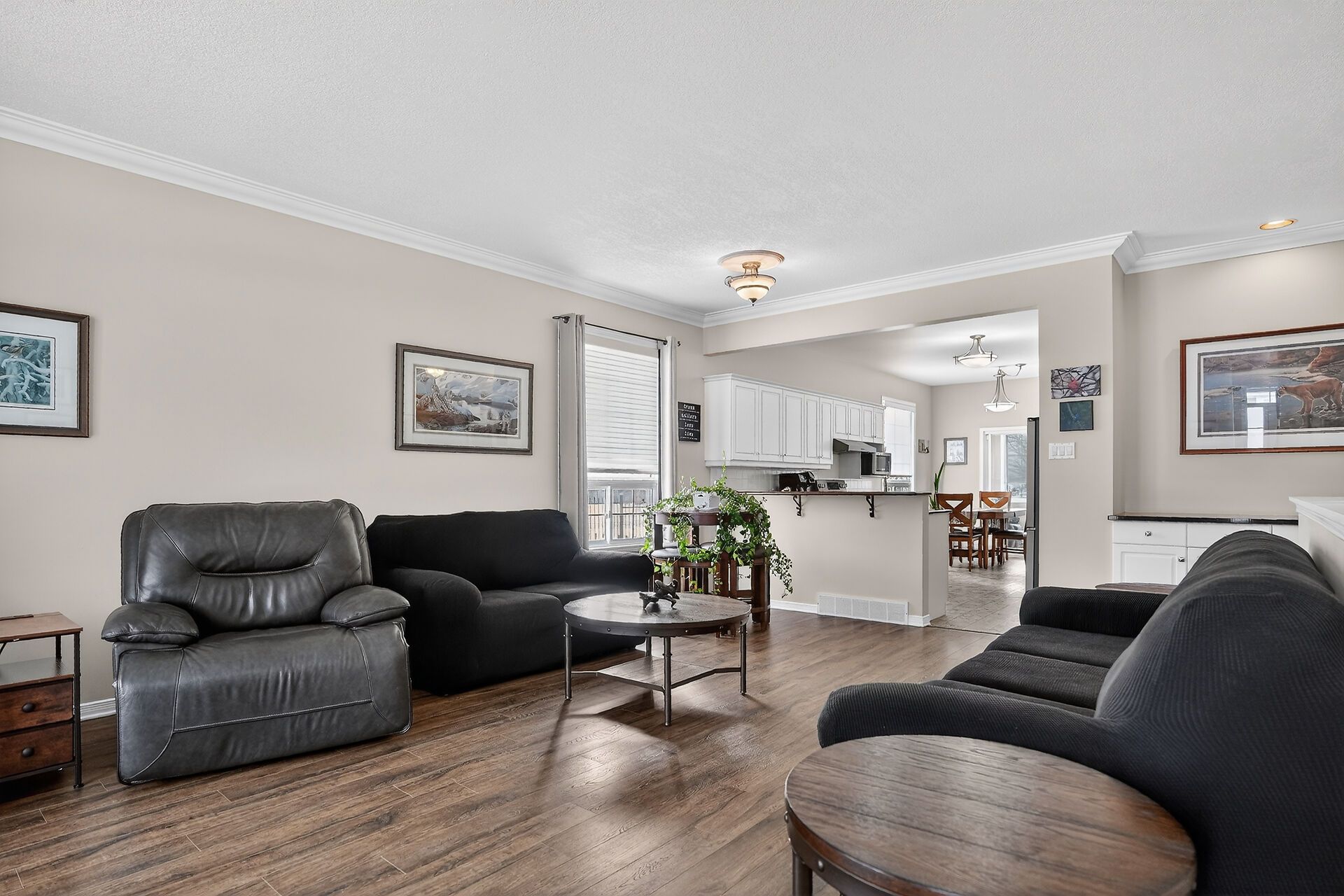 Much larger than it appears, this meticulously maintained 3+1 bedroom, 3-bathroom home delivers exceptional space, comfort, and peace of mind thanks to extensive updates completed over the past 9yrs. Major mechanicals and big-ticket items have already been taken care of, including; furnace, a/c, rented water heater, lighting, flooring, appliances, deck, shed, and garage doors-a rare turnkey opportunity. The home also features a euroshield rubber shingle (which can last up to 50yrs). A beautifully kept garden with a built-in sprinkler system creates inviting curb appeal and low-maintenance outdoor enjoyment. Inside, the thoughtful layout offers generous living areas and endless storage throughout. The primary bedroom features a 4-piece ensuite, providing a private retreat. The additional bedrooms are bright and versatile, with the lower-level bedroom ideal for guests. An additional bonus room downstairs offers a great space for an office or sewing space. Convenience is built in with inside access from the garage, making daily life easier in every season. This is a home that has been cared for with pride-updated, spacious, and ready for its next chapter.