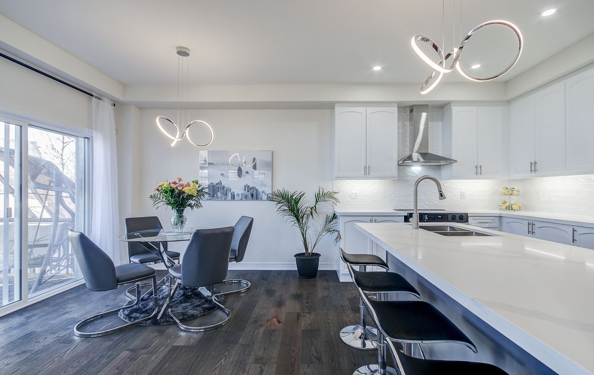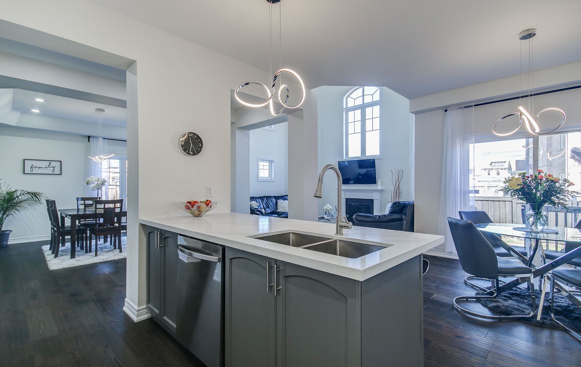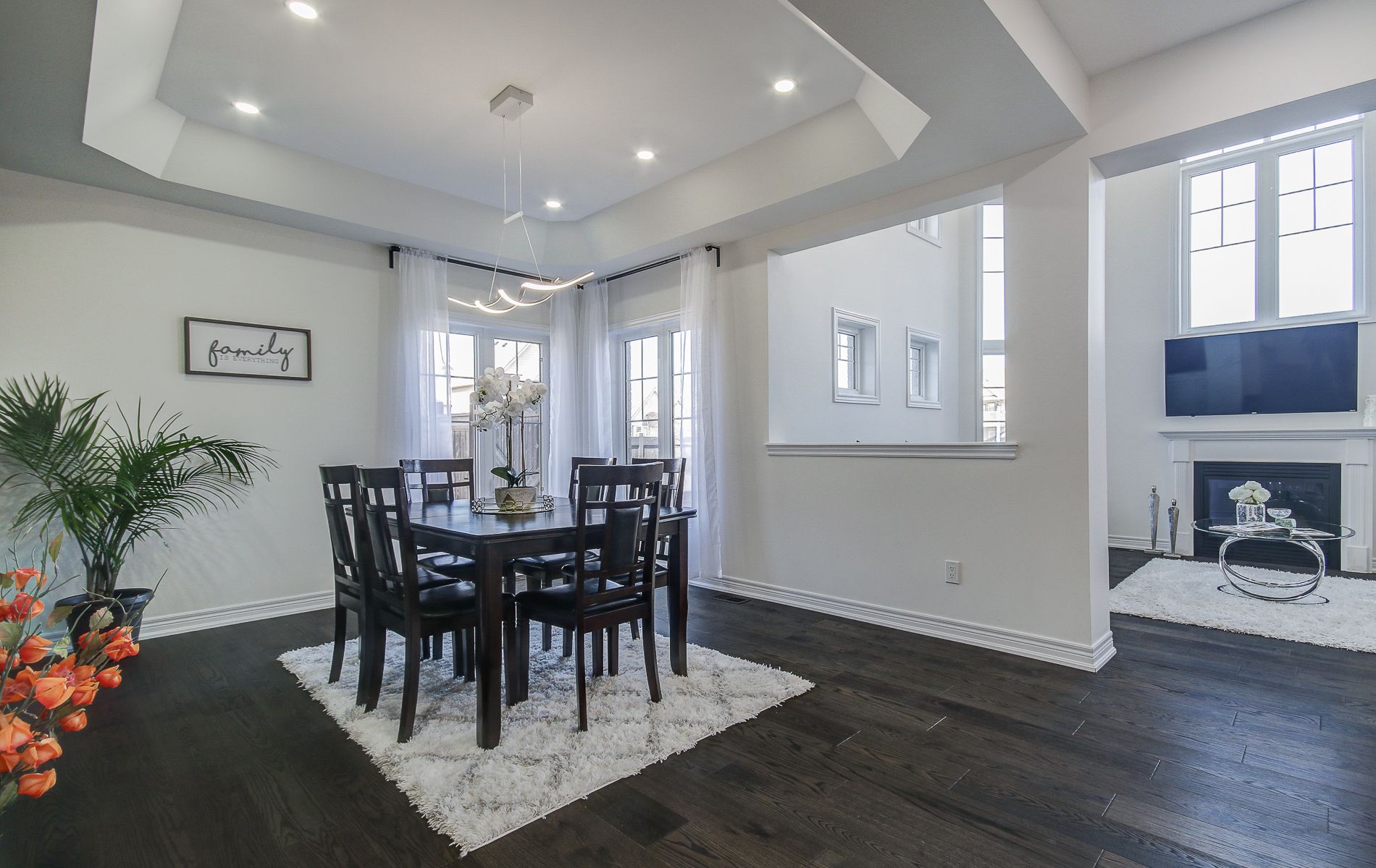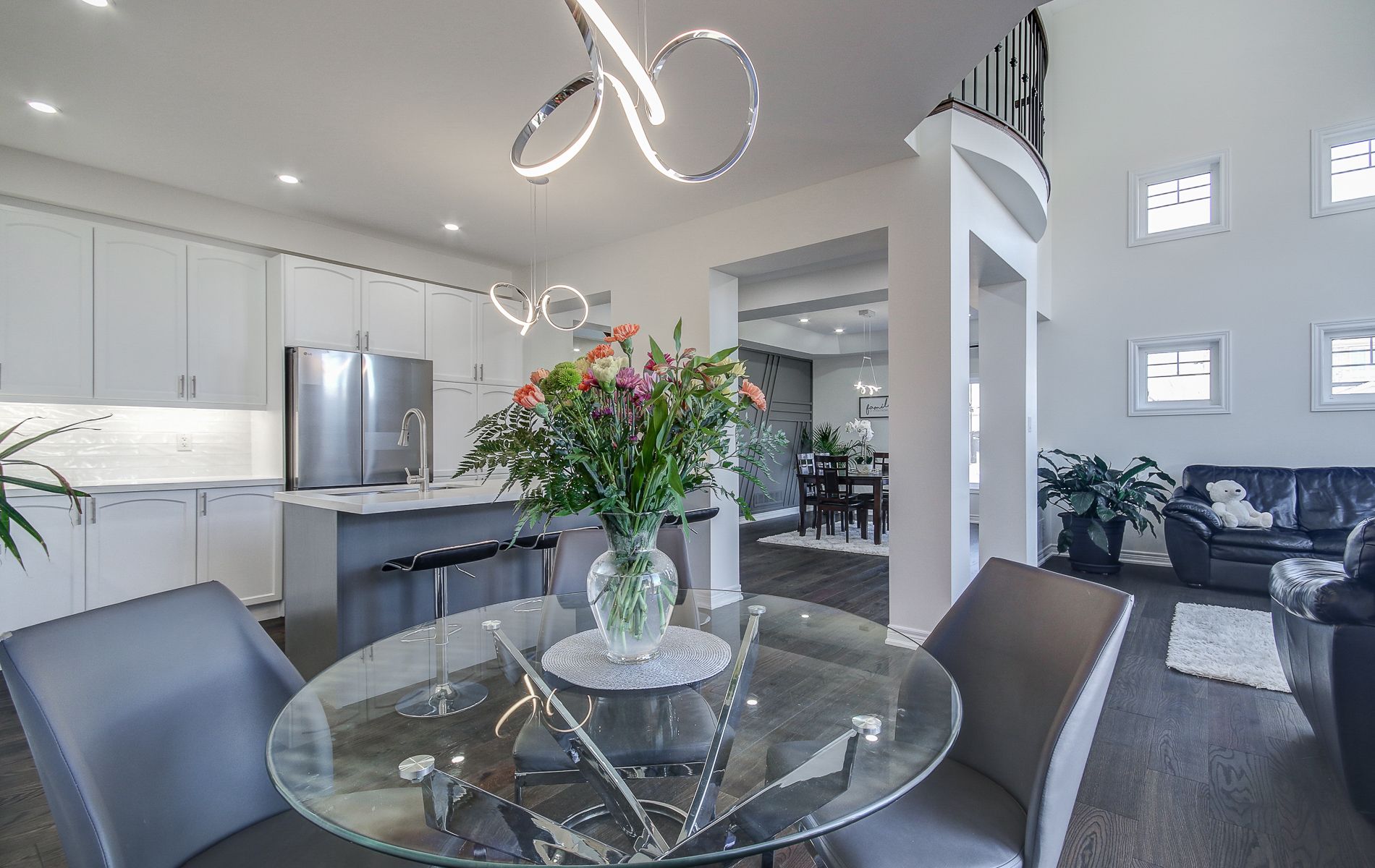 Welcome to this stunning over 3700 sq ft of living space, fully renovated detached home; 4+2 bedrooms, 4 bathrooms, 2 kitchens offering an ideal blend of modern upgrades & functional living spaces. With 4 spacious bedrooms + 2 additional bedrooms in the professionaly finished basement, this home is perfect for growing families or those looking for extra space. The open concept design on the main floor features 9-ft ceilings, with soaring 17-ft ceilings in the family room, creating an airy and inviting atmosphere. High-end finishes throughout include accent walls, sleek quartz countertops in the kitchen and all bathrooms, upgraded 2025 engineered floors that flow seamlessly throughout the home. The large kitchen is a chef's dream, with ample storage, huge breakfast bar, a modern 2 colour cabinets, quartz counter-tops, ceramic backsplash, 2025 stainless steel appliances. This home also features flat ceilings with pot-lights throughout, adding a contemporary touch. The main floor includes a laundry room with built-in shelving and a convenient quartz counter. The upgraded bathrooms offer a luxurious experience with modern fixtures and finishes. For cozy evenings, enjoy the warmth of gas fireplace in the family room or additional fireplace in the recreational room that add character to the living spaces. The professionally finished basement provides additional living space with two additional bedroom, large rec room and a 2nd modern kitchen, all with the potential for a separate entrance, making it ideal for multi-generational living or an income-generating suite. Other highlights include fresh paint, modern light fixtures and ample storage throughout the home. This property offers a blend of modern design, functionality, and potential, making it the perfect place to call home. Don't miss this impressive home in a peaceful, private community just minutes to the beaches of lake simcoe and the award winning briars resort.
