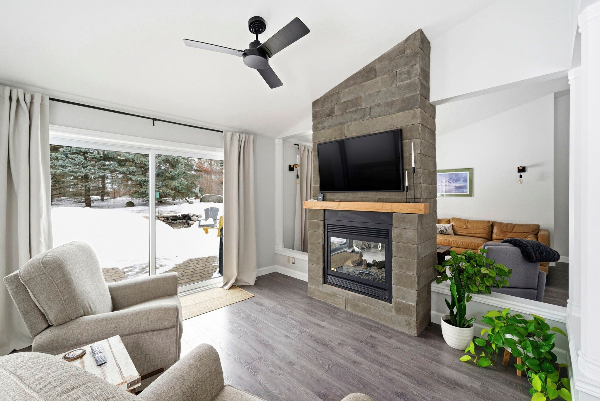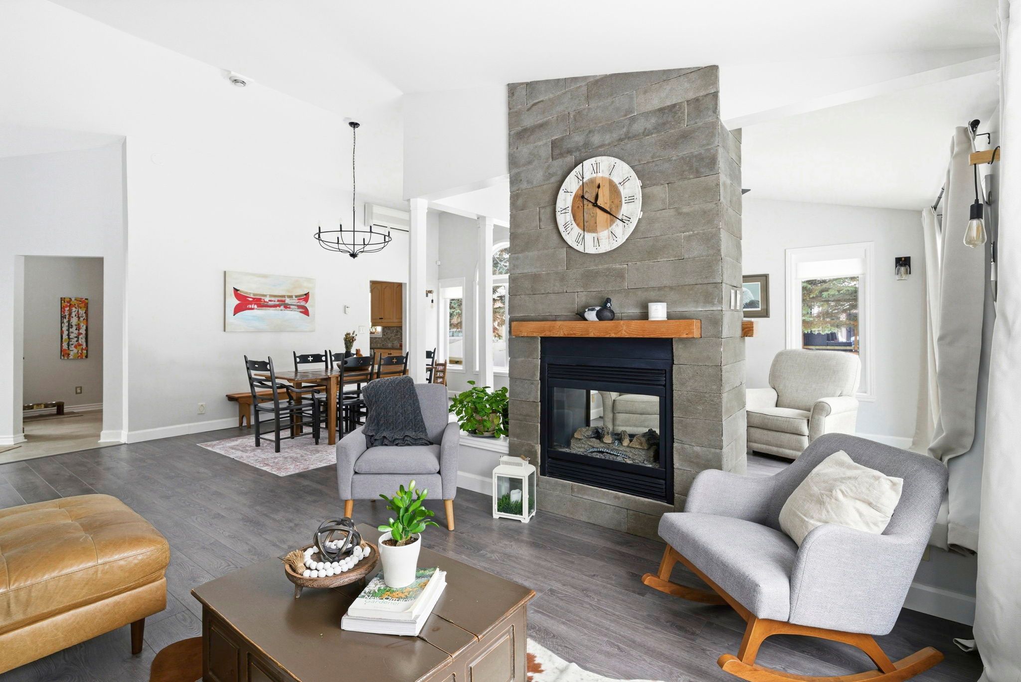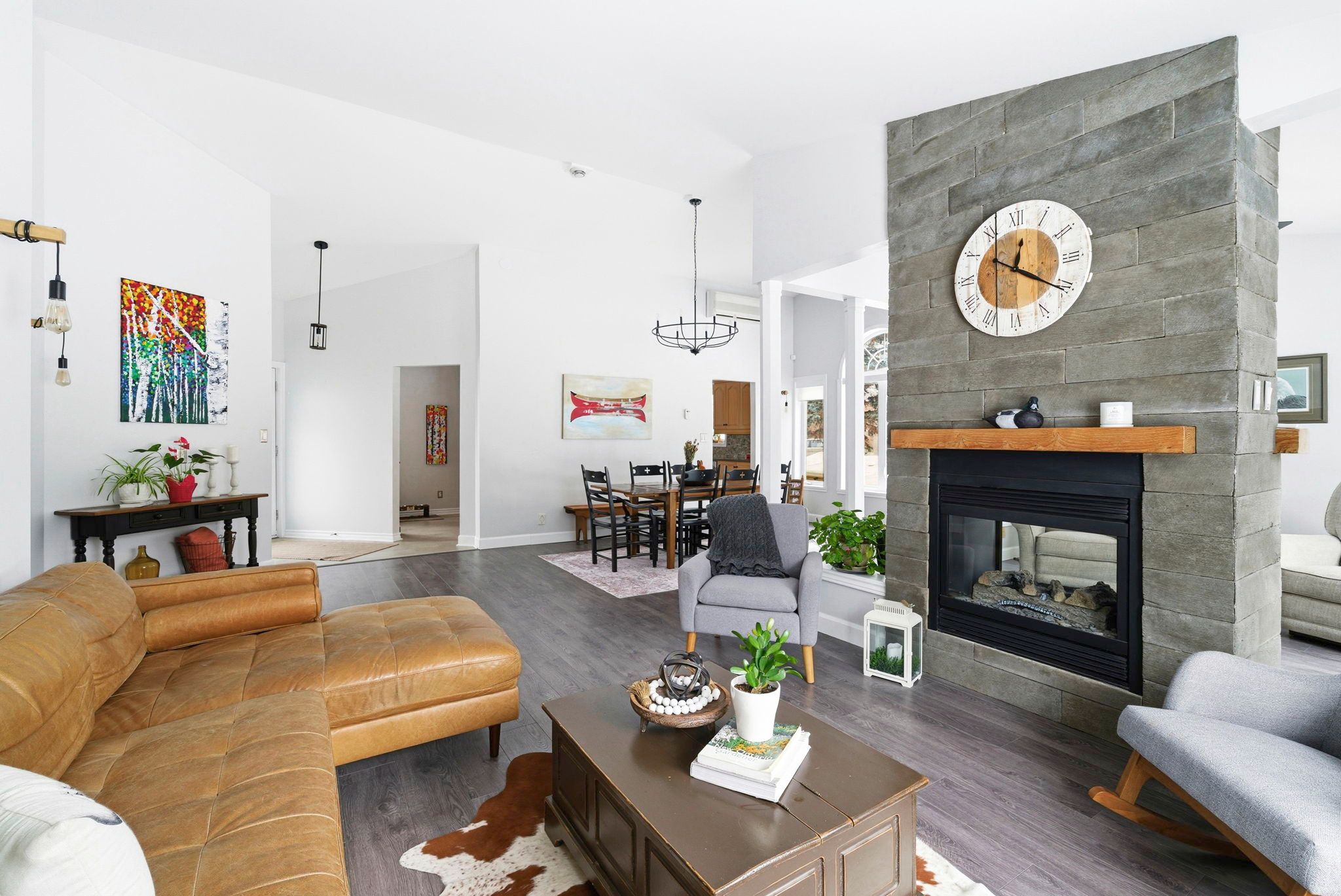 This uniquely designed and stylish 3-bedroom home with garage sits proudly on a rare double lot and delivers effortless one-level living. Built slab-on-grade, it's ideal for buyers seeking a low-maintenance, mobility-friendly lifestyle without compromising on design or comfort. Step inside to a spacious, light-filled open concept layout where the living and dining areas soar with vaulted ceilings. Radiant heated floors keep things cozy, while a striking two-sided gas fireplace with a modern stone surround adds warmth and flair. The custom eat-in kitchen (2015) is both functional and refined, featuring quartz countertops, centre island, backsplash, and stainless steel appliances. The primary bedroom offers a private retreat with a 3-piece ensuite highlighted by a charming clawfoot soaker tub. Two additional well-sized bedrooms provide flexibility for family, guests, or a home office. A 3-piece guest bathroom with shower completes the interior. Outside, the backyard is designed for entertaining and relaxing, complete with a large interlocking patio, stonewall garden, fire pit, and storage shed. Additional highlights include a dedicated laundry room, central air conditioning, generac generator, icf blue max construction, tankless hot water heater (2022), washer and dryer (2023), roof shingles (2015), and extensive updates to paint, trim, and flooring. Other notables: garage door 2025, light fixtures, washroom vanity, garden / storage shed refurbished gutter guards, landscaped gardens, and an interlocked driveway round out the package. Ideally located close to recreation and everyday amenities, this home blends modern comfort, smart upgrades, and standout design-an exceptional opportunity on a truly impressive lot. Parks of the st. Lawrence, golf, schools, church and other amenities nearby. 10 min to cornwall. Allow 24 hour irrevocable on offers.