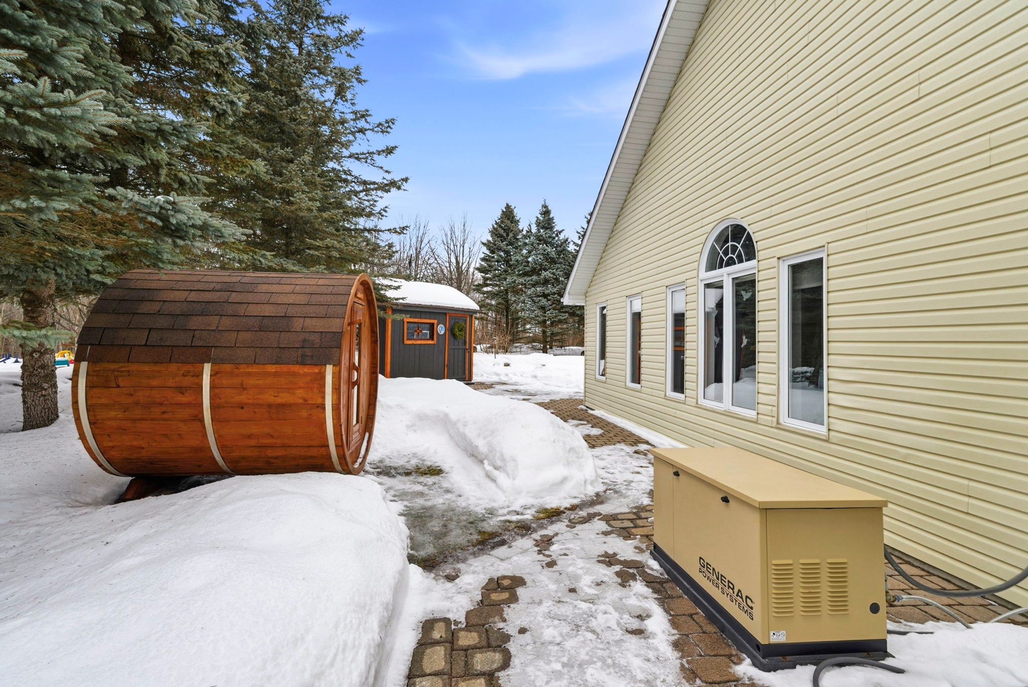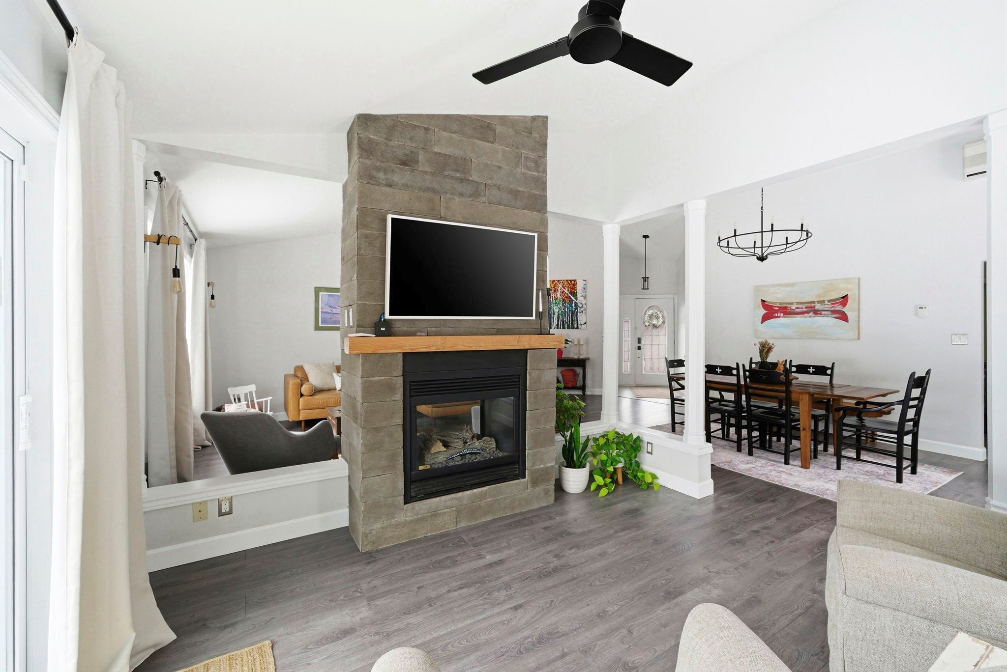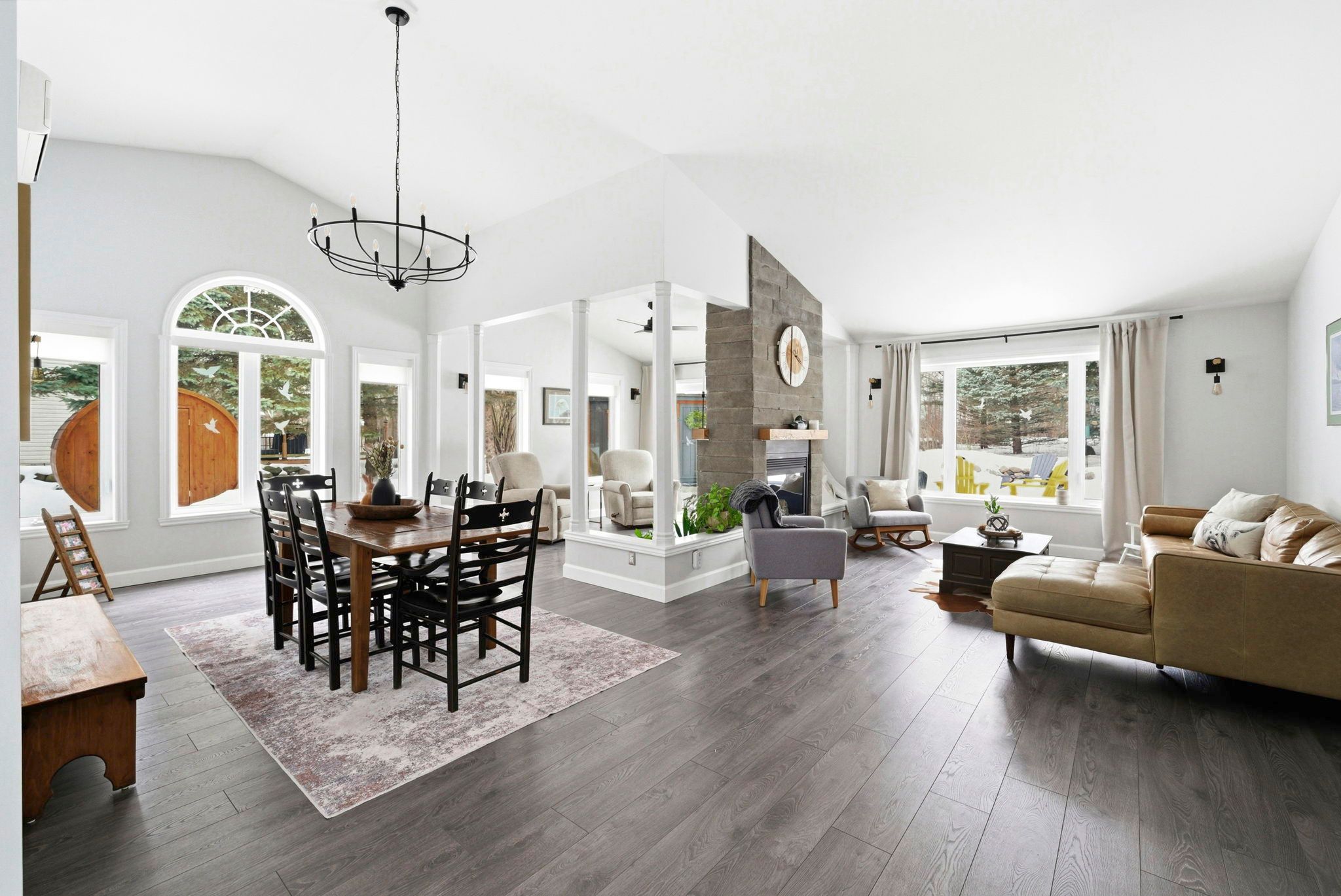 This uniquely designed and stylish 3-bedroom home with garage sits proudly on a rare double lot and delivers effortless one-level living. Built slab-on-grade, it's ideal for buyers seeking a low-maintenance, mobility-friendly lifestyle without compromising on design or comfort. Step inside to a spacious, light-filled open concept layout where the living and dining areas soar with vaulted ceilings. Radiant heated floors keep things cozy, while a striking two-sided gas fireplace with a modern stone surround adds warmth and flair. The custom eat-in kitchen (2015) is both functional and refined, featuring quartz countertops, centre island, backsplash, and stainless steel appliances. The primary bedroom offers a private retreat with a 3-piece ensuite highlighted by a charming clawfoot soaker tub. Two additional well-sized bedrooms provide flexibility for family, guests, or a home office. A 3-piece guest bathroom with shower completes the interior. Outside, the backyard is designed for entertaining and relaxing, complete with a large interlocking patio, stonewall garden, fire pit, and storage shed. Additional highlights include a dedicated laundry room, central air conditioning, generac generator, icf blue max construction, tankless hot water heater (2022), washer and dryer (2023), roof shingles (2015), and extensive updates to paint, trim, and flooring. Other notables: garage door 2025, light fixtures, washroom vanity, garden / storage shed refurbished gutter guards, landscaped gardens, and an interlocked driveway round out the package. Ideally located close to recreation and everyday amenities, this home blends modern comfort, smart upgrades, and standout design-an exceptional opportunity on a truly impressive lot. Parks of the st. Lawrence, golf, schools, church and other amenities nearby. 10 min to cornwall. Allow 24 hour irrevocable on offers.