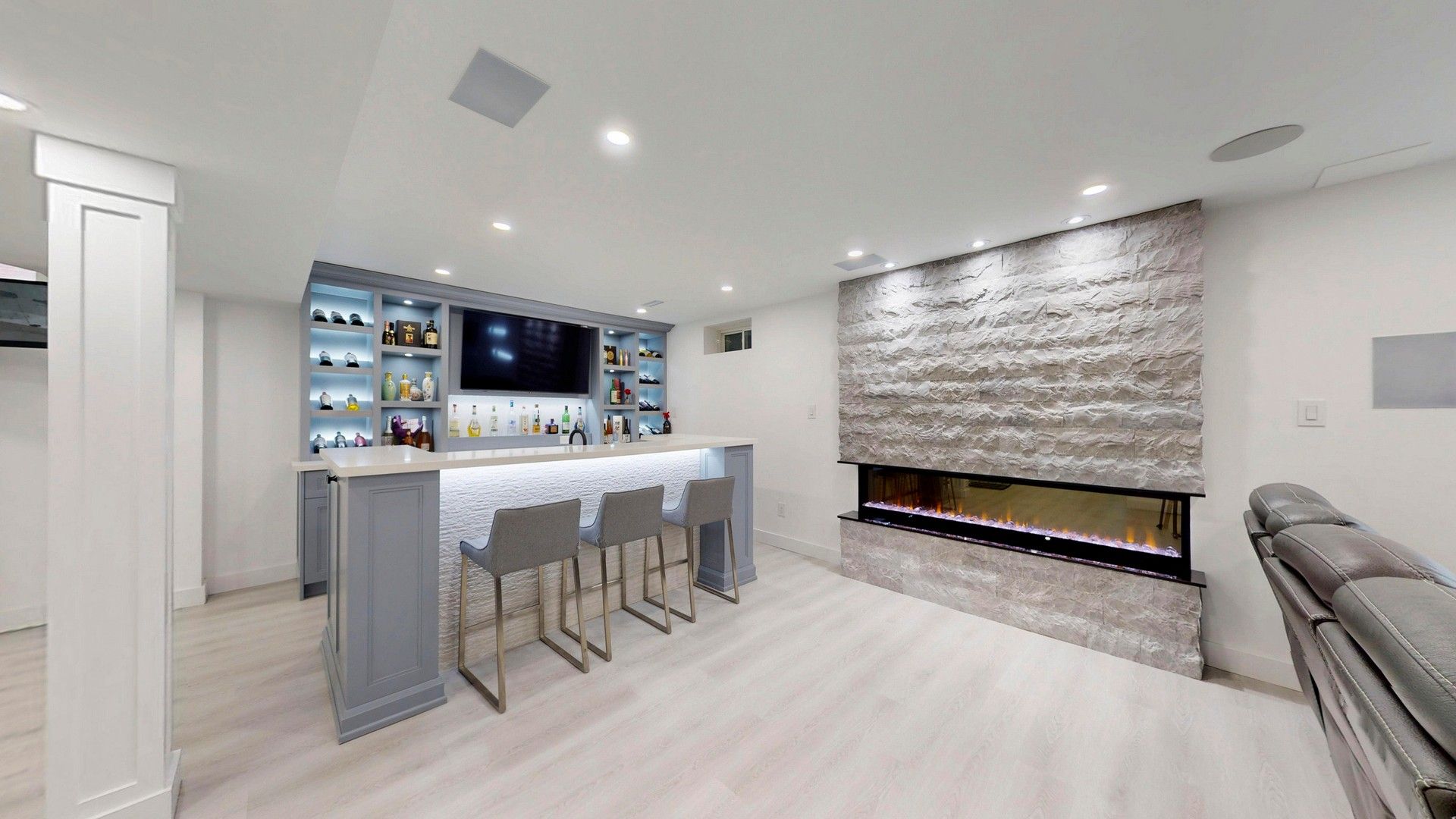 • Stylish finished basement with wet bar and dedicated laundry area.