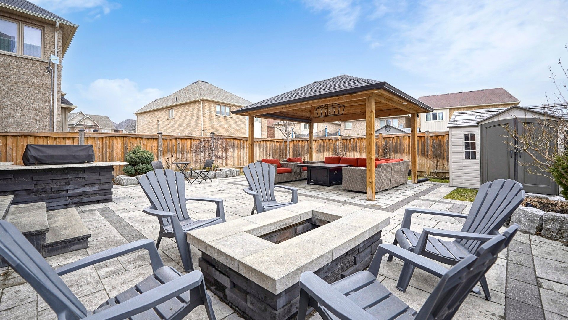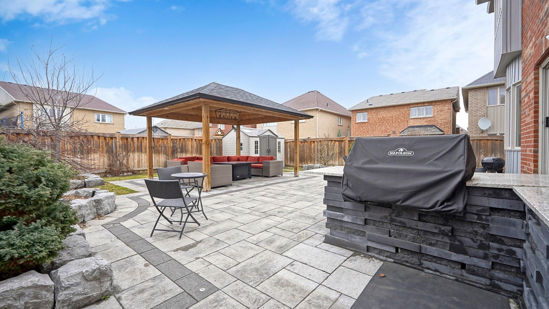 • Professionally landscaped backyard, perfect for gatherings or relaxation.