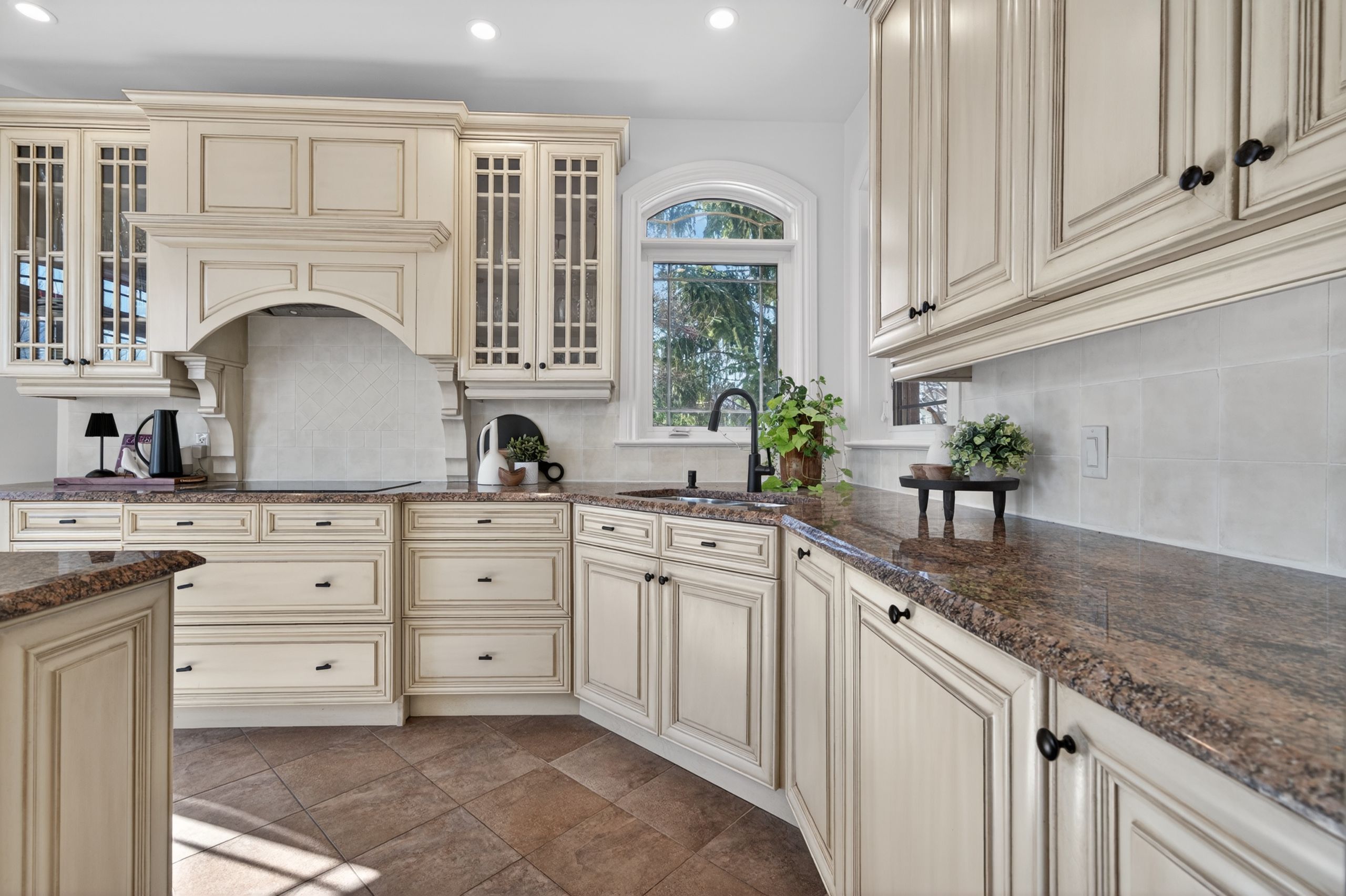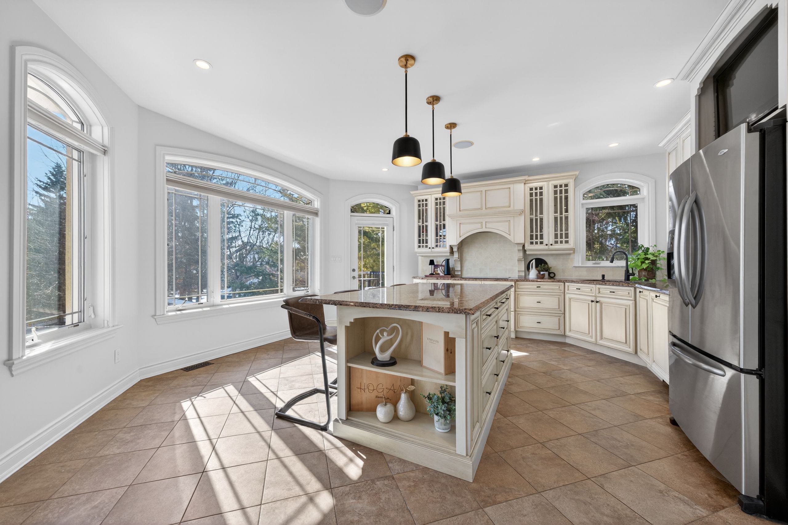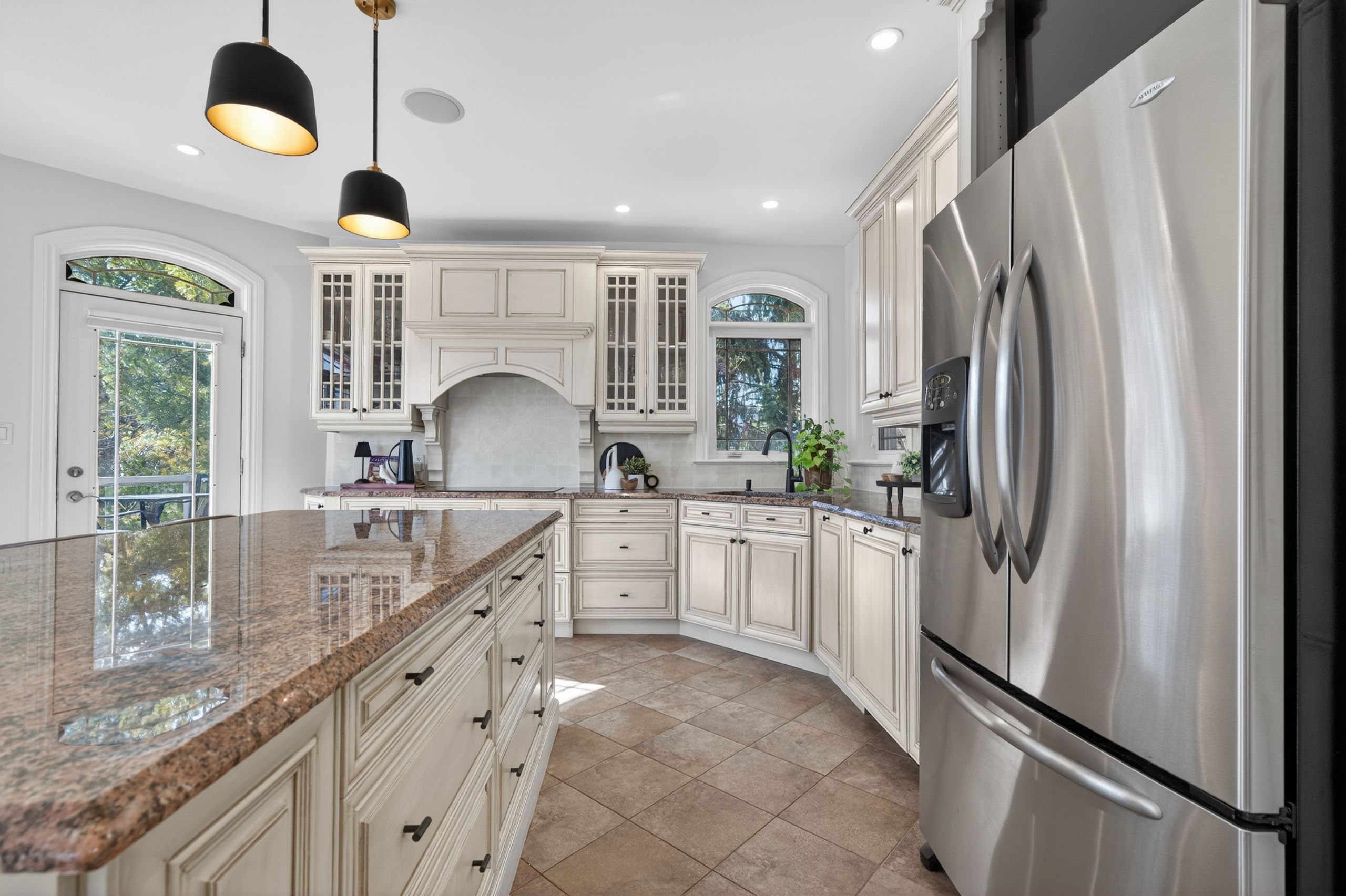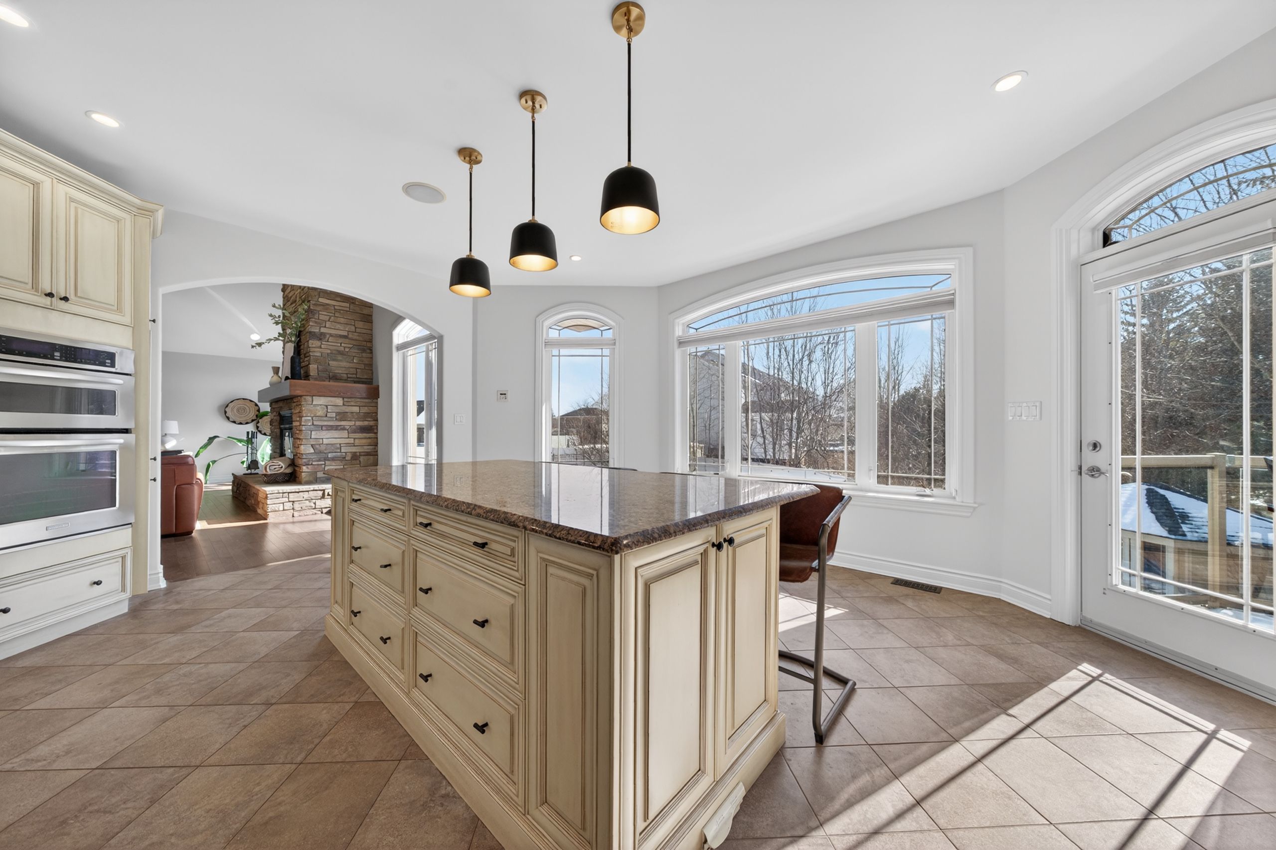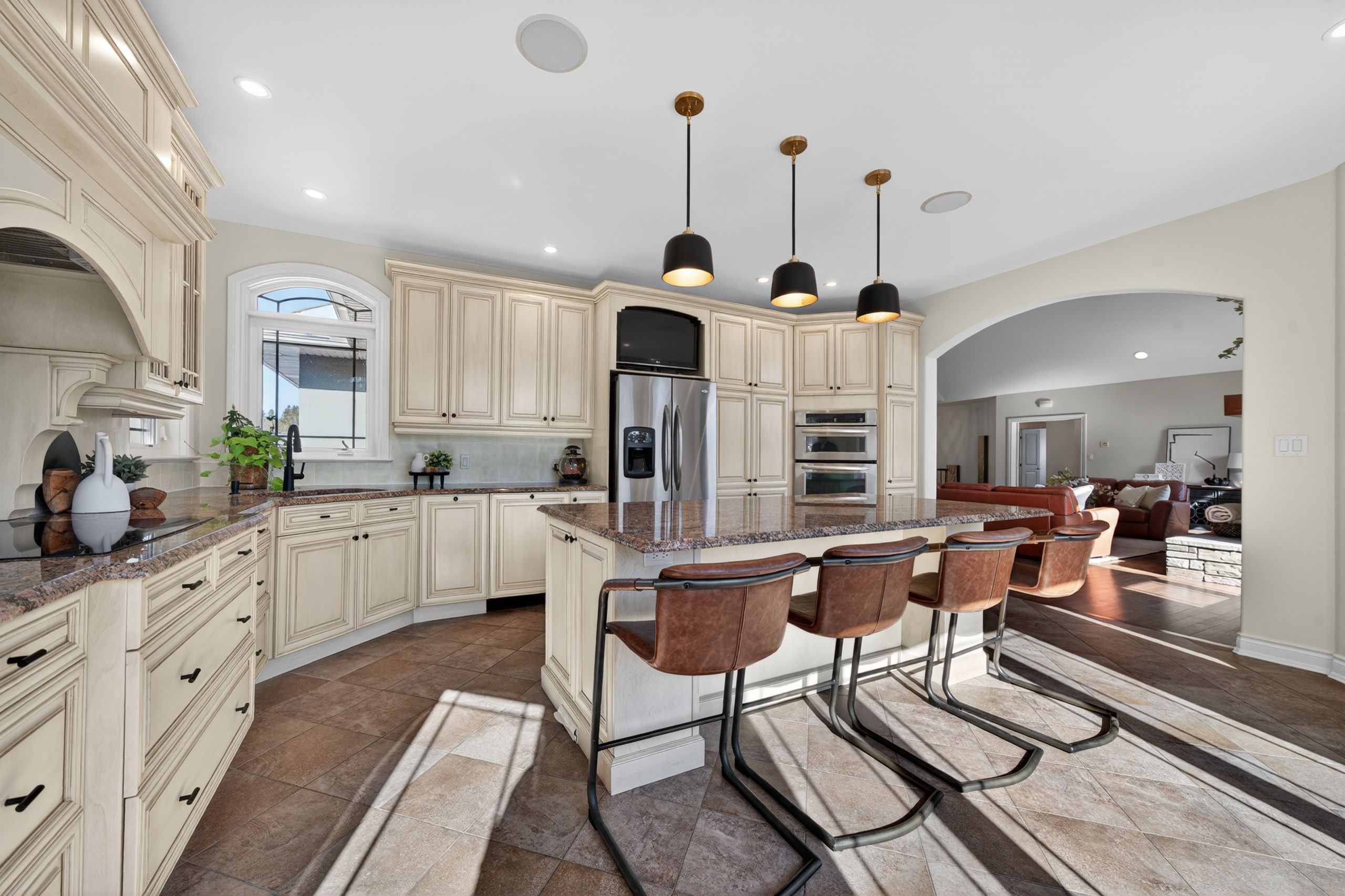 • Gourmet kitchen with granite counters and deck overlooking the pool.