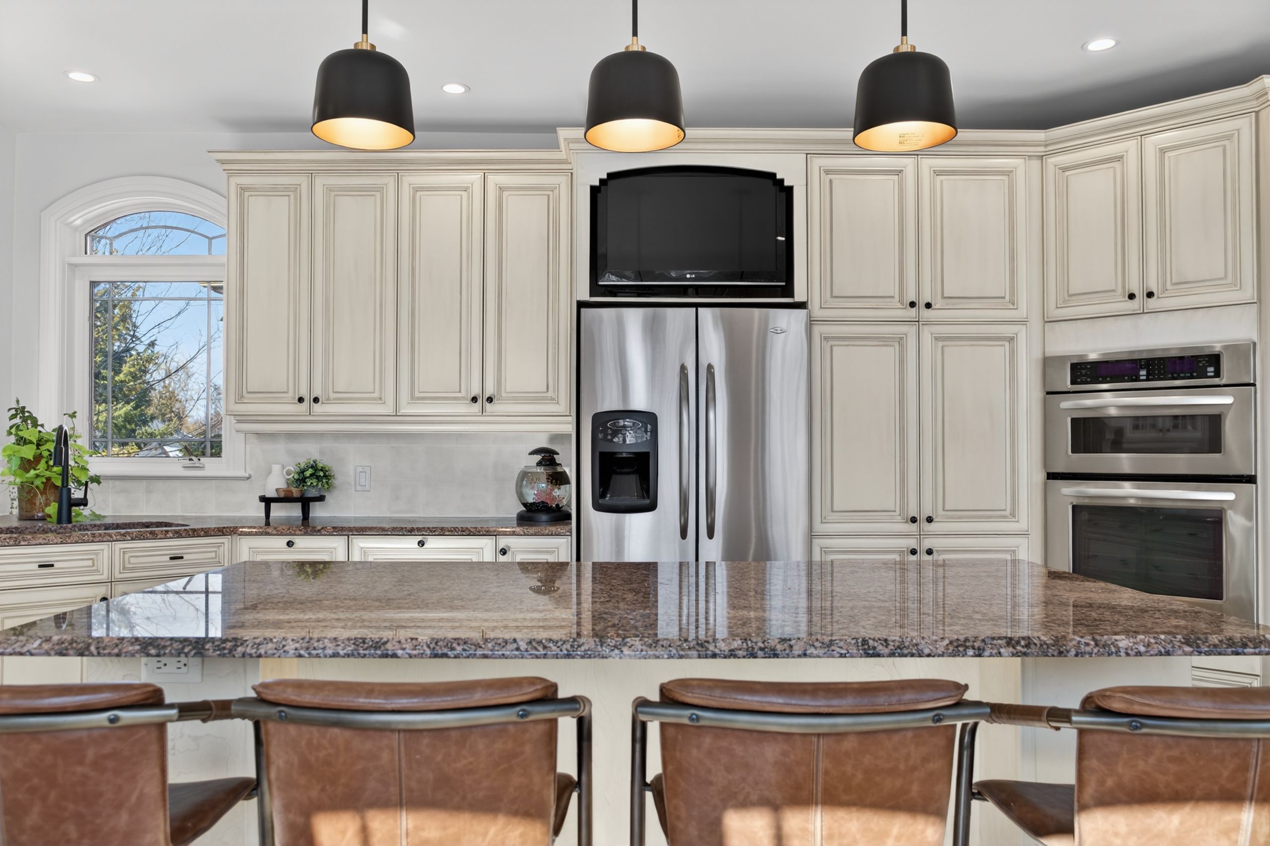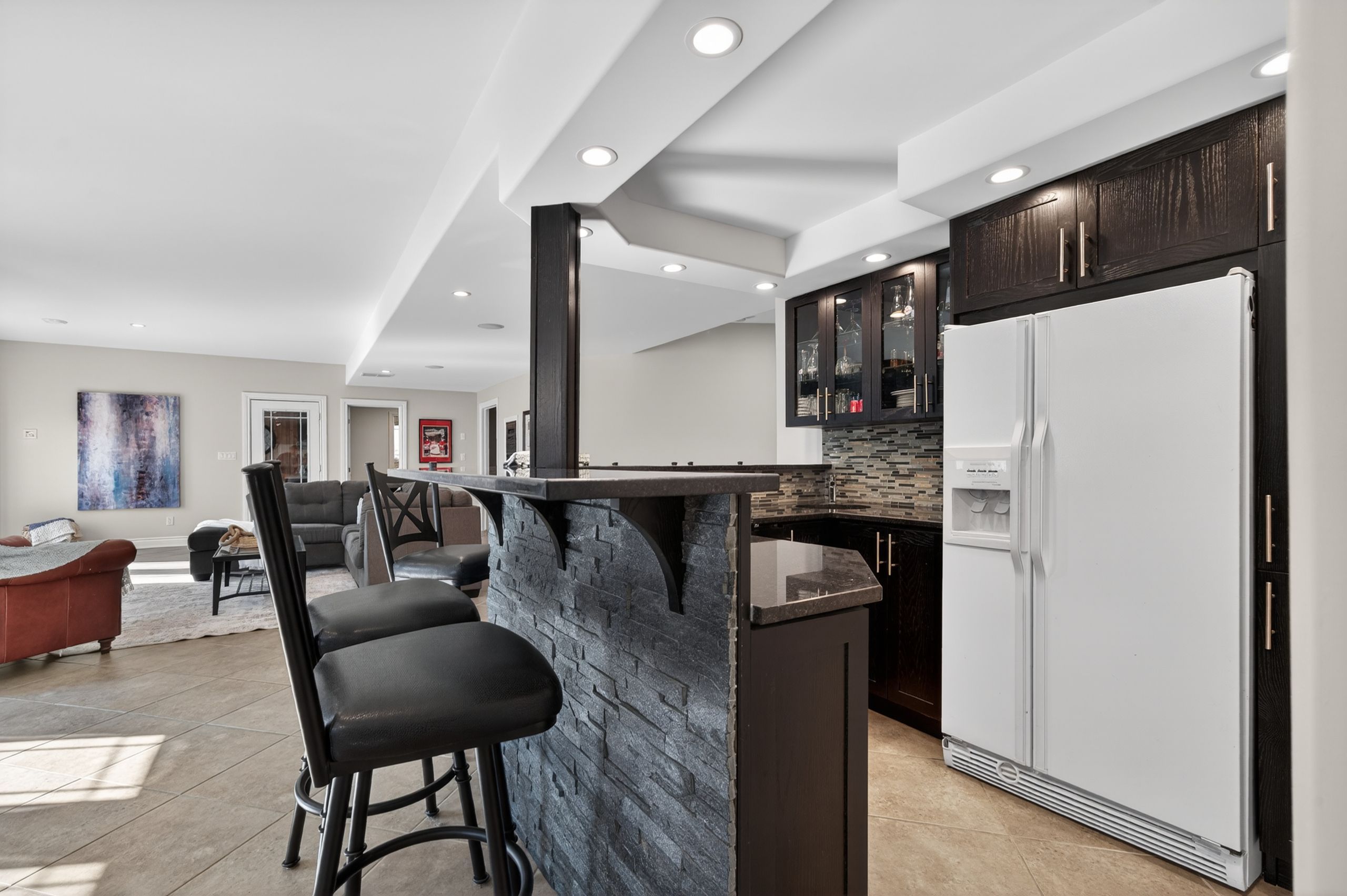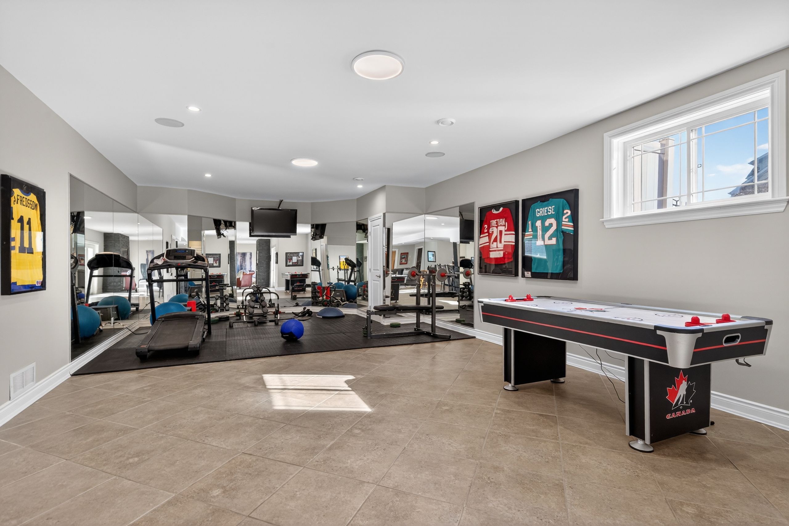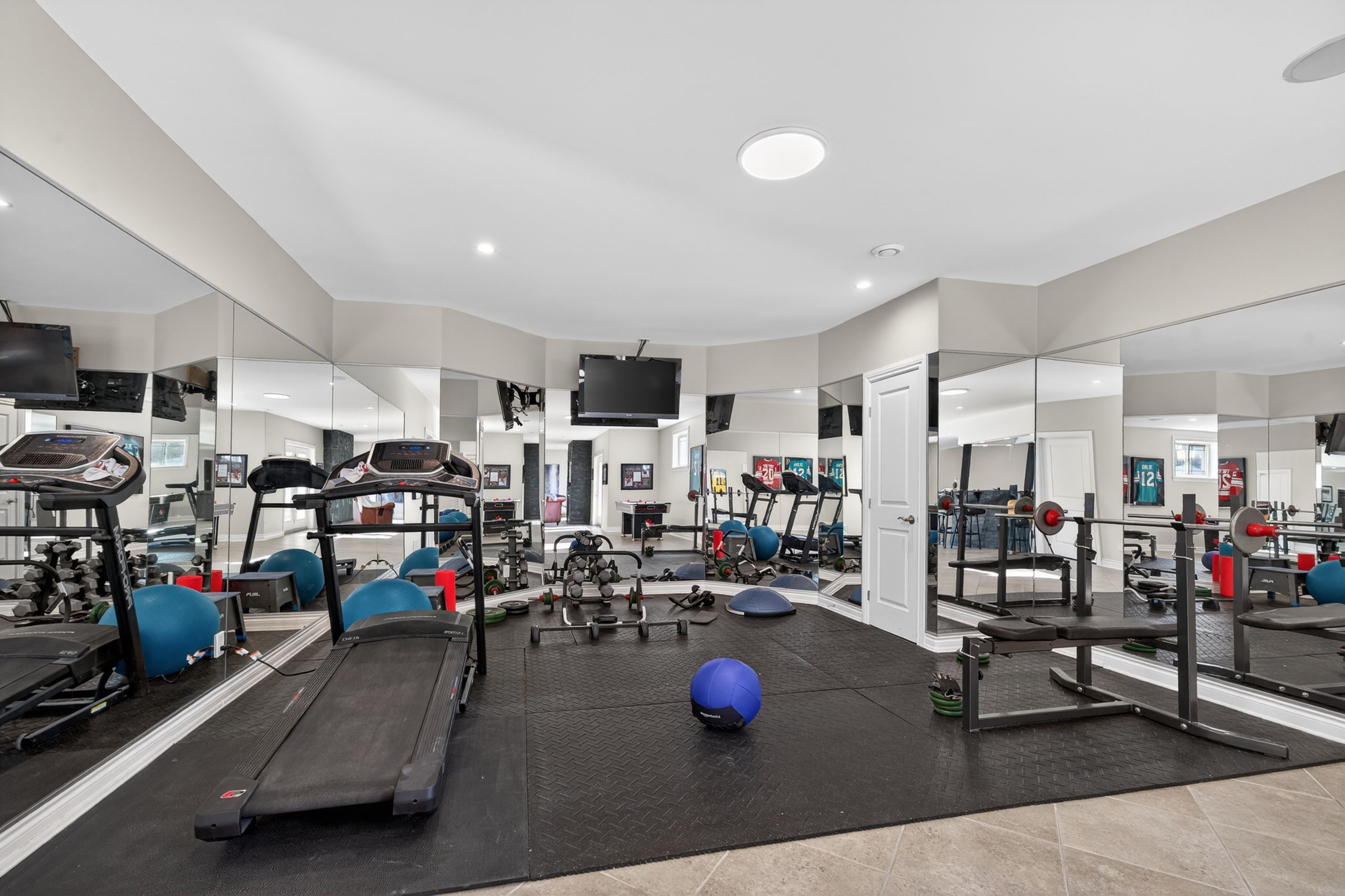 • Finished lower level with wet bar, gym, and flexible living spaces.