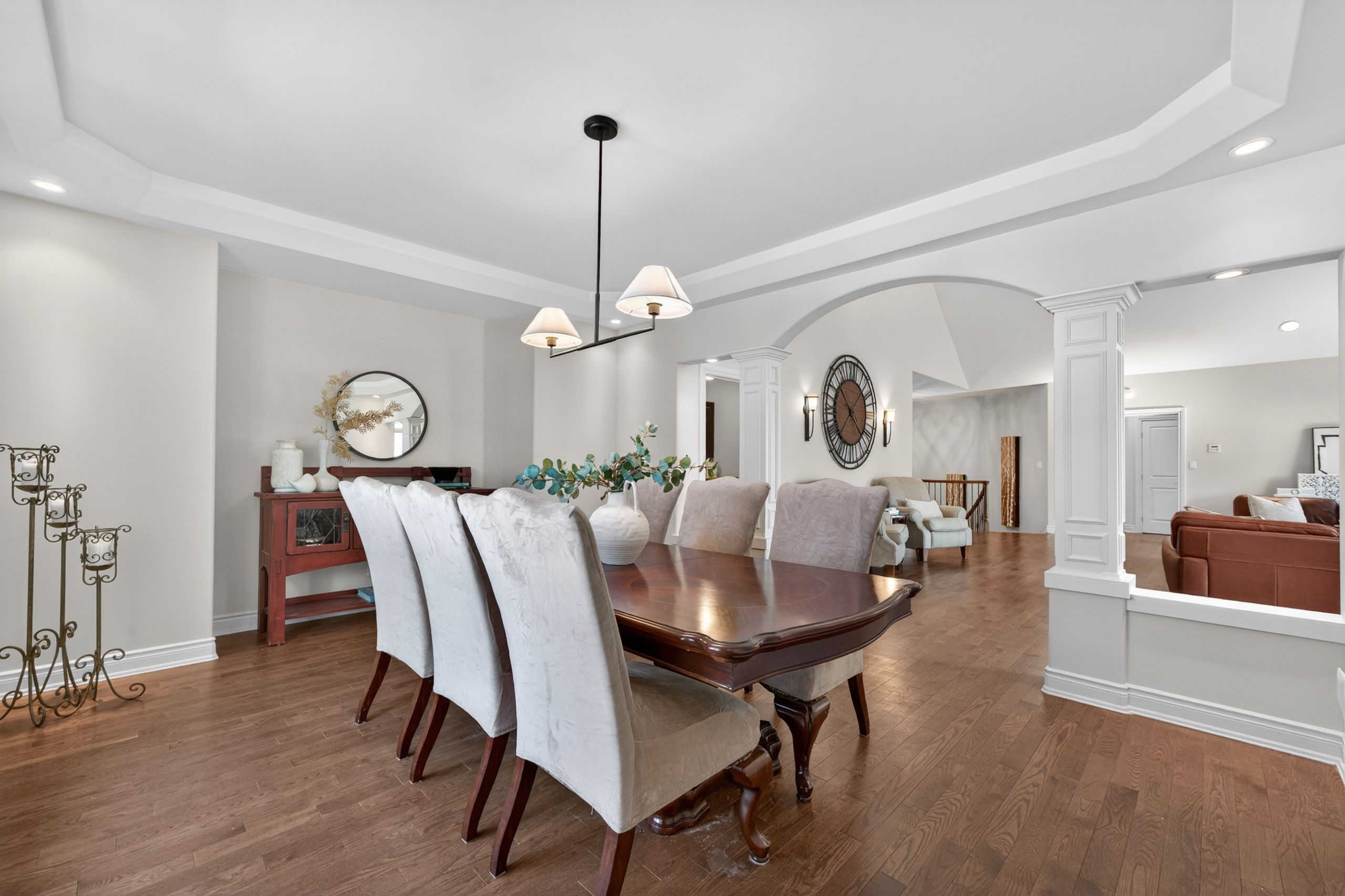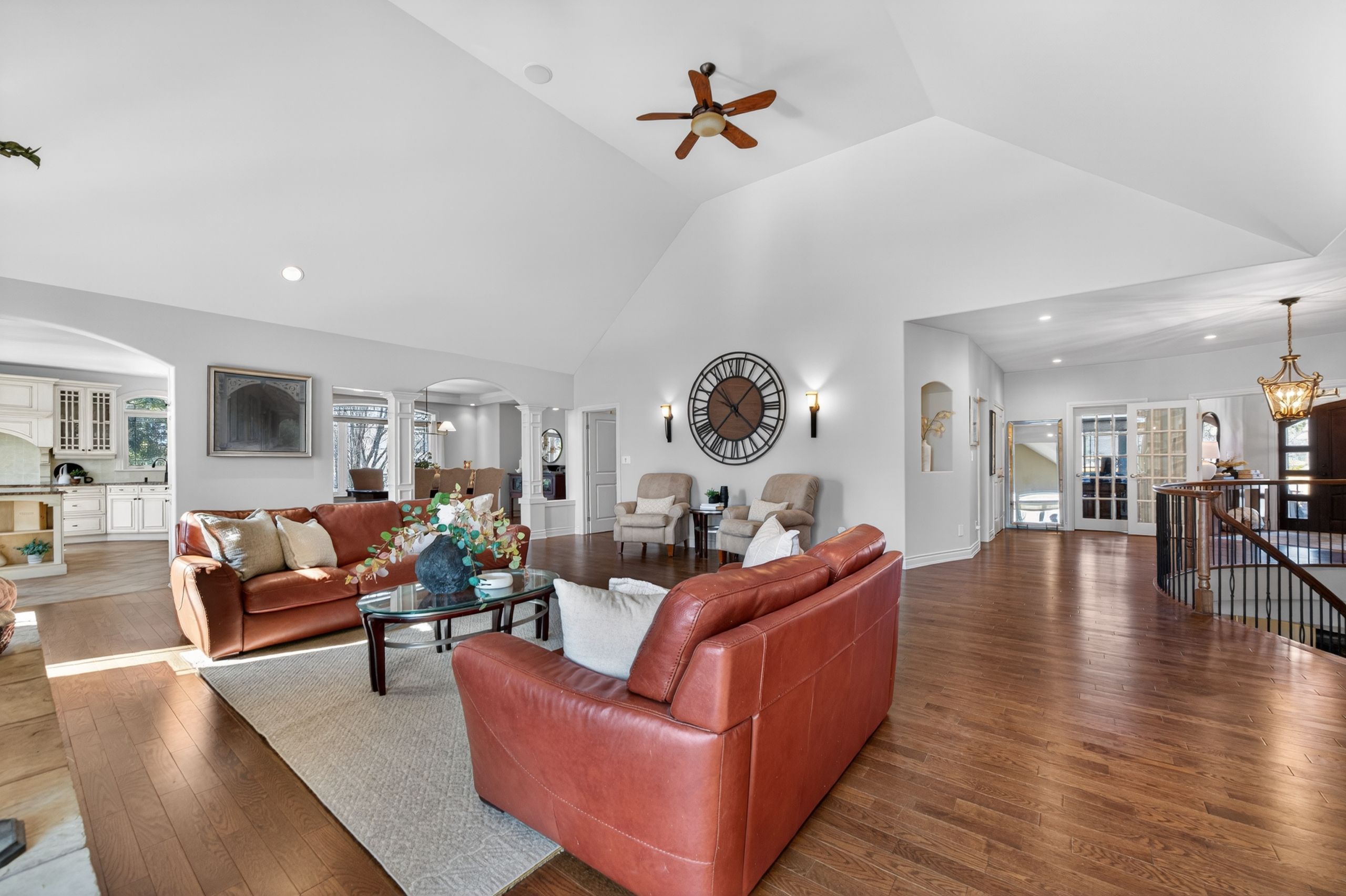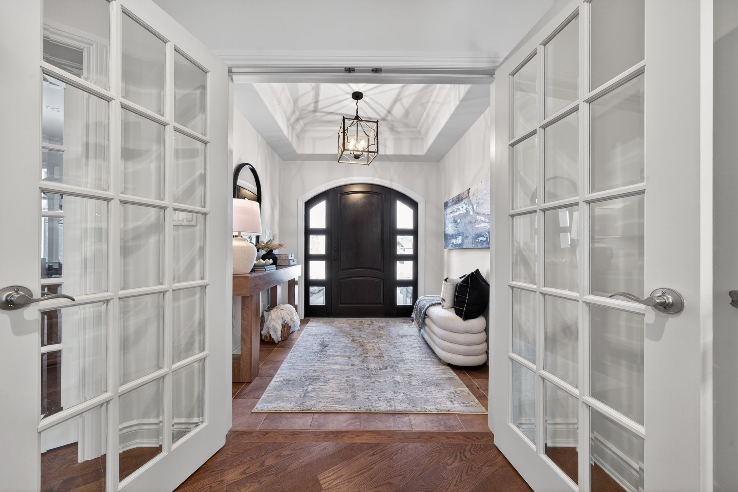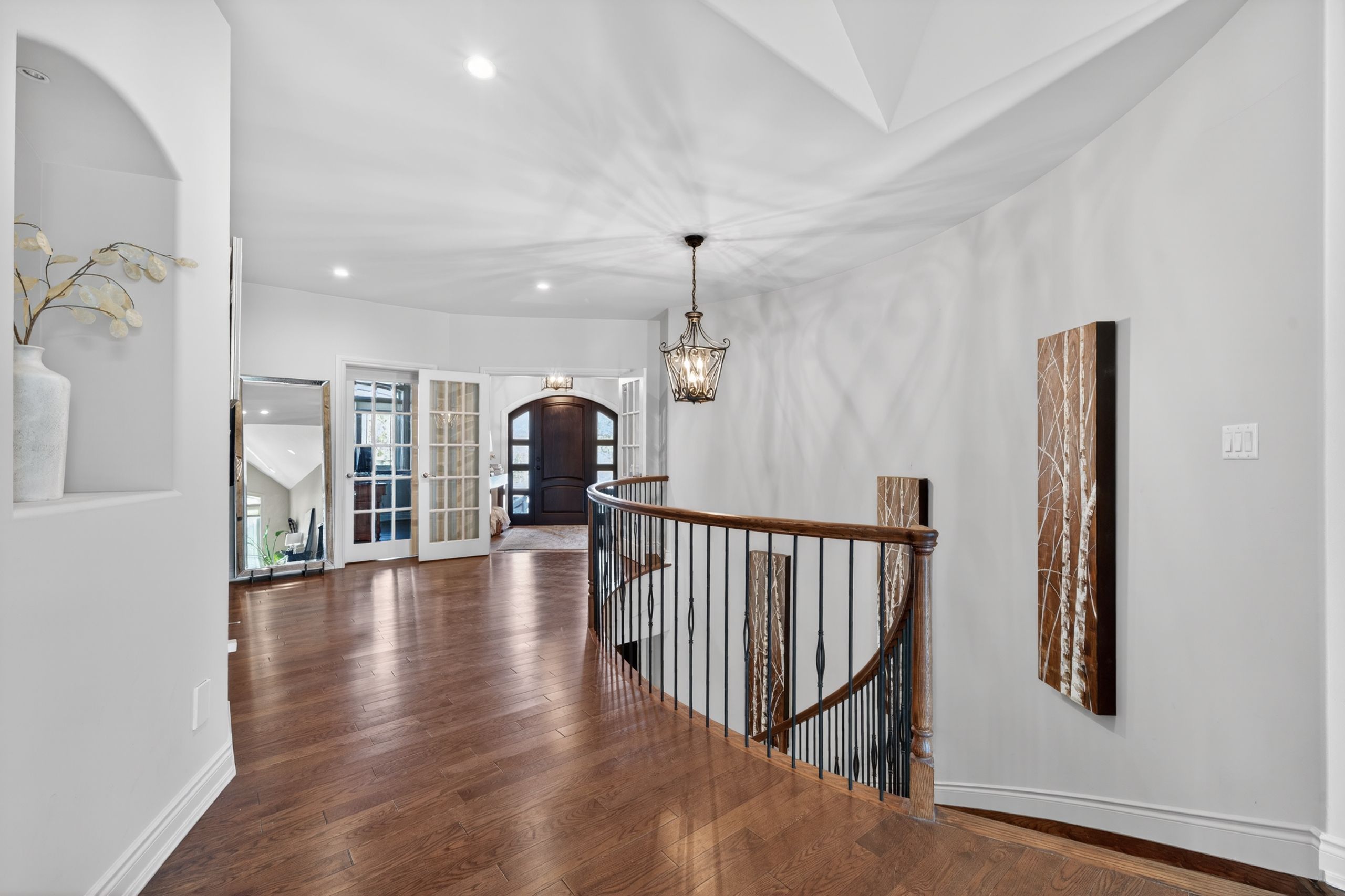• Finished lower level with wet bar, gym, and flexible living spaces.