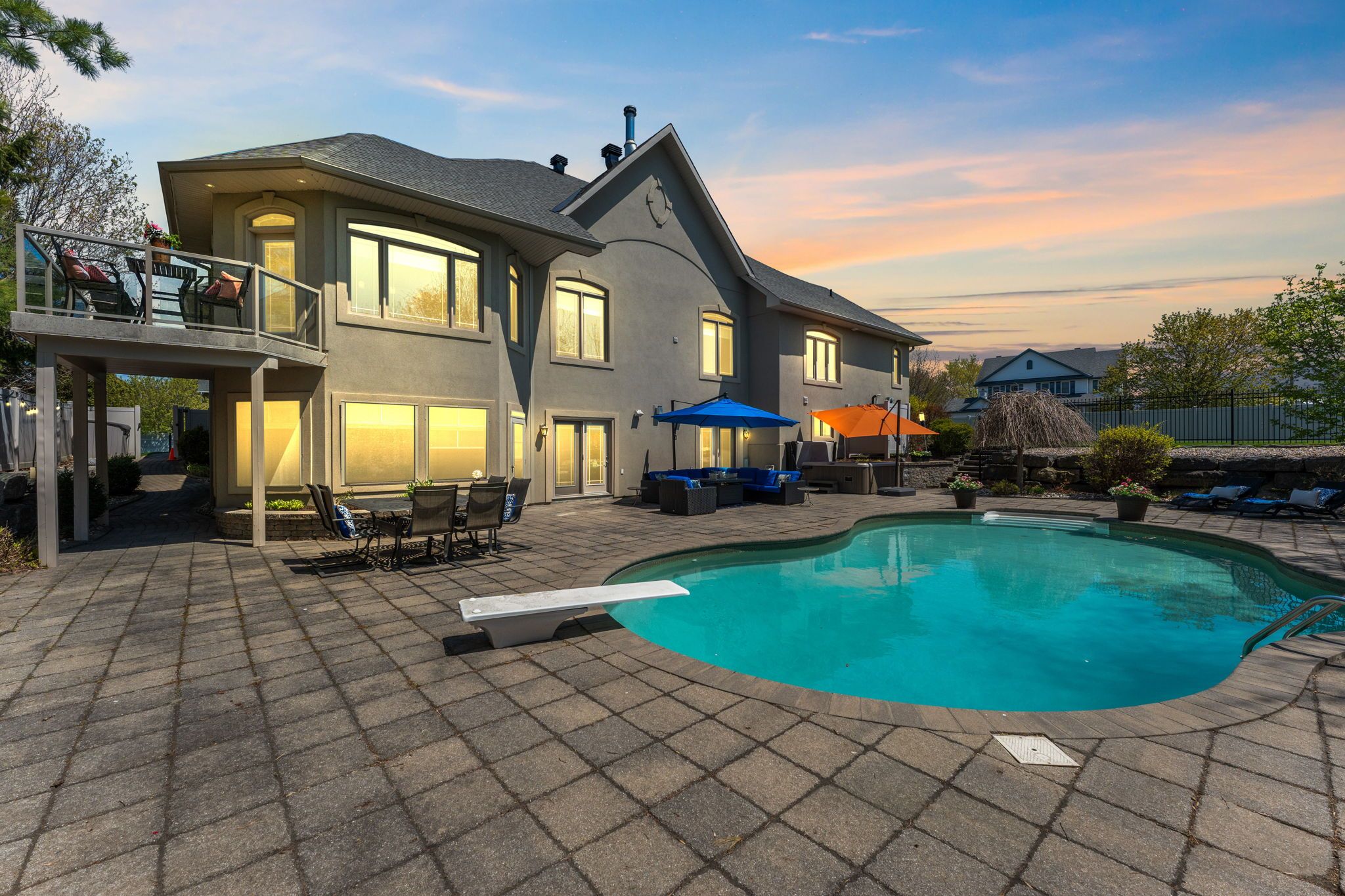 Welcome to 2 beechgrove gardens, an executive, majestic residence on a rare double lot in the heart of stittsville. Beautifully landscaped front gardens & a charming brick walkway to the backyard create a warm, inviting setting for quiet mornings, evening strolls & outdoor living. Grand entrance opens to a sun-filled great room with soaring 16-ft ceilings & a striking brick fireplace anchoring the space. Offering nearly 6,000 sq ft of finished living space, this home blends comfort, function & timeless elegance. The kitchen features granite counters, s/s appliances, built-in oven & walkout to a deck overlooking the pool & backyard-ideal for summer dining & entertaining. Over $85,000 in recent updates include fully renovated primary bathroom, upgraded led lighting & tasteful kitchen enhancements including backsplash, hardware, faucet & lighting. Main level offers a beautifully appointed primary suite with a bespoke renovated ensuite and grand walk-in closet, two well-appointed bedrooms with a jack & jill bath, an elegant formal dining room, a light-filled front-facing home office, and a thoughtfully designed laundry/mudroom. Finished walk-out lower level with 9-ft ceilings is ideal for entertaining & everyday living, featuring a wet bar, golf simulator, gym, flexible living spaces, 3-piece bath, 3-season room & workshop/mudroom with direct access to the backyard & pool. Built with a solid icf foundation for energy efficiency. Fenced backyard is a private retreat with a saltwater inground pool, hot tub & irrigated landscaping-perfect for relaxing, hosting & creating lasting memories. Oversized triple garage with access to both levels including ll shop with high ceilings for storage or lifts. Close to top-rated schools, parks, trails, shopping & all stittsville amenities. Masterfully designed home where luxury meets versatility, offering expansive spaces tailored for entertaining, wellness, work, and everyday living. Your luxury lifestyle starts here.