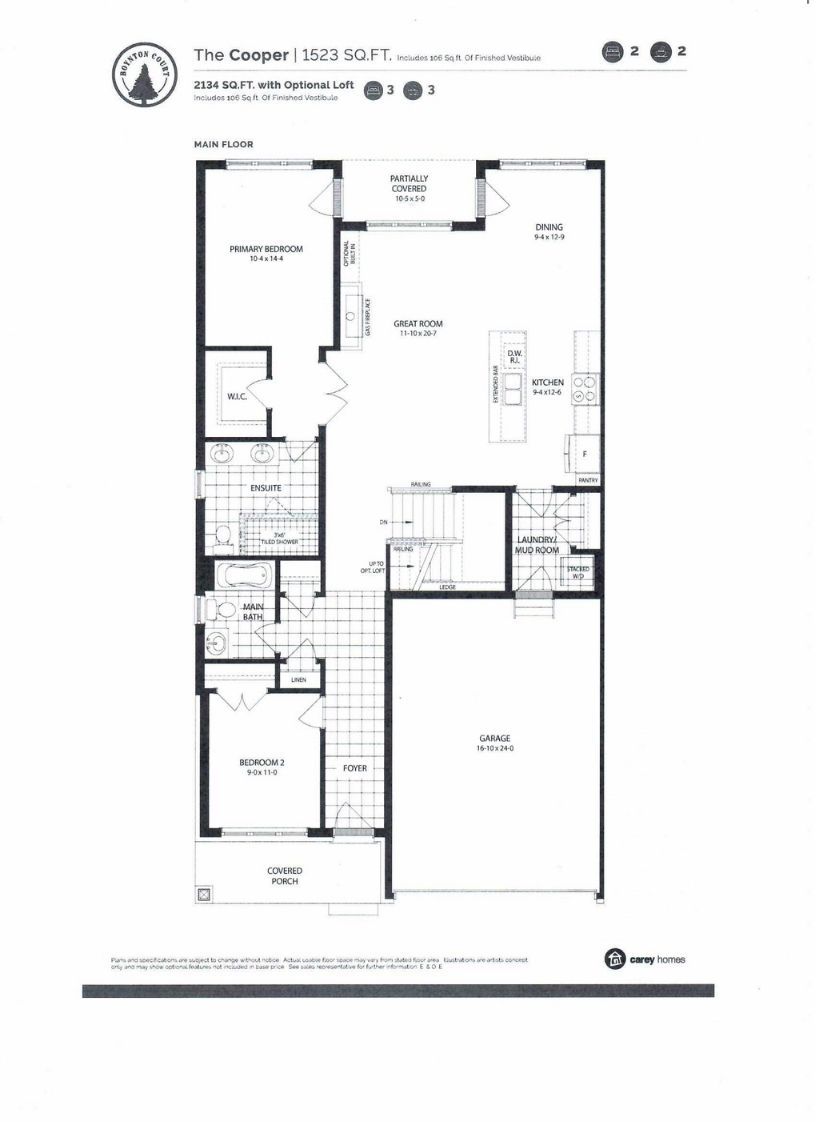 Pricing reduced over $100,000 for a limited time only. Central location in the town of thornbury, across from the community centre and walking distance to the library, school and downtown. 3/4 bedroom semi-detached home with 2,134 sq ft finished space plus full unfinished basement. Main floor primary bedroom w/ en-suite bath & walk in closet, large guest room or office space, laundry room with appliances and open plan living / dining areas with 9' ceilings. Triple glazed windows and 8 foot high sliding doors. Gas fireplace in living room. Upper guest room plus loft or office space. Stainless kitchen appliances included. Interior is move-in ready with fixtures, shelving, closet bars, mirrors, lighting and much more. Long list of other included features. On demand hot water system. Large single car garage 24'x17' with insulated 8 ft tall garage door. Space inside for a large truck, bikes and equipment. Tarion new home warranty. This is a freehold property so no monthly fees. Property complete with a paved driveway and sod. Carey homes is a quality builder with a proud reputation. Thoughtfully designed and carefully built. Your option to customize the home as you wish from the floor plans. Right now, an added bonus, $15,000 direct from the builder for home automation options or as an advance towards finishing of the lower level. Only 10 homes available on boynton court.