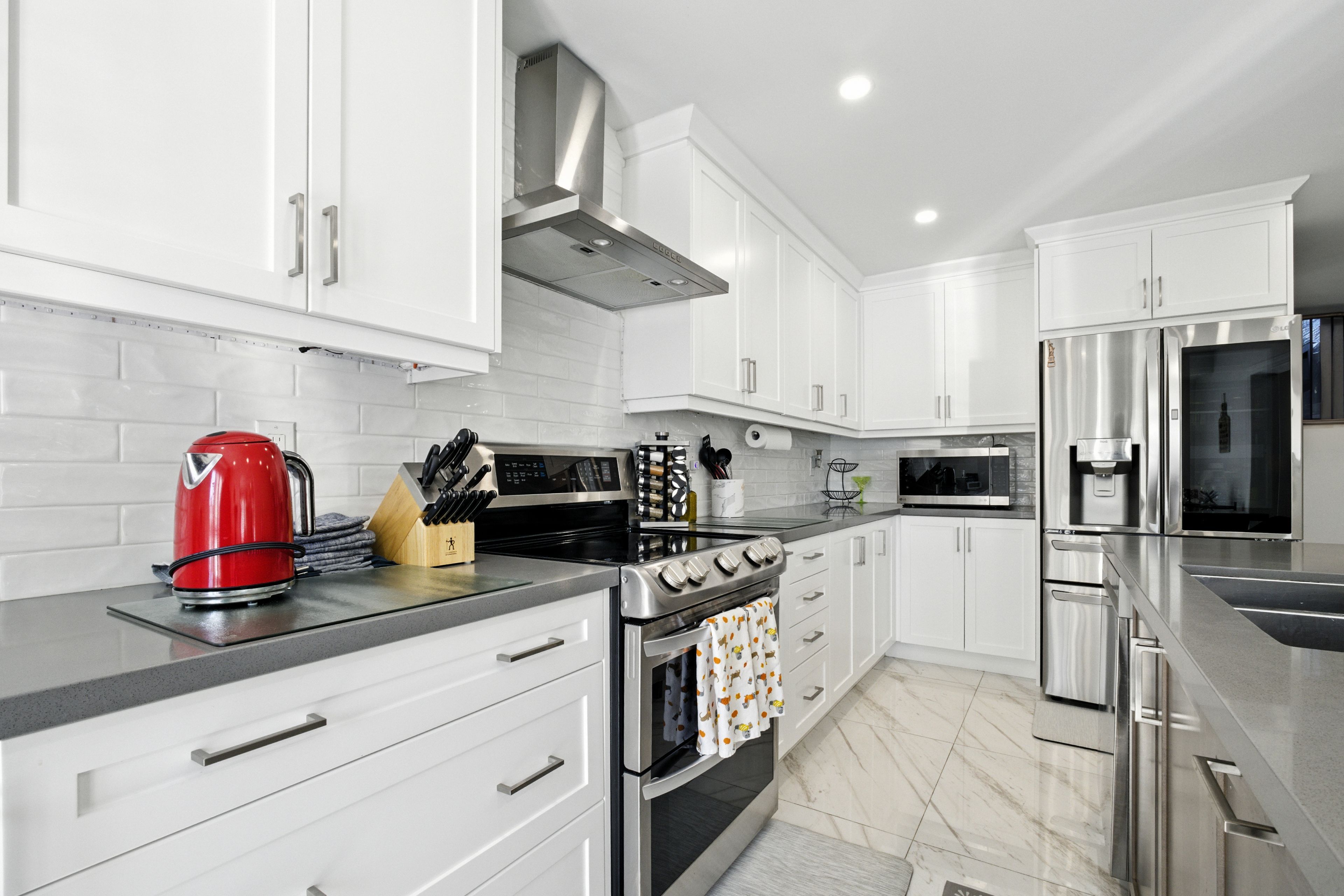 • Upgraded kitchen with quartz countertops and spacious center island.