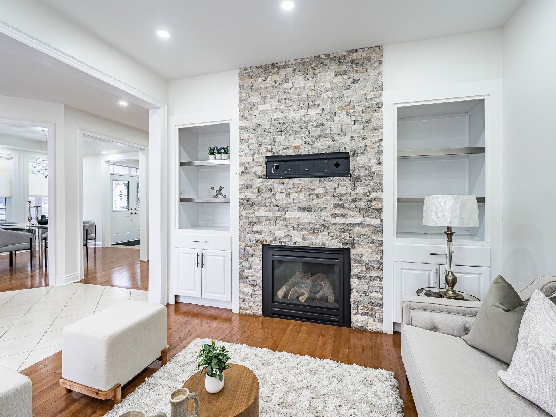 • Cozy family room with a see-through gas fireplace for relaxation.