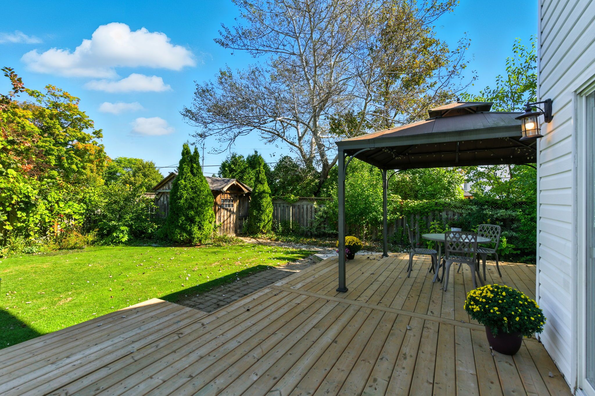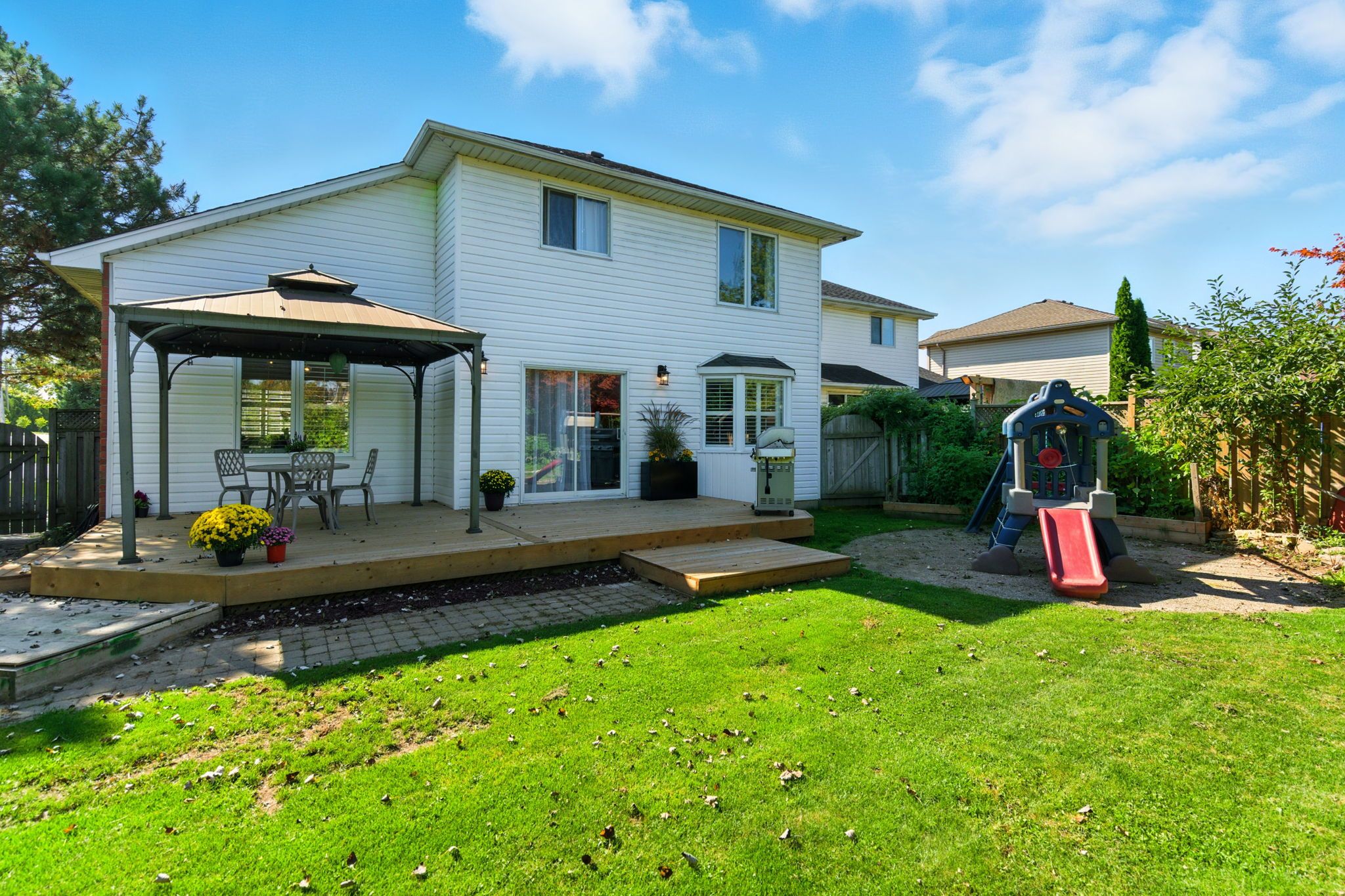 Welcome to 2 caledonia avenue - where style, comfort, and location meet. This stunning 3+1 bedroom, 3 full bathroom home sits on a beautifully landscaped corner lot in a sought-after neighbourhood, just minutes from hamilton and within walking distance to parks, schools, and daily amenities. Step inside to soaring vaulted ceilings and oversized windows that flood the open-concept living and dining area with natural light. Rich hardwood floors, upgraded lighting, and a custom staircase with a striking bannister elevate the space with warmth and elegance. At the heart of the home is a showstopping winger kitchen, featuring quartz countertops, stylish backsplash, island with seating, and seamless sightlines into the cozy family room with fireplace - perfect for everyday living and entertaining. Upstairs, find three generous bedrooms including a serene primary suite with ensuite privileges to a spa-like bath complete with glass shower and contemporary finishes. The fully finished basement offers incredible versatility, with a spacious bedroom with ensuite access, full bath, and an expansive recreation room ideal for a home theatre, gym, or games room. Outside, enjoy the upgraded deck and private yard, perfect for relaxing or hosting summer bbqs. Additional highlights include elegant california shutters, fresh paint throughout, professionally cleaned carpets, and a range of tasteful upgrades that enhance every corner of the home. Move-in ready and impeccably maintained the perfect place to call home.